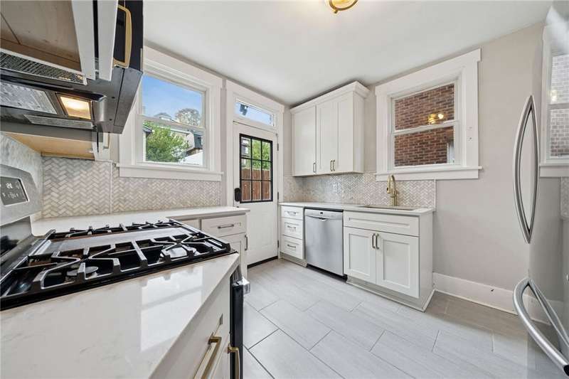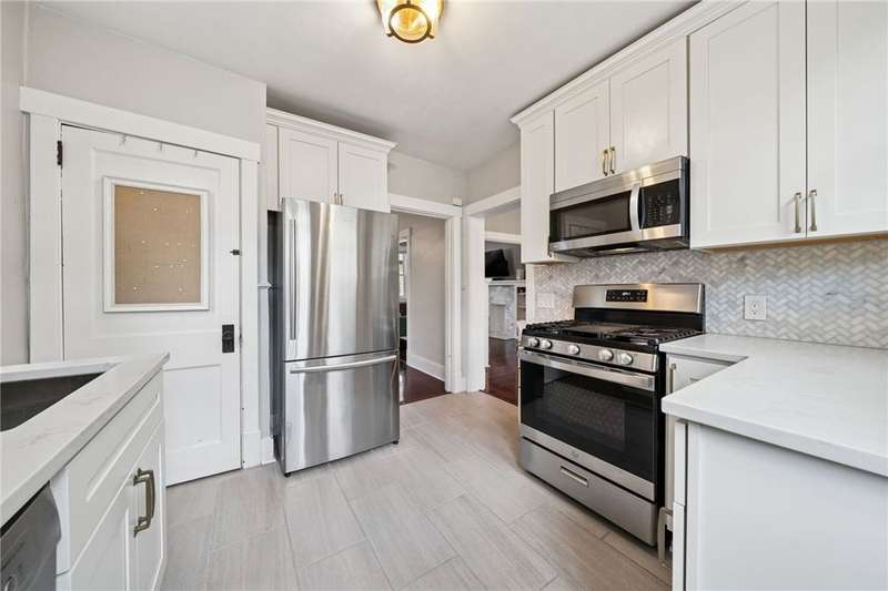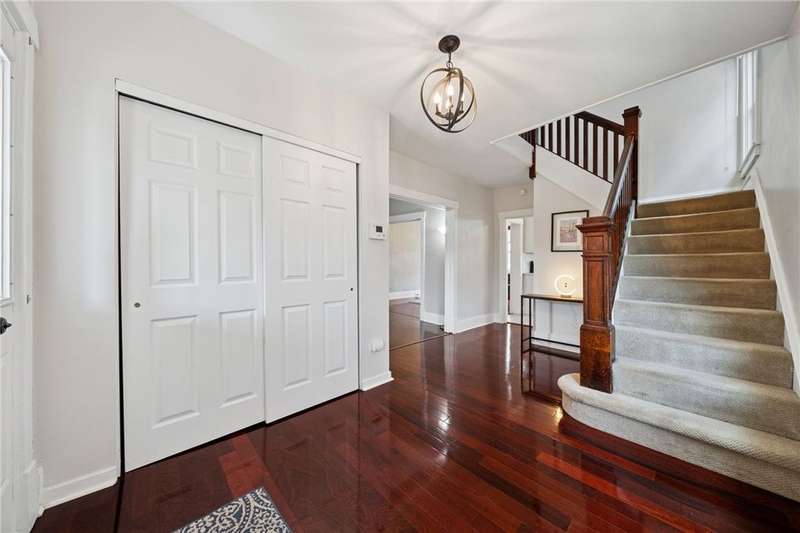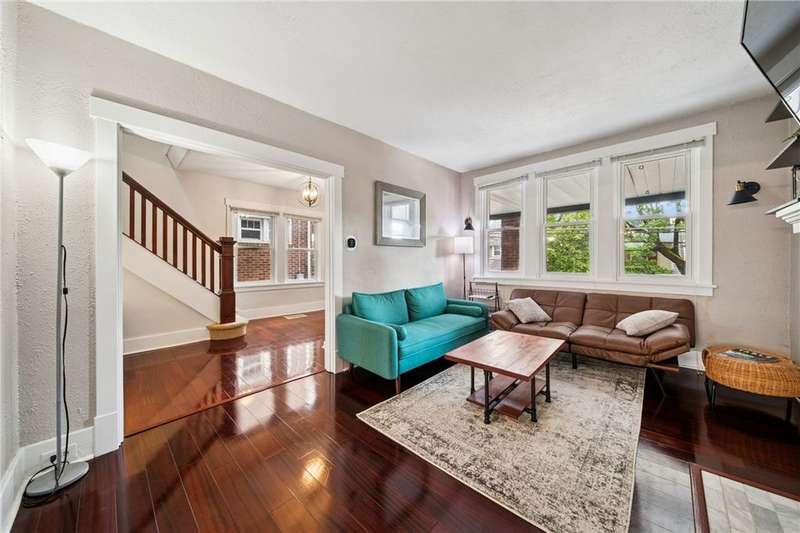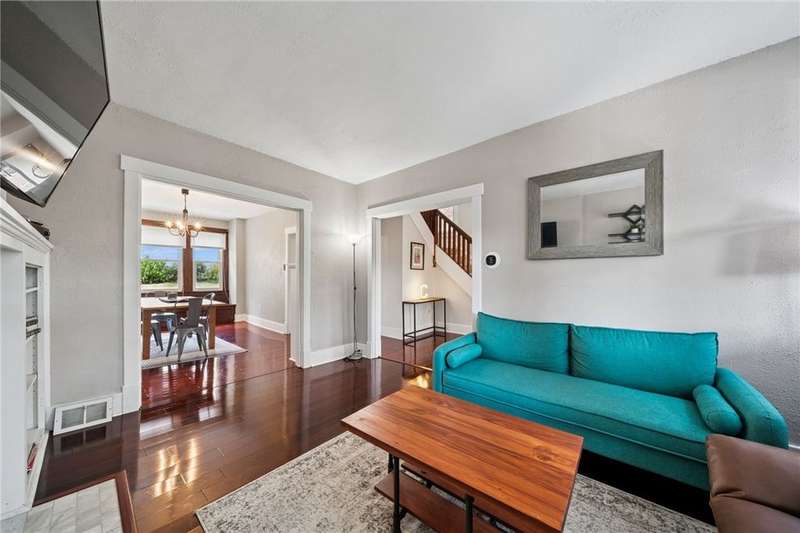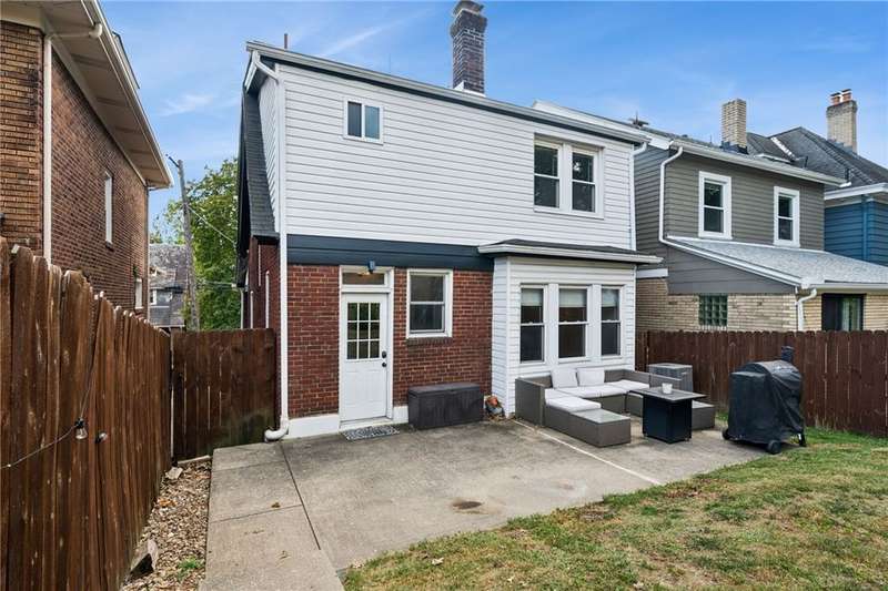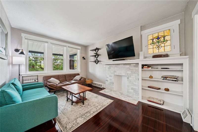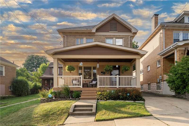 This beautiful brick 3-bedroom home in the heart of Dormont is move-in ready and welcomes you with a large, wood-covered front porch. Gleaming hardwood flooring throughout, high quality craftsman-style trim, new kitchen with custom cabinets, stainless appliances and backsplash. Gorgeous family room brimming with character features custom-built fireplace, built-in shelving and beautiful stained glass window. This home is flooded with natural light through its many handsome windows, including extra-long custom built window seat with storage in dining room, and new light fixtures throughout. Fenced-in back patio, 2-car garage. All this and more in prime Dormont neighborhood close to downtown Pittsburgh, shopping, major travel routes and walking distance to shopping and dining destinations.