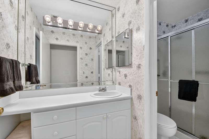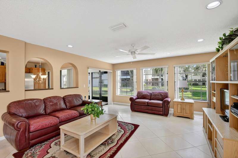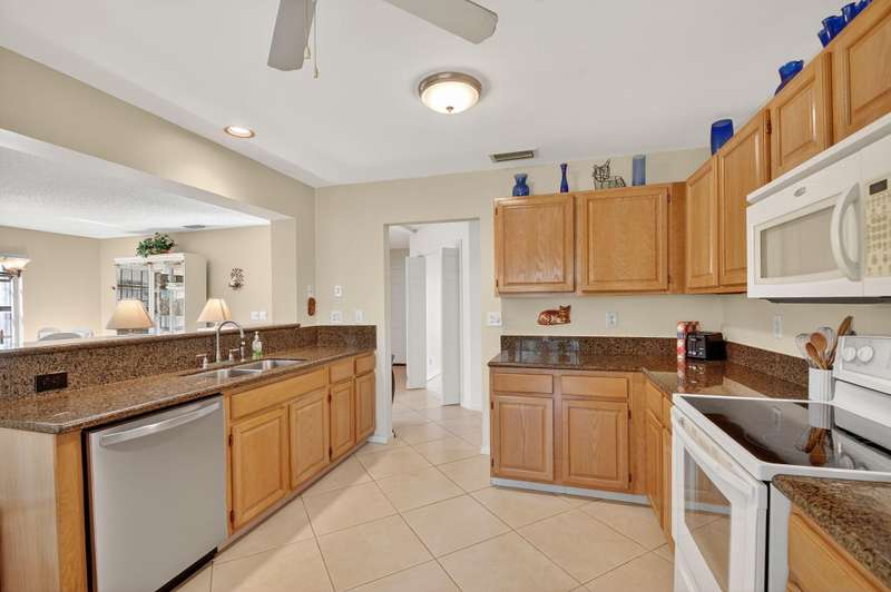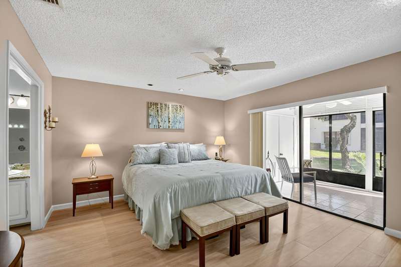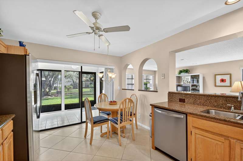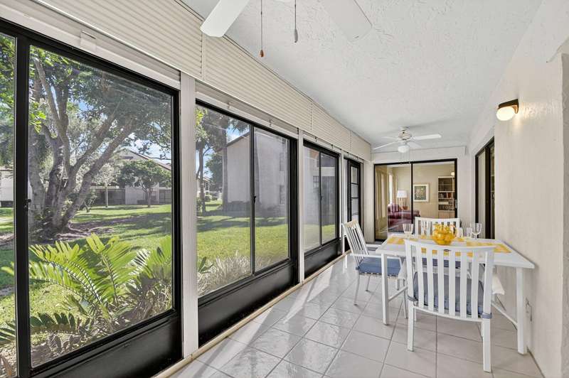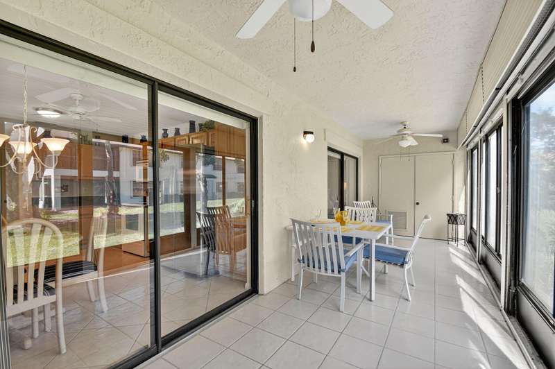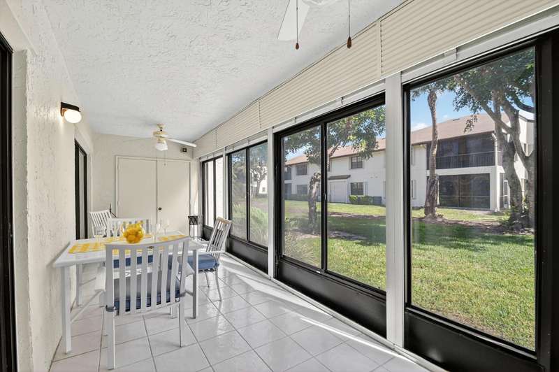 Step into a light, bright, and airy space filled with natural sunshine and a peaceful ambiance. This 3 bedroom/2 bath/1 car garage unit features split bedroom plan, can be used as 2 primary suites ,each with its own bathroom. Primary bath has new curbless, extra-wide entry into shower. Open layout dining/living area with large windows. Kitchen has granite countertops, newer fridge. Relax in screened-in, tiled patio in the back. Easy one-level, first floor condo feels like a single family home. Friendly, serene, active 55+ community, with clubhouse, pool, tennis, etc. Close to beaches, restaurants, shopping. ****Seller concessions available****