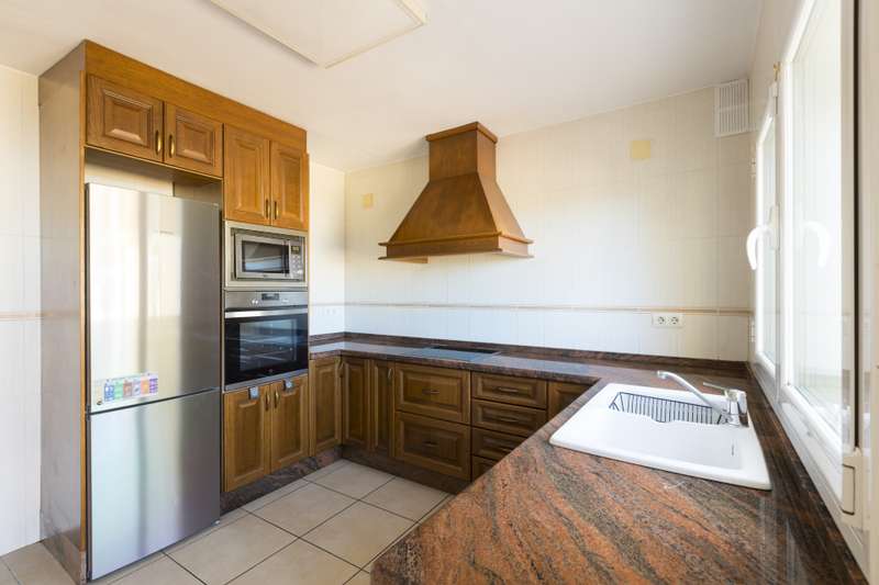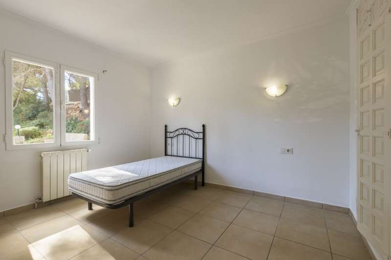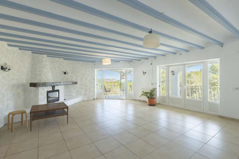 Large villa on a spacious plot of 2.558 m2 with fantastic views of the Bay of Javea, with an area of 238m2. It is distributed in two levels: The main floor consists of spacious living room with fireplace and covered terrace with fantastic sea views, fully equipped kitchen, 3 bedrooms and 2 bathrooms (one of them en suite). This area also has access to a patio with barbecue area and sun terrace access. On the ground floor there is a spacious garage for two cars and a guest apartment with a living room, bathroom and a double bedroom. The property enjoys swimming pool 8x4 meters, low maintenance garden, central heating with gasoil and outdoor parking area. It should be mentioned that there is possibility of dividing the plot into two and building another villa.