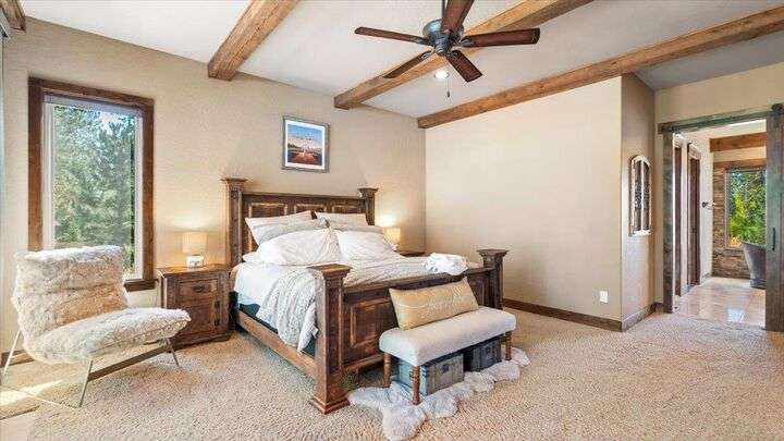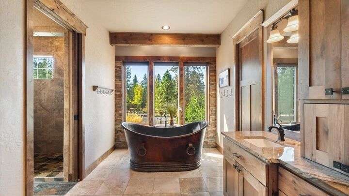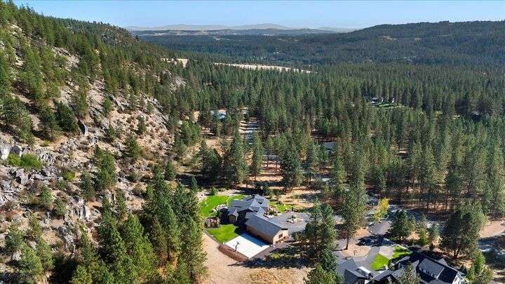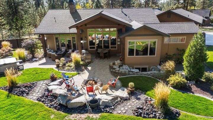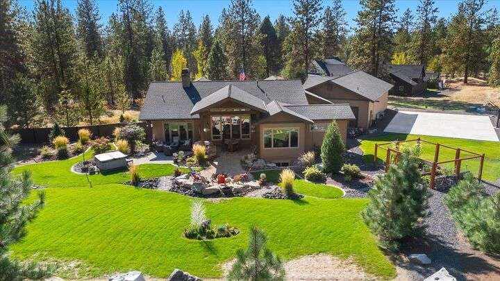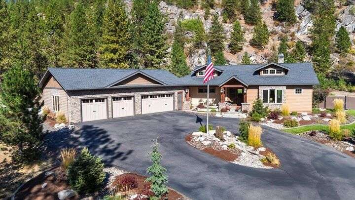 Welcome to this absolutely exquisite Craftsman style rancher located in Spokane's premier gated Riverbluff Estates community. No detail was missed in the construction of this amazing custom home. Features include an opulent main floor primary retreat with double walk-in closets + beautiful copper soaking tub; soaring ceilings; culinary dream kitchen; spacious butler's pantry with built-in storage, kegerator + nugget ice maker; 32x52 insulated heated garage; sports court; private deck; covered patio with natural gas BBQ, fire pit + hot tub; enclosed garden space + professional landscaping. The setting is private, peaceful + serene, but the location offers easy access to the Kalispel Golf + Country Club, St. George's School, the Little Spokane River Natural Area, shopping + restaurants. Paradise Found!