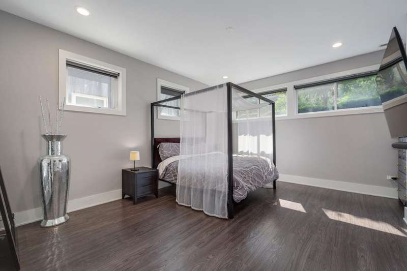 Spacious 3000 SF Duplex for Rent in Pilsen, Chicago, 3 Bed, 2.5 Bath with Garage & Outdoor Oasis This newer-construction (2017) 3-bedroom, 2.5-bath duplex offers 3,000 square feet of modern indoor-outdoor living on a one-way street. The main level features unique and eye-catching hardwood floors throughout. A gourmet kitchen is equipped with quartz countertops and premium KitchenAid appliances, perfect for cooking and entertaining. The open-concept layout offers flexibility for a combined living and dining space or a more casual family room setup. A convenient half bath with Gucci wallpaper adds fun functionality to the first floor. One of the standout features is the massive 600-square-foot covered outdoor terrace, designed for year-round enjoyment. It features commercial-grade roll-down shades, two wall-mounted fans, and an outdoor TV, creating a resort-like ambiance that is ideal for entertaining. The lower level includes three spacious bedrooms and two full baths, highlighted by a private primary suite for added comfort and privacy. A family or media room provides additional living space. Radiant heated flooring ensures cozy winters, while a side-by-side Samsung washer and dryer offer modern convenience. The home also features a high-efficiency tankless water heater for energy savings and consistent hot water. The rental includes one-car garage parking and several high-end electronics: a Samsung 85 TV on the main level, a 75 TV in the primary bedroom, and a 65 TV on the outdoor terrace. Outdoor patio furniture is also provided, as listed in the inventory, making the space move-in ready and perfect for relaxing or entertaining. Located in the heart of Chicago's vibrant Pilsen neighborhood and neighboring the UIC campus, this home is just a 2-minute walk to top local spots like Don Pedro Carnitas, Simone's, Senorita's, Honky Tonk BBQ, La Vaca Margarita Bar, Marisco's San Pedro, Pilsen Yards, and HaiSous, to name a few. Enjoy the perfect mix of peace and proximity to dining, nightlife, and culture.