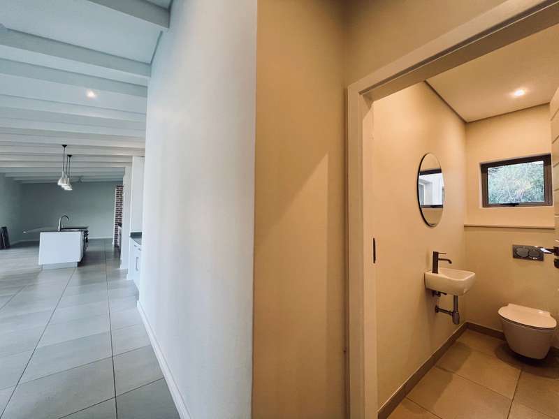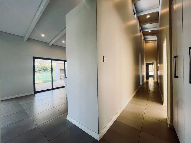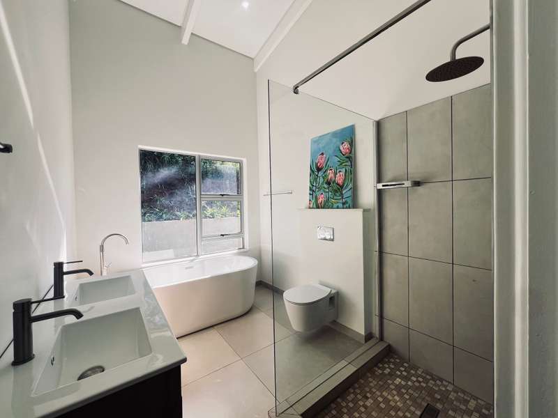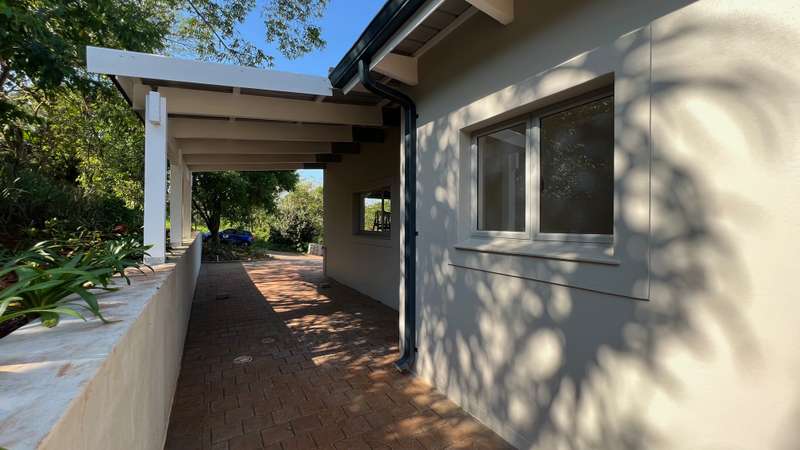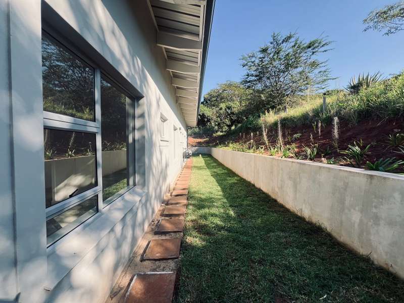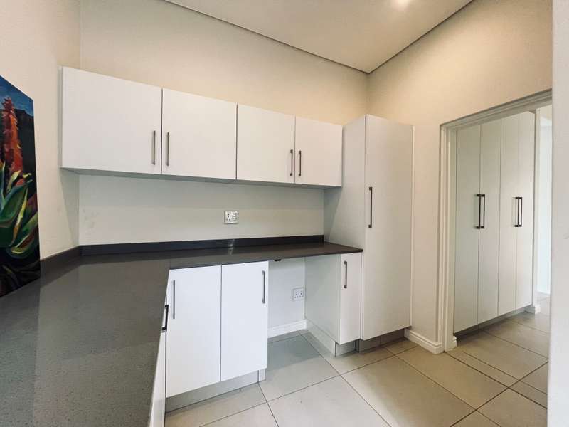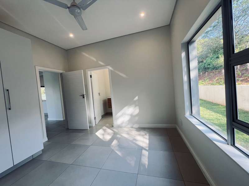 Own this modern 4-bedroom home with 4 en-suite bathrooms and a separate flat including a small kitchen and bathroom. The open-plan living areas feature the kitchen as the heart of this architecturally styled home, with continuous stacker doors offering beautiful views of the Umlalazi River and natural bush surroundings. The entertainment area includes a built-in braai and swimming pool, adding to the home's splendour. The fifth bedroom can serve as a separate guest room or staff quarters, complete with a kitchenette, bathroom, and its own carport. The Estate has restored the land to its natural beauty through the rehabilitation of local flora and fauna, with bird life particularly prolific, boasting over 300 recorded species. Enjoy safe outdoor entertainment with walking and cycling trails and picnic areas. Embrace the serene lifestyle offered by Zini River Estate, where modern living meets nature’s tranquility.