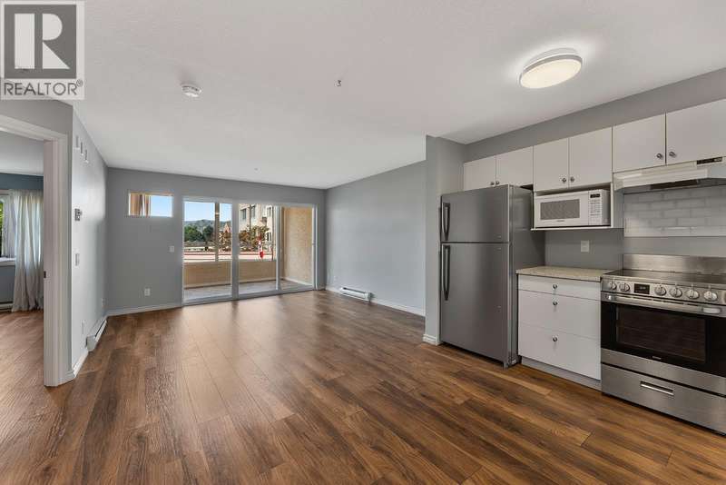 Bright, Updated & Affordable 1-Bedroom Condo in a Welcoming 55+ Community Move-in ready and budget-friendly, this charming 1-bedroom, 1-bathroom condo offers exceptional value in a well-maintained adult community. The open-concept layout feels bright and inviting, featuring a generously sized bedroom, a full bathroom, and a dedicated laundry room complete with a washer and dryer. Thoughtful updates include newer laminate flooring, modern LED light fixtures, and refreshed baseboards and casings. An enclosed sunroom extends your living space—ideal for reading, morning coffee, or year-round relaxation. All appliances are included for your convenience. Enjoy low strata fees that grant access to a wonderful selection of amenities, including a community lounge, banquet room, library, and common BBQ area. The location couldn’t be better: just steps to transit, shopping, parks, medical clinics, and restaurants. Additional perks include a storage locker and immediate possession availability. A fantastic opportunity to join a friendly 55+ community at an unbeatable price! (id:7434)