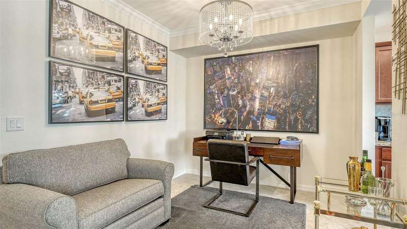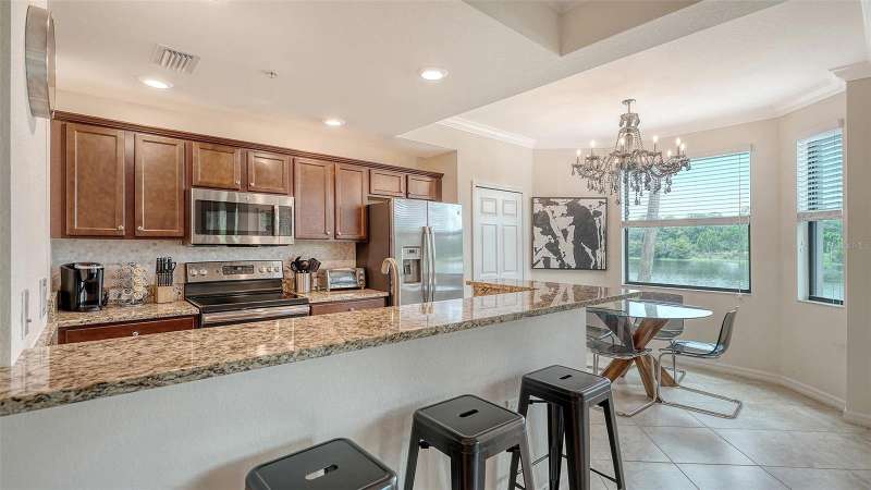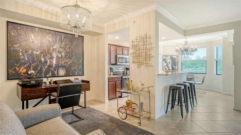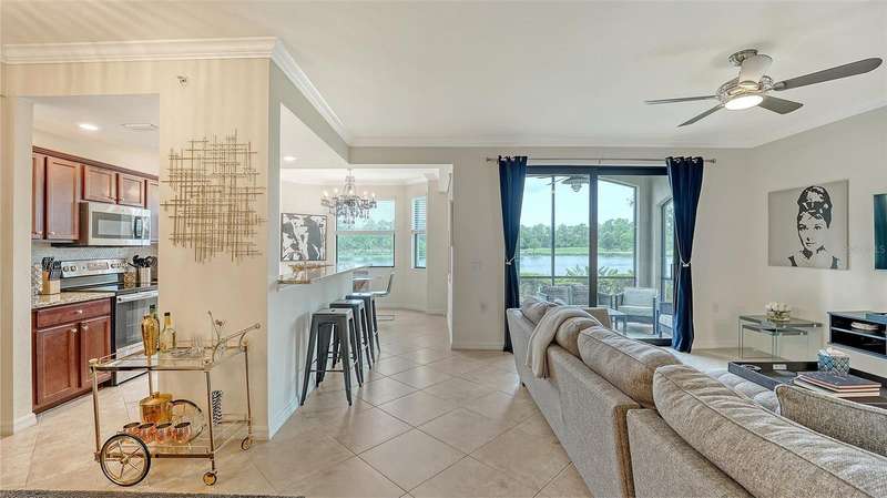 Opportunity awaits in Lakewood National with this beautifully furnished first-floor Bellini condo offering the ultimate in resort-style living—with golf membership included. Enjoy breathtaking views of the 12th hole of the Commander Course, home of the PGA’s LECOM Suncoast Classic, along with serene water and preserve scenery that provide exceptional privacy and tranquility. This light-filled 2 bedroom, 2 bathroom floorplan is open and spacious, featuring a stylish kitchen with granite countertops, shaker-style wood cabinetry, a breakfast bar, and a cozy eat-in dining area. The adjoining living and dining spaces flow seamlessly for easy entertaining, and a flexible layout offers space for a formal dining area, home office, or additional sitting room. The primary suite is a relaxing retreat with a walk-in closet, flat screen TV, and an en-suite bath featuring a large vanity and walk-in shower. The second bedroom offers a queen bed and ample closet space, and the living room includes a queen-size sleeper sofa to comfortably accommodate up to six guests. An indoor laundry closet with washer and dryer, plus an outdoor storage unit for bikes or beach gear, adds convenience. Residents enjoy maintenance-free living and access to world-class amenities, including 36 holes of Arnold Palmer-designed golf, a zero-entry heated resort pool with waterfall and lap lanes, a poolside tiki bar and café, a state-of-the-art fitness center with classes, a full-service spa, bocce, pickleball, eight lighted Har-Tru tennis courts, and six satellite pools—including one just steps from this unit. The 28,000-square-foot Grand Clubhouse will offer fine and casual dining, private event space, locker rooms, and a vibrant social scene, all within a 24-hour guard-gated community. Perfect as a full-time residence, seasonal getaway, or investment property, this unit is move-in ready with a strong rental history averaging $8,000 per month during peak season. Unlike new construction, there’s no waiting for builder delays or furniture deliveries. Lakewood National is located within Lakewood Ranch, the nation’s #1 master-planned community, offering top-rated schools, nearby shopping and dining, arts and entertainment, and quick access to I-75, downtown Sarasota, Bradenton, Tampa, and the Gulf Coast’s world-renowned beaches. Don’t miss this rare opportunity to own a slice of paradise in one of Florida’s most desirable golf communities. Schedule your private tour today and discover the Lakewood National lifestyle.