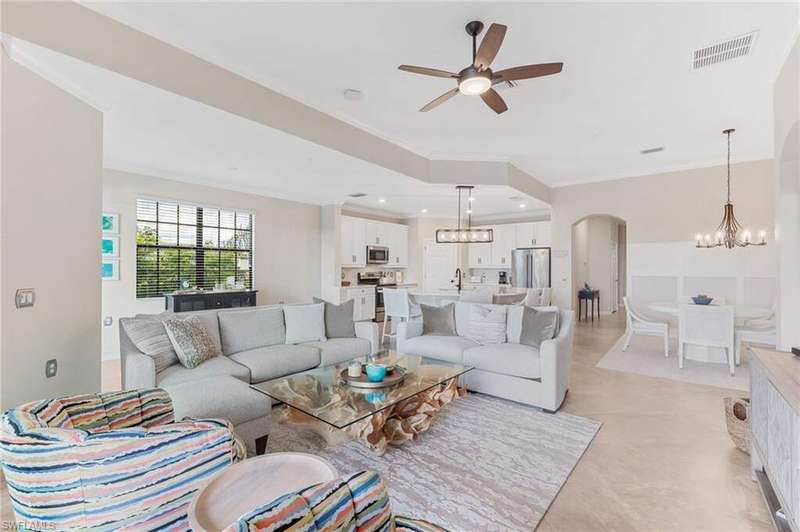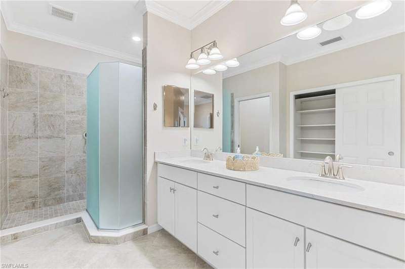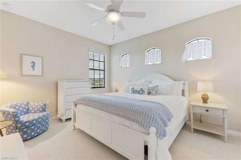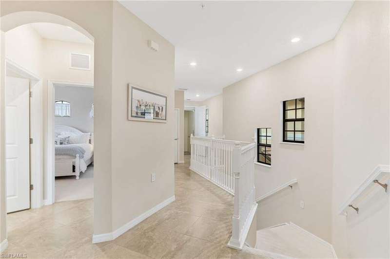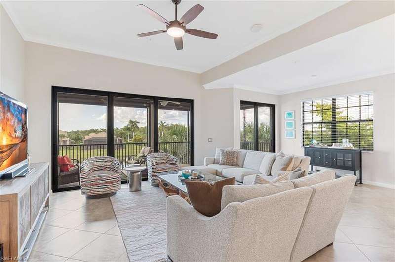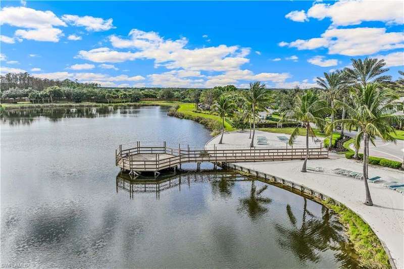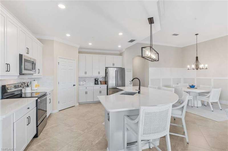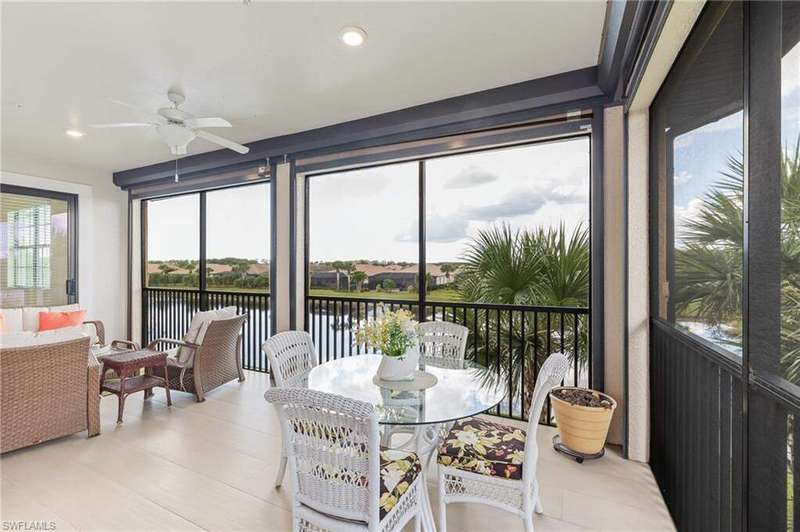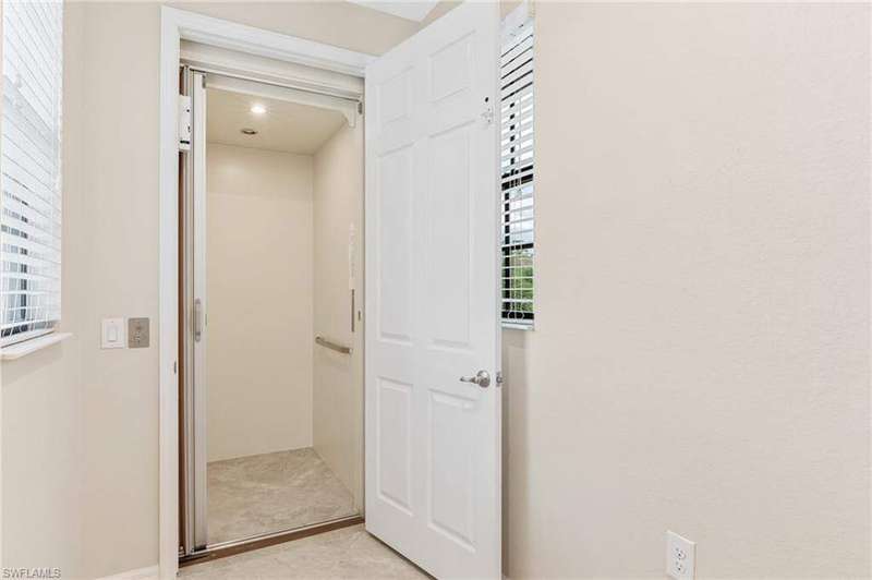 ONE OF THE BEST LAKE/WATER VIEWS IN PELICAN PRESERVE. . . Perfectly positioned with a short walk to Casella's Community Pool, this spacious, second floor unit w/private elevator spans over 2,500 total sq. ft. The bright and sunny unit with its volume, tray ceilings feature updates of new interior paint throughout with soothing shades of all-natural hues to compliment the negotiable brand-new coastal furnishings and beautiful new carpet flooring. The open concept designed kitchen has premium stainless-steel appliances; 42" white cabinets; counter bar island seating; large walk-in pantry with custom built-in shelving; and beautiful white quartz counter tops w/new tile backsplash. Multiple sets of sliding glass doors lead out to the covered lanai w/new tile flooring + electric hurricane shutters. The enclosed, screened balcony offers endless, panoramic sunsets captured by its coveted western facing lake view. A two-car garage with added storage hooks and shelf + laundry room with new cabinets and sink complete this unit with flexible storage space options. Perfect for anyone seeking a second home or as a permanent residence. . . this home invites true resort-style living and an elite lifestyle in an amenity rich, active 55+ community. Be sure to check out all of the Town Center's community offerings of multiple sports, arts & crafts activities, social clubs, indoor movies and live concerts. Truly a coastal get-a-way you'll love coming home to.