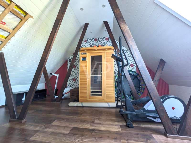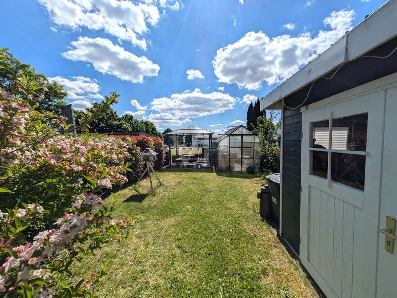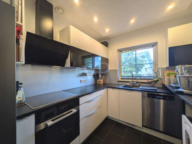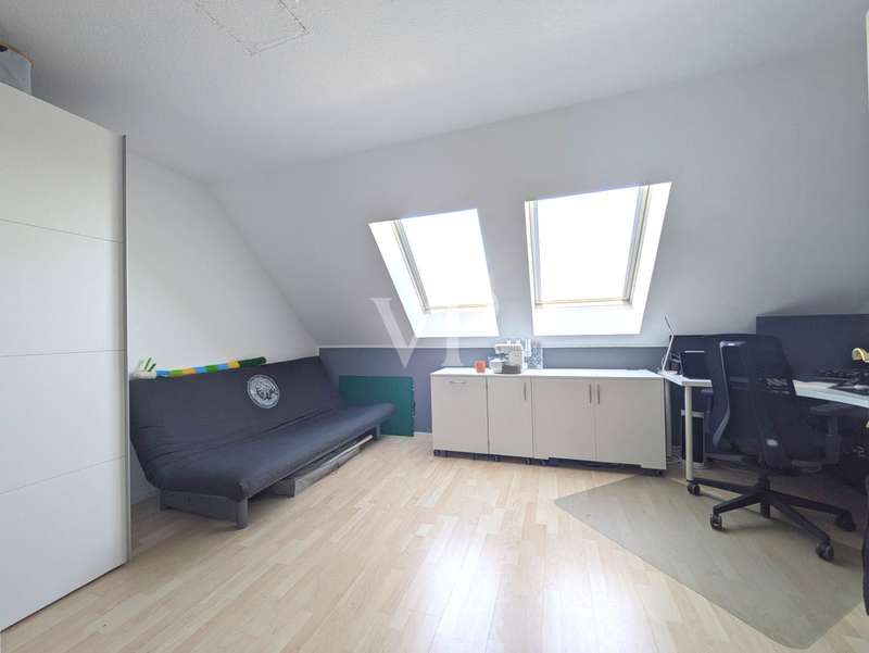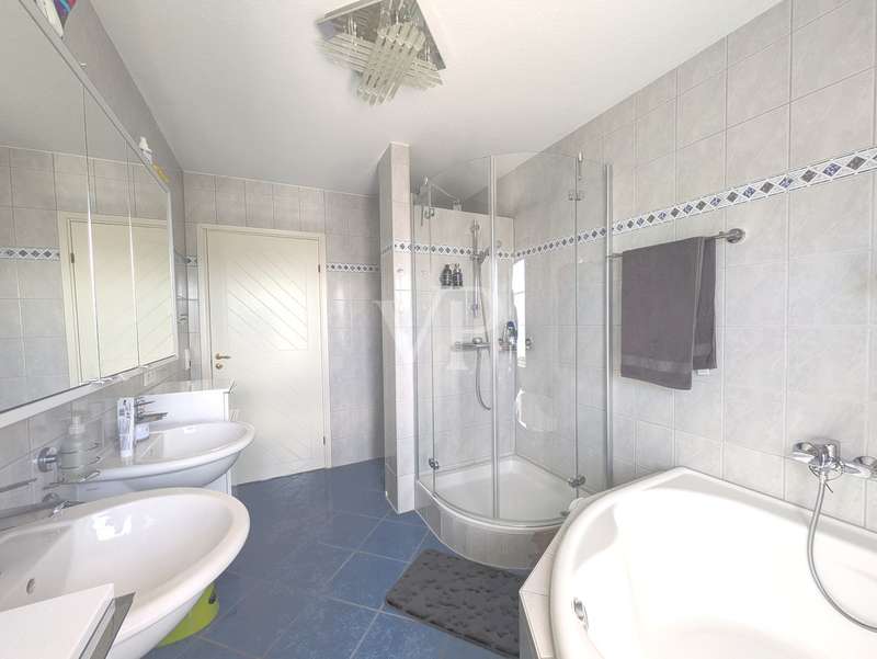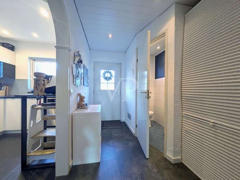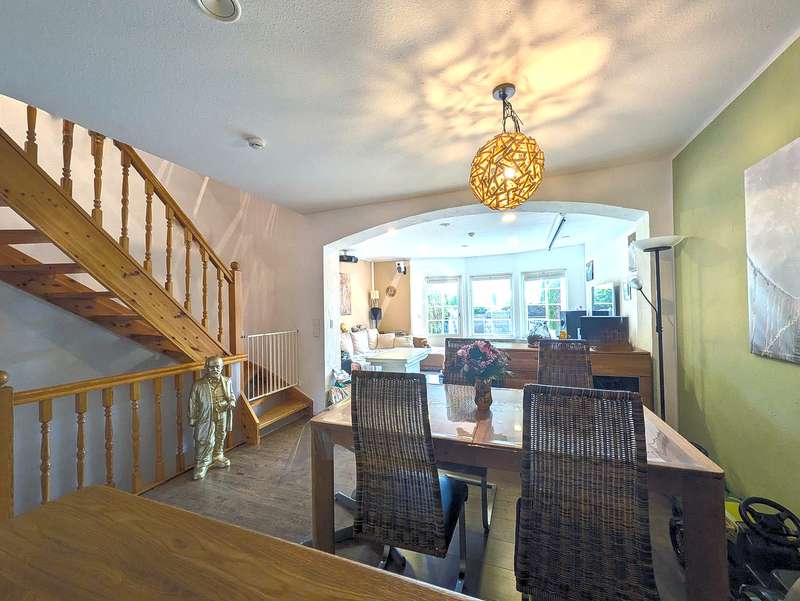 This attractive mid-terrace house offers modernized living comfort on approx. 142 m² of living space and is located on a plot of approx. 436 m². Built in 2000, the house is in a very well-kept condition and was last extensively modernized in 2023 and 2024 to meet today's standards. The house comprises a total of 6.5 rooms, including four bedrooms or studies, so there is enough space for a family with 3 children. Two well-equipped bathrooms provide additional space. The house's timber frame construction creates a pleasant indoor climate. On the first floor is the spacious living and dining area with access to the terrace and garden, which is ideal for cozy hours outdoors. A modern fitted kitchen, equipped with the latest appliances (stove from 2024, dishwasher from 2020), makes cooking a pleasure. On the 1st floor are the master bedroom and one of the children's bedrooms, as well as the main bathroom with shower cubicle and bathtub. There is also a utility room here, which offers practical storage space. On the top floor, there are two further rooms that can be used as a children's room, guest room or study, as well as another bathroom. The continuous staircase leads to the top floor of the house, where not only objects can be stored, but where the infrared cabin is also located as a retreat for moments of well-being. A particular highlight of the house is the comprehensive energy modernization. In 2023, a photovoltaic system with battery storage and emergency power function was installed, which, together with the newly installed wall box for electric vehicles, ensures sustainable energy use. The air heat pump installed in 2024 complements this concept. The new clay tile roof in 2023 rounds off the measures to improve energy efficiency. The house offers a consistently comfortable indoor climate thanks to the intelligent air circulation system and ventilation in every room. The modern smart home heating system allows the room temperature to be controlled conveniently and efficiently. Other features include the double-glazed wooden windows, which have been replaced by plastic windows on the top floor, and the insulated basement ceiling. The house also has two functional cellar rooms that offer additional storage space. The house comes with a registered outdoor parking space for your car. Two further vehicles can be parked in front of the house on the property. The well-kept garden, which adjoins the terrace area, offers plenty of space for leisure activities and relaxation. A garden shed is available for storing your garden furniture and equipment. The outdoor area is very well maintained and offers a variety of design options. Overall, this property is ideal for families who value modern and sustainable living. The combination of a well thought-out room layout and technical features makes the house an attractive home. Interested parties are cordially invited to discover this well-kept mid-terraced house and experience its benefits for themselves. Please do not hesitate to contact us for further information or to arrange a viewing appointment.