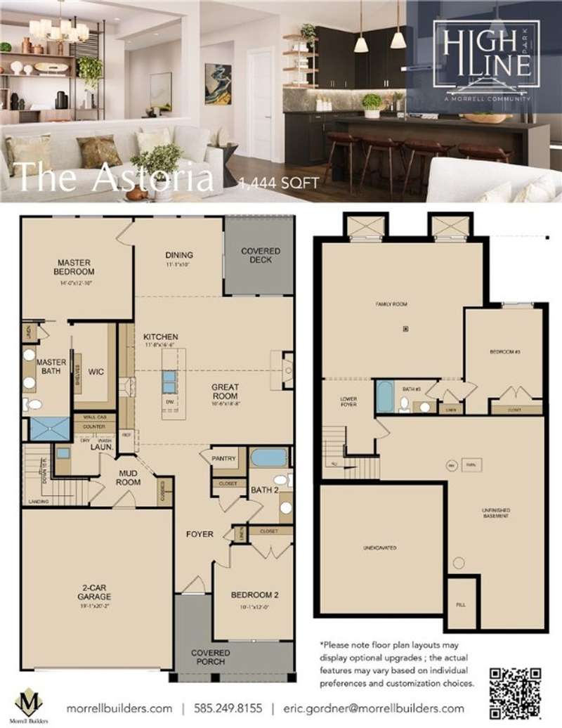 Introducing "The Astoria" at Highline Park, an inviting and modern town home designed for comfort, style, and easy living! Built by Morrell Builders, a trusted, third-generation builder known for quality craftsmanship. With1,444 sq. ft. of thoughtfully planned space, this open-concept design features soaring cathedral ceilings that enhance the bright and airy feel. The great room seamlessly connects to the kitchen, where you can select premium finishes and customize your kitchen and bathrooms to match your style with The Inde Design Studio. Enjoy the convenience of first-floor living with a well-appointed primary suite just steps away.Plus, the opportunity for a lower level finish provides the opportunity to expand your living space to suit your needs. Price includes a walk-out basement with a sliding glass door. Don't miss your chance to personalize "The Astoria"and make Highline Park your home! Please note photos shown may include upgrades and design selections that do not reflect the standard features or actual exterior selections of the home. Actual specifications may vary.