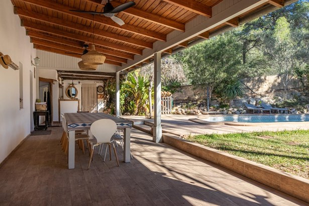 Nestled between a tranquil cove and the prestigious Santa Ponça Marina, this exquisite property combines serenity, comfort, and unmatched proximity to all essential amenities. Within a short 10-minute stroll, you’ll find pristine beaches, fine dining, and shopping—all while enjoying complete privacy and the beauty of the surrounding natural landscape.~~The residence features a spacious private driveway with an electric gate and parking for 3–4 vehicles.~~Upon entering, you’re welcomed by a bright entrance hall that opens into a luminous living room with a wood-burning fireplace and an elegant dining area. The fully renovated kitchen is both modern and functional, equipped with city gas and designed for everyday ease. Both the living room and kitchen areas open onto a rear porch with open views of the garden.~~This outdoor space is designed for relaxation and entertaining, featuring a swimming pool, a summer kitchen with a traditional wood-burning barbecue, and a stylish chill-out lounge—perfect for enjoying Mallorca’s climate year-round.~~Also on the ground floor is a sunlit double bedroom and a newly renovated full bathroom—ideal for guests or individuals with reduced mobility.~~On the first floor, you’ll find two generous double bedrooms, each with its own en-suite bathroom, walk-in closets, and access to private terraces that enjoy southwest exposure and sunlight throughout the day.~~The plot borders a protected natural park, ensuring a peaceful green backdrop, no future development, and exceptional privacy.~~This is a special property offering a complete lifestyle experience in one of the most desirable areas of southwest Mallorca.~~ **PRICE NOT NEGOTIABLE**