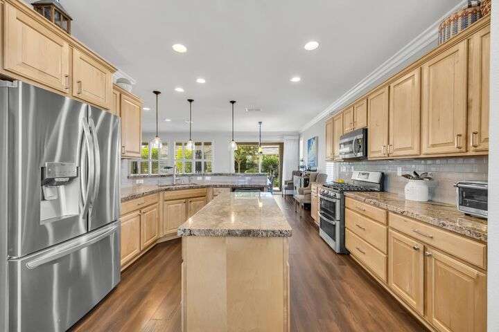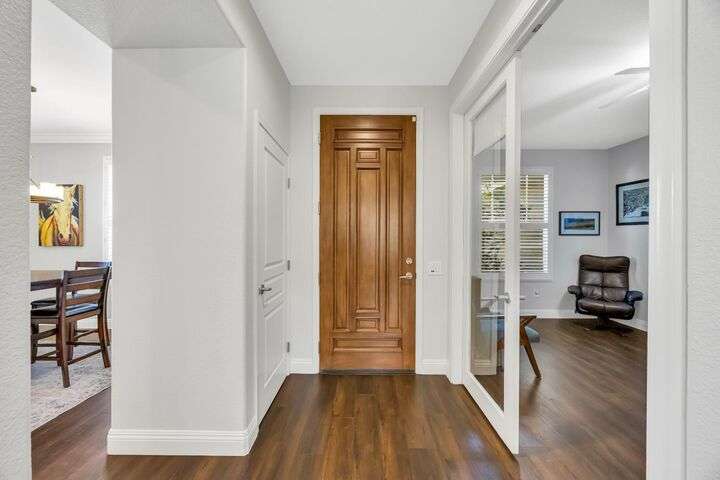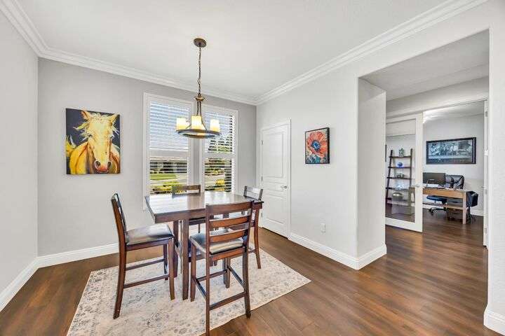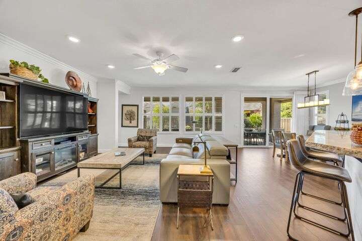 Welcome to Sun City Lincoln Hills, the premier 55+ active adult community! Appreciate this spacious El Dorado floor plan nicely tucked away in a quiet cul-de-sac. As you enter this bright and spacious home you will see the large office which offers glass doors and a stylish workspace. This beautifully updated home features luxurious LVP floors, a modern kitchen with granite countertops, island and maple cabinets. Plantation shutters and crown molding enhance the home's luxurious feel. The primary suite offers a walk-in closet, bathroom barn door and bay window with sitting area. Step outside and enjoy your own private oasis. This spacious yard offers a covered patio where you can relax and enjoy a soothing water feature and pond. Extensive walking paths allow you to appreciate a pre-wired location for your private spa, an extra sitting area, nicely manicured plants and flowers offering a drought resistant, low maintenance yard. Five grape vines with auto watering system produce enough grapes to make several jars of jam. Take a tour of the community and enjoy our many amenities; two club houses, restaurant, spa, fitness center, golf, pickleball, tennis, bocce ball, softball and numerous walking trails. This home is move-in ready come make it your own.