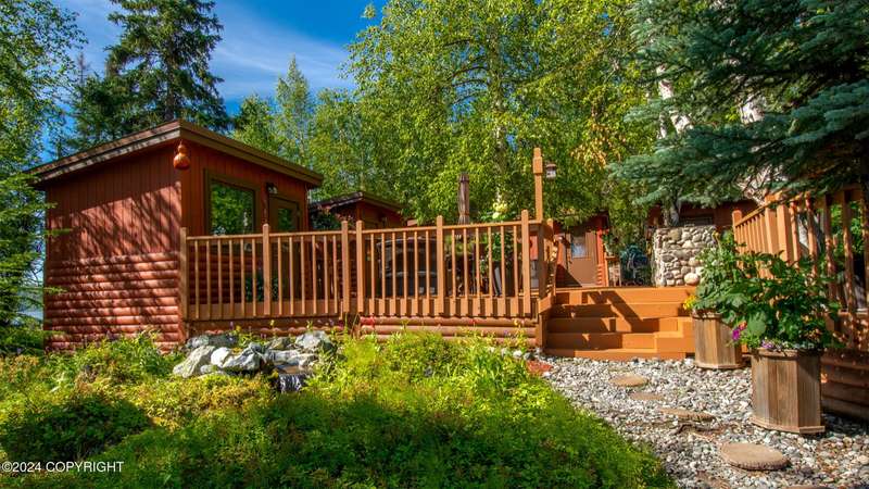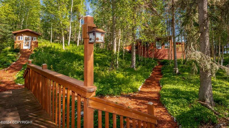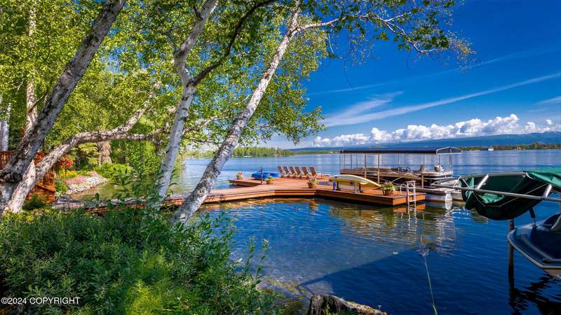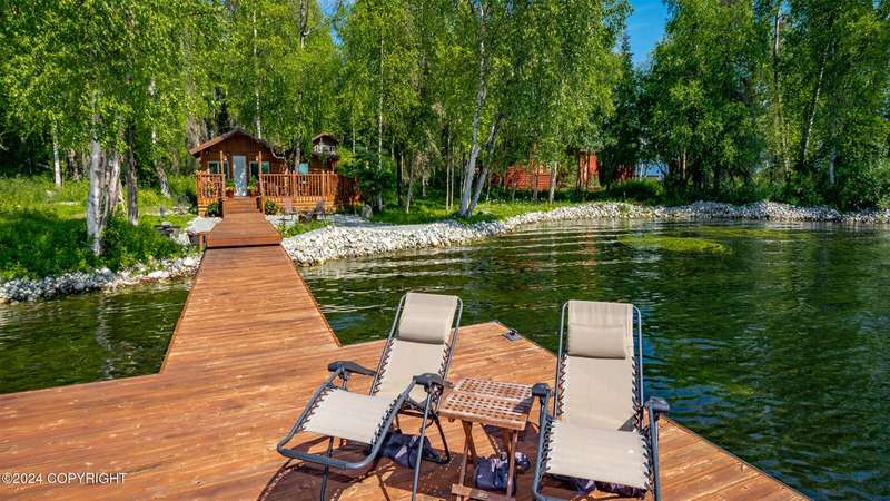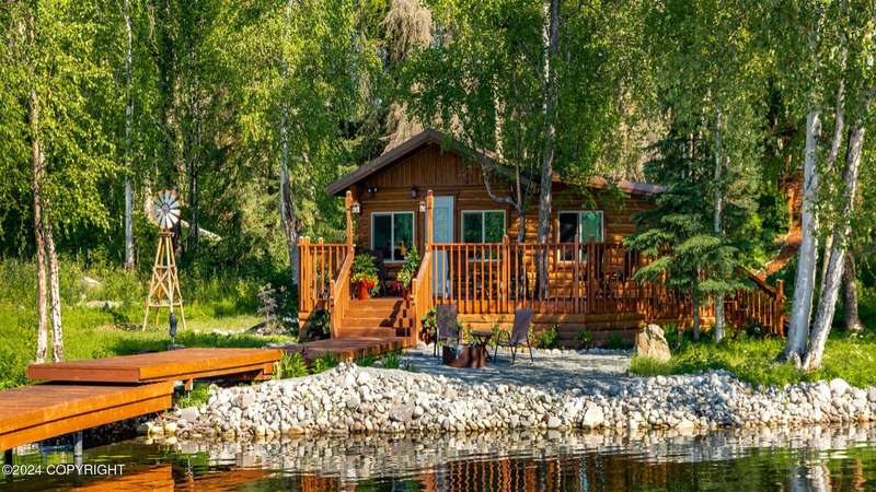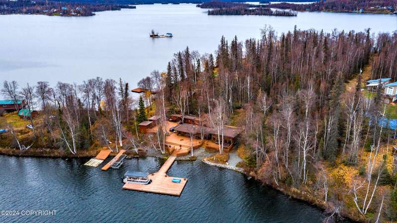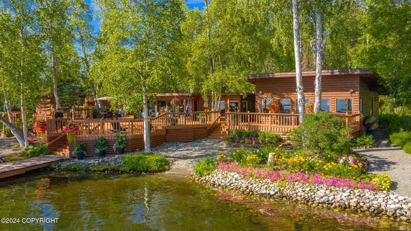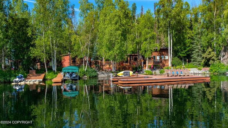 Escape to your private island paradise in one of Alaska's most popular year round recreational areas! This exceptional property offers a stunning main cabin and multiple guest cabins with a shared bath house, all nestled on a picturesque Big Lake island! Enjoy breathtaking views, beautiful garden beds and expansive decks perfect for entertaining or corporate retreats on those long summer days! With private boat docks providing easy access to surrounding waters, this property is a dream for nature lovers and outdoor enthusiasts. Whether you are looking for a peaceful retreat or a unique investment opportunity, this lake island getaway has it all! Big Lake also features 3 public marinas and 2 private ones, and 3 public boat launches along with 2 waterfront restaurants and an island coffee hut. boat launches.