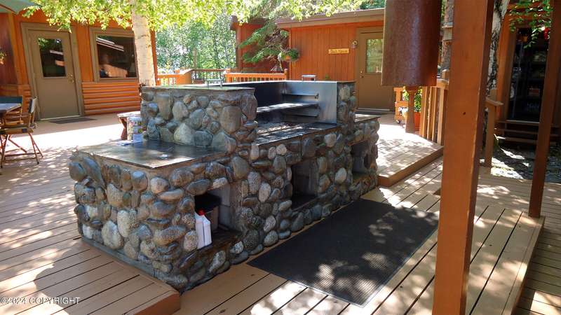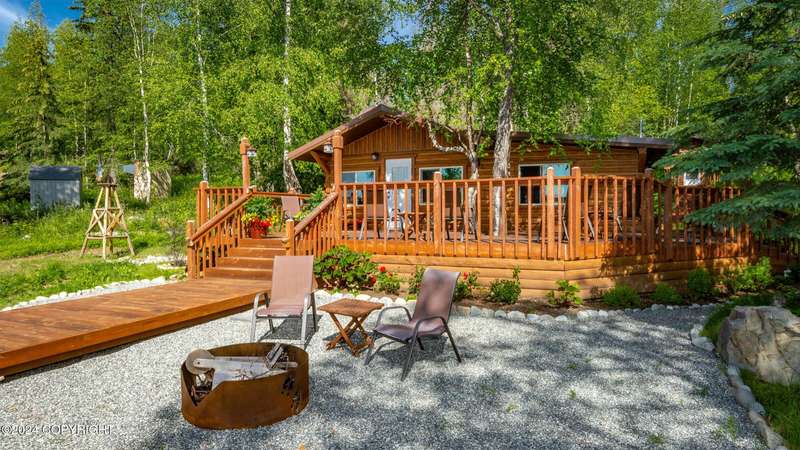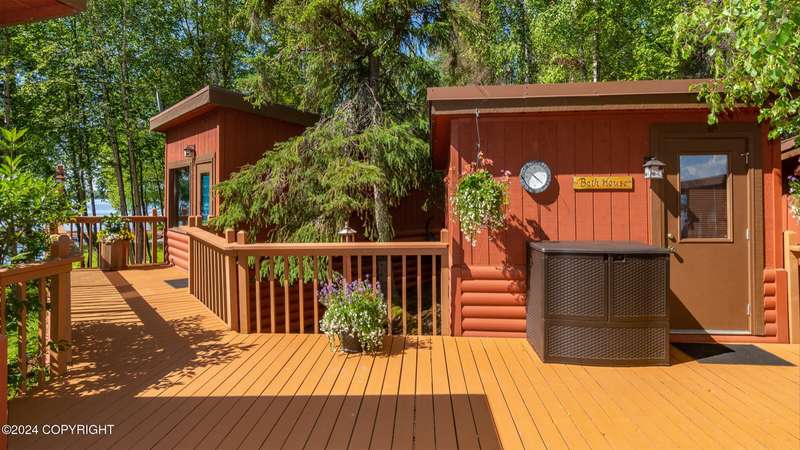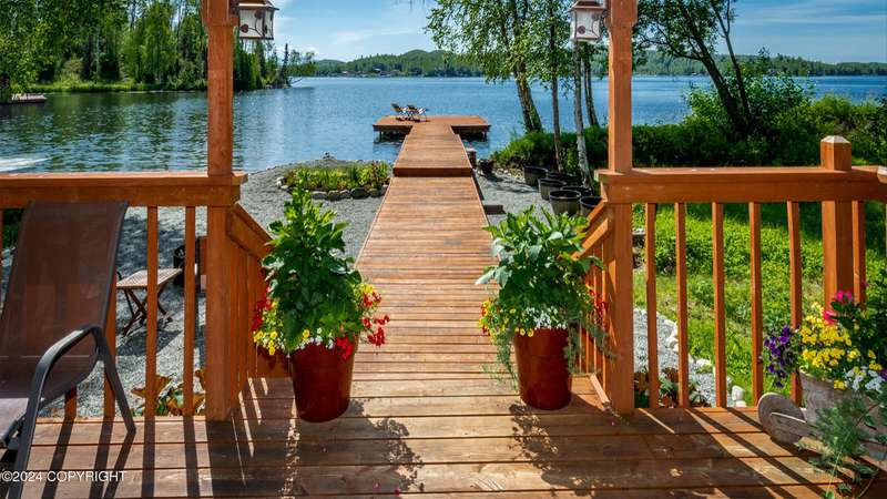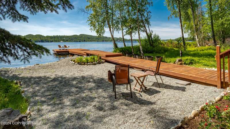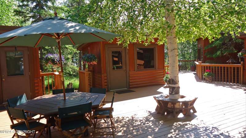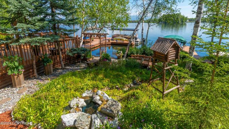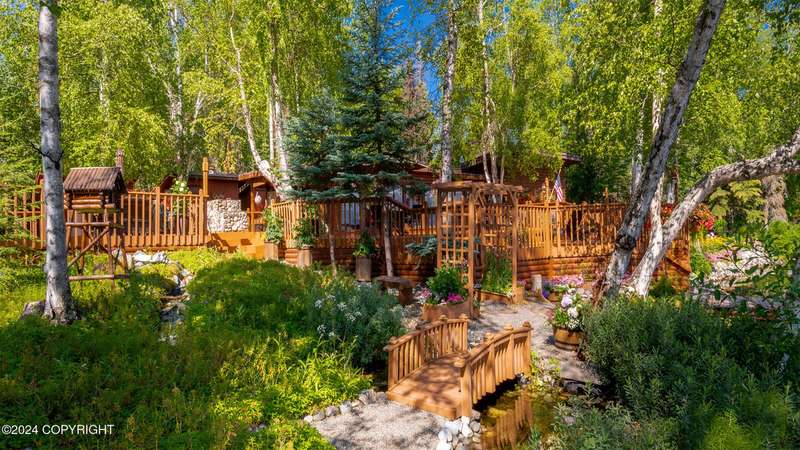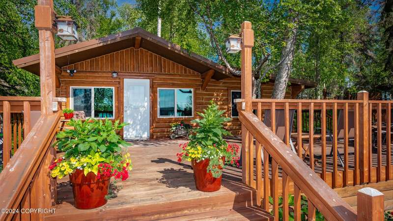 Escape to your private island paradise in one of Alaska's most popular year round recreational areas! This exceptional property offers a stunning main cabin and multiple guest cabins with a shared bath house, all nestled on a picturesque Big Lake island! Enjoy breathtaking views, beautiful garden beds and expansive decks perfect for entertaining or corporate retreats on those long summer days! With private boat docks providing easy access to surrounding waters, this property is a dream for nature lovers and outdoor enthusiasts. Whether you are looking for a peaceful retreat or a unique investment opportunity, this lake island getaway has it all! Big Lake also features 3 public marinas and 2 private ones, and 3 public boat launches along with 2 waterfront restaurants and an island coffee hut. boat launches.