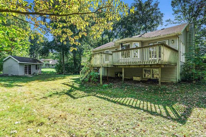 Nestled at the end of a peaceful cul-de-sac, this solid 4 bedroom, 2 bathroom home offers a spacious layout perfect for family living or entertaining. The upper level features a bright and airy living room and dining room, bathed in natural light from skylights that bring a warm, open feel to the space. Two bedrooms and a full bathroom complete the upper level. The lower level offers additional living space with a cozy den, complete with a fireplace - ideal for relaxing or hosting guests. Two more bedrooms and a second bathroom provide privacy and comfort on this level, making it a great setup for multi-generational living or visitors. This solid home is a blank canvas, ready for the next owner to update and add their personal touch. Outside, the property sits on a private .84 acre lot, offering plenty of space for outdoor activities or gardening, with a charming garden shed featuring sliding doors for additional storage. While the home provides peaceful seclusion, it is ideally located just minutes from everything you need. You'll be just a short drive from the Indiana-Michigan state line, Notre Dame University, as well as shopping and dining options. The expansive St. Patrick's Park, just down the road, offers 398 acres of scenic trails, ponds, playgrounds, and St. Joseph River frontage- perfect for hiking, picnicking, or enjoying a day outdoors. Summer or Winter, you will always find things to do here! This is a rare opportunity to own a home with great bones in a desirable location, ready for you to make it your own. Schedule a showing today and imagine the possibilities! Home is being sold "As-Is".