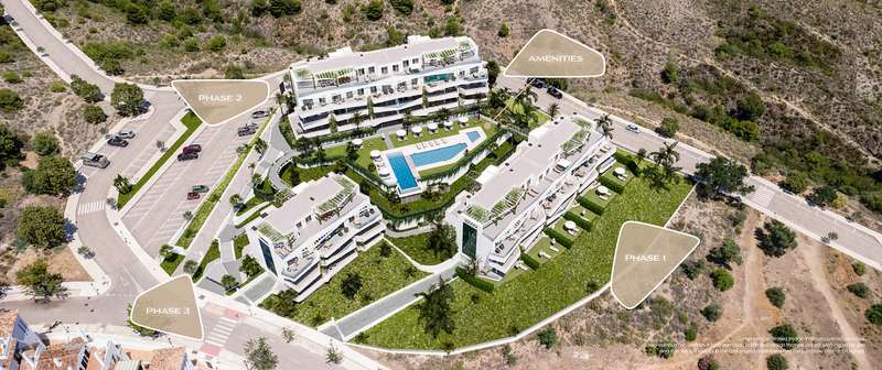 The apartments are situated in a well-developed area with all daily amenities and social facilities nearby. The apartments are 5 km from the beach. Mijas Pueblo is located within a 5-minute drive and Fuengirola is located within a 10-minute drive from the residential complex. Málaga International Airport is 20 km and Marbella Center is 30 km from the snow-white apartments.