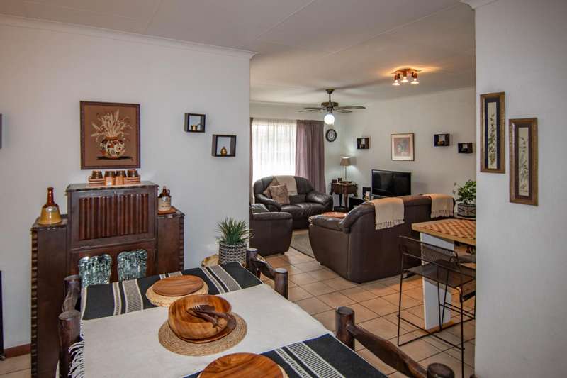 Nestled within Pekan Park, a popular gated estate in Steiltes (Nelspruit Ext 14), this spotless full title home offers sunny living areas, practical kitchen with ample cupboards and leads out onto a covered entertainer?ÇÖs patio and private pet friendly garden. The home further offers 3 comfortable carpeted bedrooms with built in cupboards and complimented by 2 neat bathrooms (main en suite). Extras include an outside laundry with enclosed courtyard, tandem garage / carport and blinds. Pekan Park is conveniently located near the Steiltes convenience centre, Kabouterland Creche n adjust minutes from several schools, churches and major routes. The suburb is renowned for upmarket homes with manicured gardens and tranquil streets where joggers and residents walking the family dogs are a daily sighting.