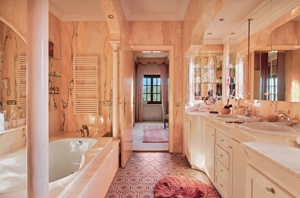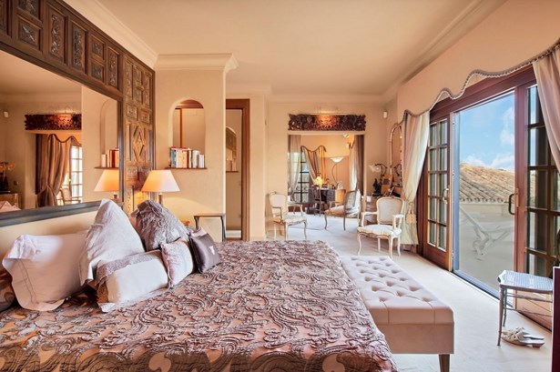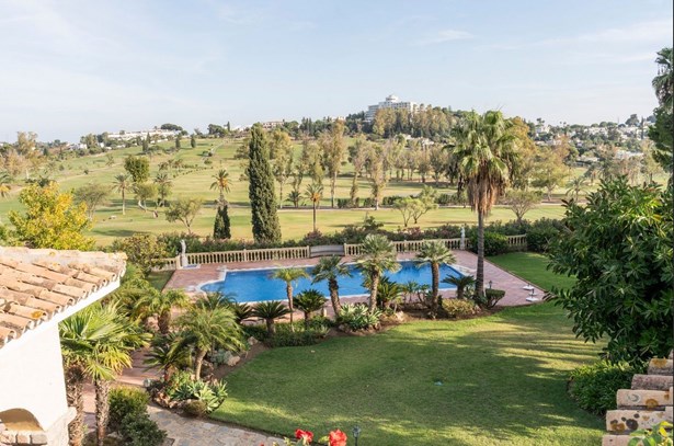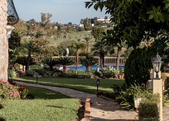 This splendid villa now on market is located in the luxurious and much sought-after residential area of the New Golden Mile: Paraiso Alto, Benahavis. Set on the largest private plot in the area (5.000 m²), front-line golf, this 3-levels south-facing house of 1000 m² enjoys spectacular panoramic golf and partial sea views of the Mediterranean as well as the famous La Concha Mountain. Its elegant classical architecture, exclusive interior designs, large rooms, stunning views and smooth circulation are keen to impress.The living floor offers a large entrance with luminous and stylish living and dining areas with a fireplace, a fully-fitted kitchen and a separate breakfast area with open views to the golf course. All the rooms receive natural light, most rooms feature open terraces and access to beautifully landscaped, mature gardens with automatic irrigation system and a large swimming pool. The first floor features 2 bedrooms, Master suite of 90 m² and 1 further guest bedroom wit