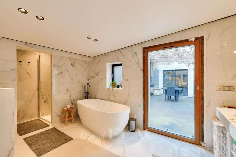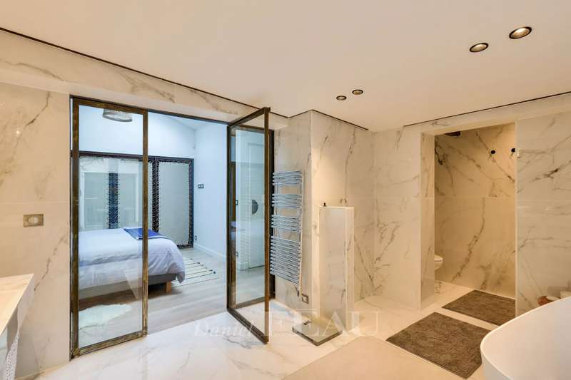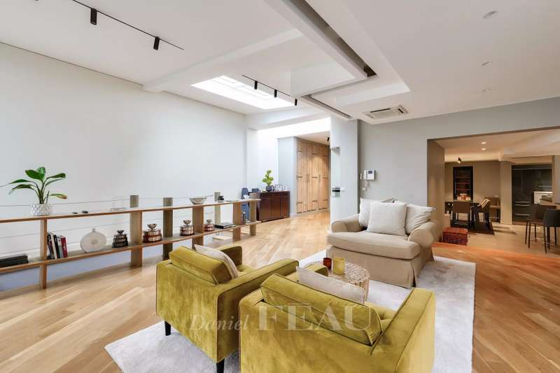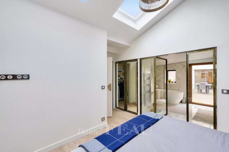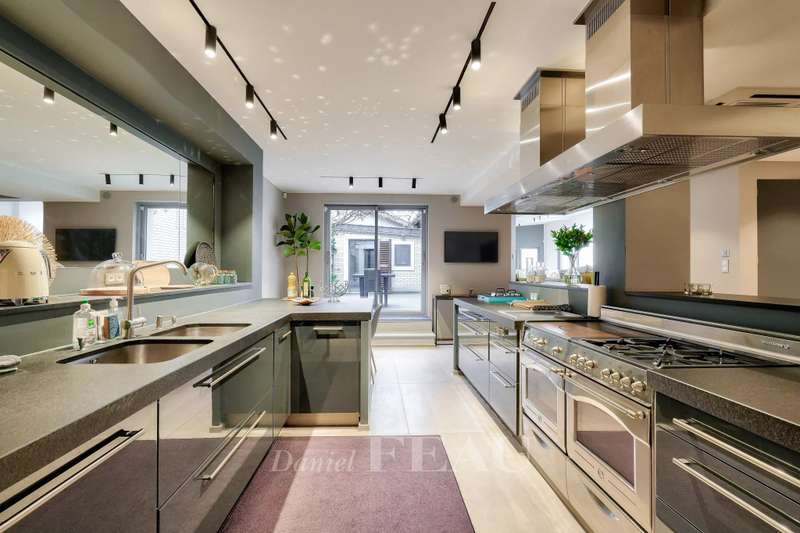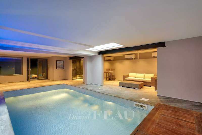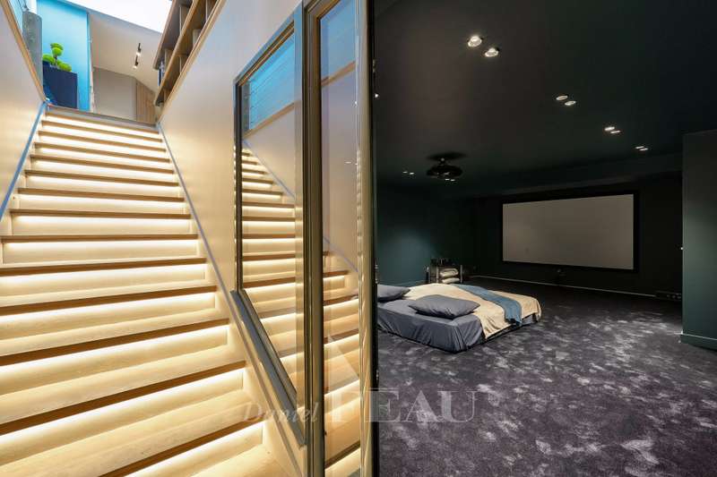 This superb architect-designed loft-style property offers about 410 sqm of living space. Benefiting from four terraces (157 sqm in total), it includes a spacious living/reception room, an immense equipped kitchen, a utility room, and three elegant suites each with a bathroom and accessing the exterior. On a basement with a swimming pool, a home cinema, a room to be fitted as desired, a sauna, a wine cellar, two shower rooms and a wc. With a two-car garage.