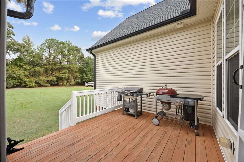 Custom built ''Southern'' beauty on over half an acre! With over 3400 sq. ft- there's room for everyone & space to play! From the moment you arrive, you'll fall in love with the beautiful curb appeal - a welcoming front porch, charming double doors, a manicured lawn, and a flat driveway that makes everyday life a breeze. Gorgeous hardwoods in the family room, dining room & kitchen. The family room has a pretty stone firpeplace, crown molding and access to the screen porch. The dining room has custom moldings, a pass through to the kitchen and is the perfect spot for hosting family & friends. The kitchen is the heart of the home with granite tops, ss appliances, subway tile backsplash, new cooktop & walk-in pantry- ideal for family meals and entertaining. Main floor owner's suite with a updated spa-like bathroom, tiled shower with a glass enclosure, tub with jets, dual vanities, a make up area and a tiled accent wall. You'll enjoy a large custom closet with plenty of storage! 2 secondary bedrooms are also on the main floor and share a full bath. (This bath also has a pretty tile accent wall.) A nice size laundry room is on the main floor and has a work sink''. Upstairs you will find the 4th bedoom which is currently being used as a bedroom/studio. (However the walls can easily be converted back if a buyer wishes.) There is also a nice size bonus room with a full bath. Start making memories in the super impressive theatre room! Enjoy a bar area, micowave, wine fridge, stadium seating & tons of space for games and movie nights! (Plus ample extra storage areas too!) The back yard doesn't disappoint as you step out to the screen porch & grilling deck overlooking the flat, large yard which is perfect for play and pets. Original owners have given this home so much TLC. Roof- 2022 ,3 HVAC Units: Media Room HVAC- 2021, Downstairs HVAC- 2024 & Bedroom 4 & Bonus Room HVAC- 2009. Septic pumped- 9/2025. Extra storage areas in the garage. This neighborhood is gorgeous with it's flat, wide streets, variety of pretty, custom homes & gorgeous mature trees. (No cookie cutter homes here!) Home is within minutes to the Clayton Community Park, UNC Johnton Health is less than a half mile, dental & medical within minutes, shopping, grocery stores, coffee shops, restaurants, breweries and the cute downtown Clayton! Plus only about 20 minutes from downtown Raleigh! Located just outside the city of ''Clayton'' so enjoy paying only county taxes! Low HOA dues. Home has so many unique spaces that allow so much versatility! If you've been looking for a home that balances comfort, function and family fun- this one has it all!