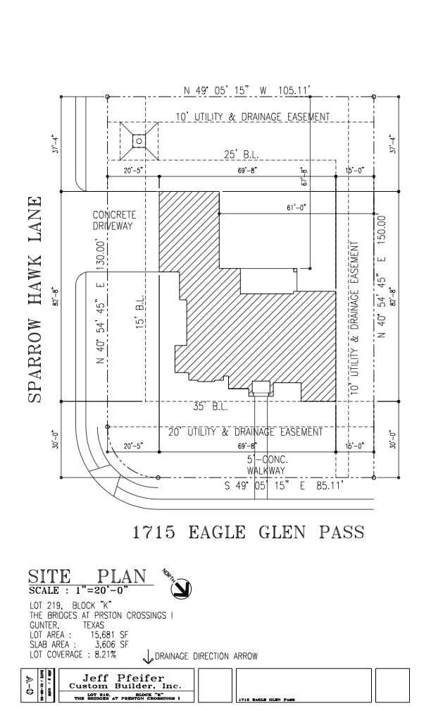 Step into luxury at 1715 Eagle Glen Pass in the desirable Bridges at Preston Crossing in Gunter. This new build home by Jeff Pfeifer Custom Homes features a spacious family room with a cozy fireplace, seamlessly flowing into an open floor plan perfect for entertaining. The private study offers a quiet space for work or relaxation. The chef's kitchen is a showstopper, boasting a huge island, high-end appliances, and an oversized pantry, all overlooking the dining area. The primary suite is a true retreat with a freestanding tub, separate vanities, a walk-in shower, and a large walk-in closet. A second bedroom with an ensuite is conveniently located downstairs. Upstairs, you'll find a large game room and three additional bedrooms, each with its own ensuite and walk-in closet. Enjoy outdoor living on the covered patio. Located in highly-rated Gunter ISD, this home has it all! This home should be complete in August of 2025.