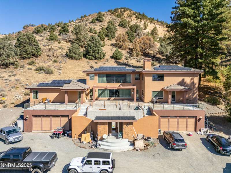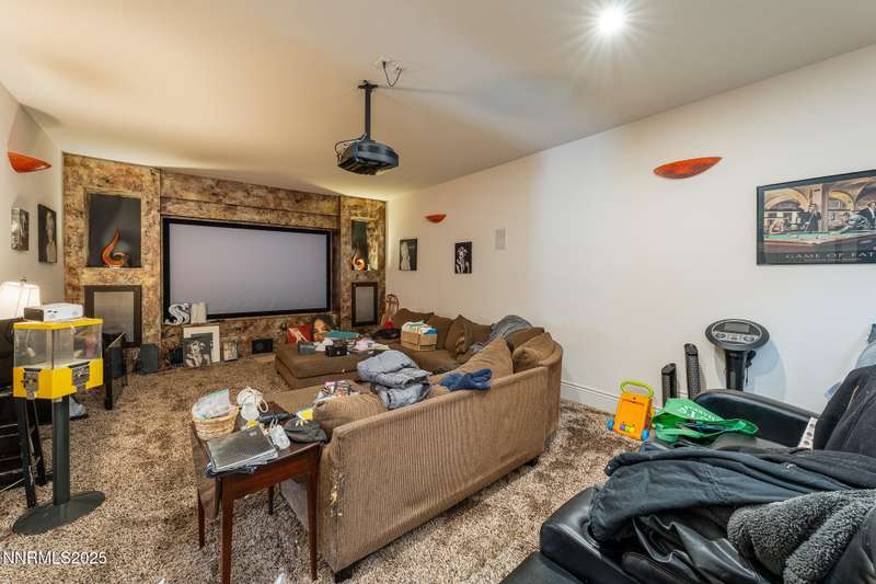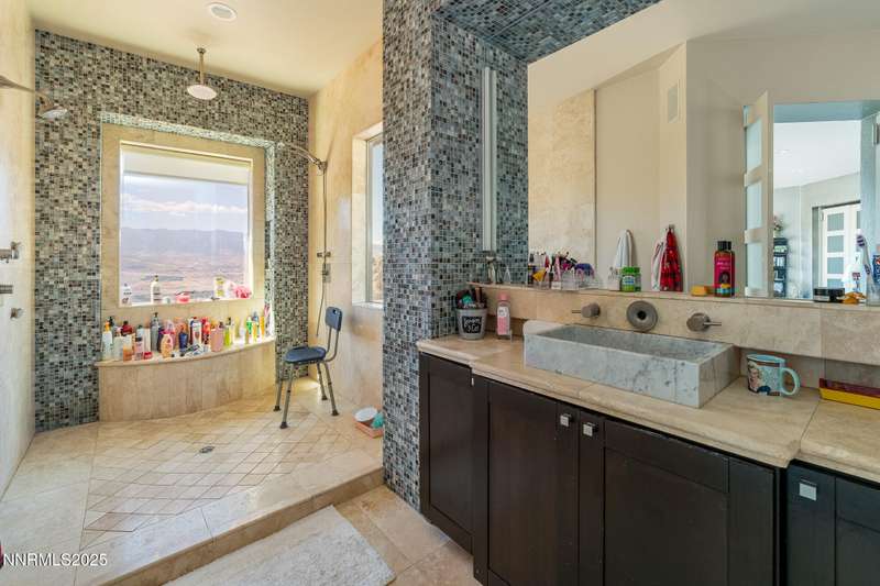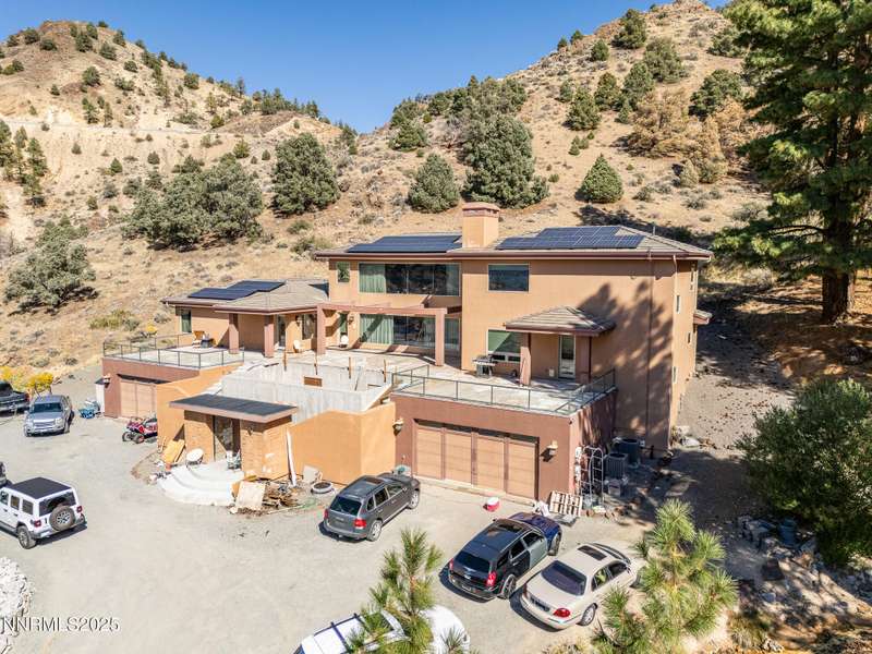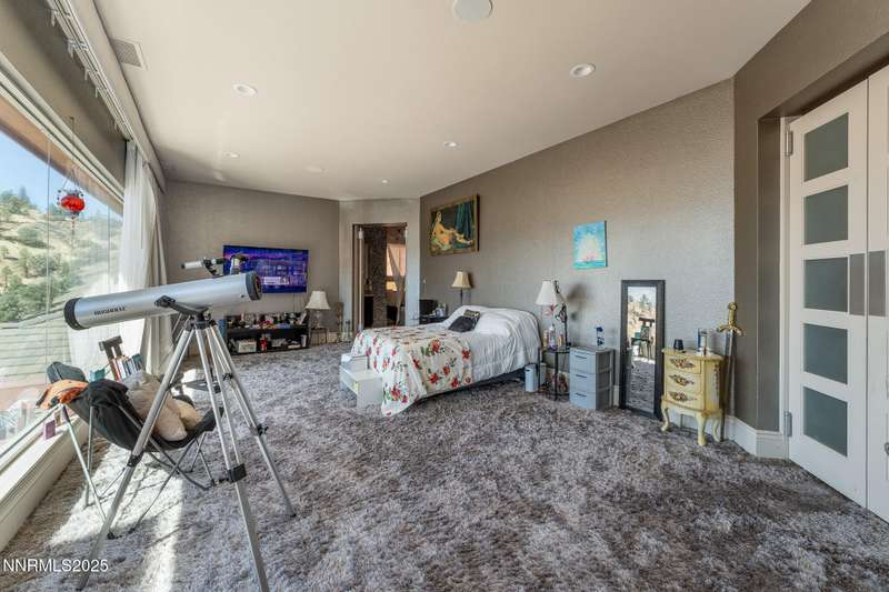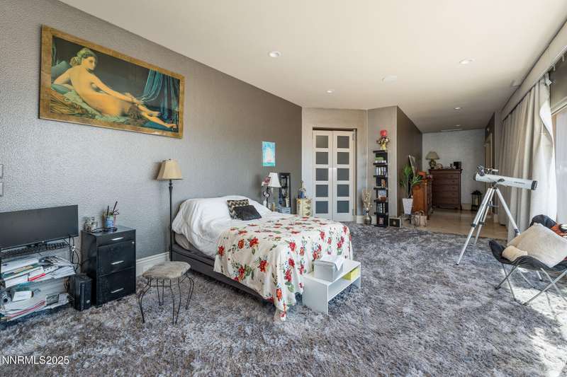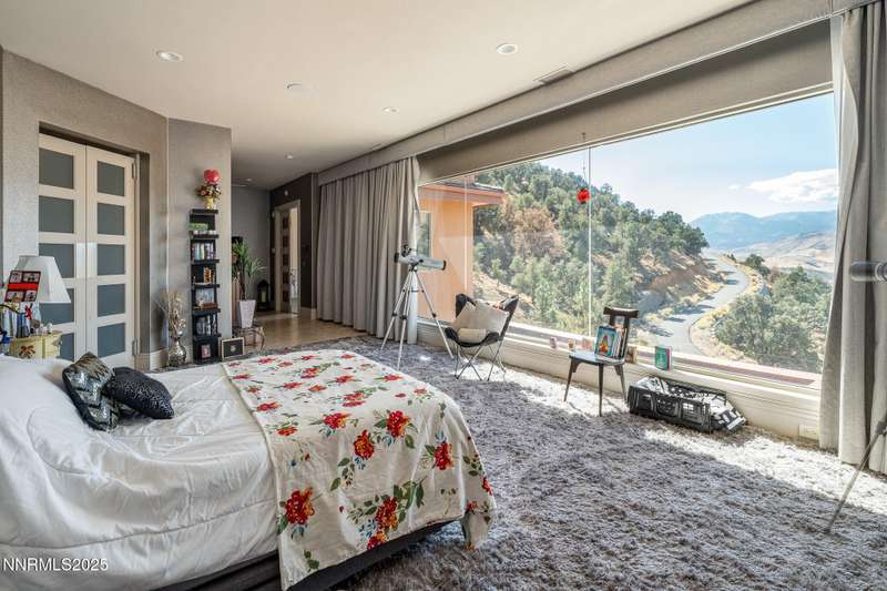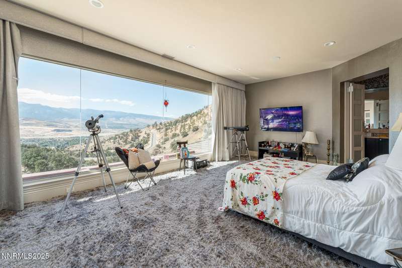 Perched on more than 11 acres with sweeping, unobstructed views, this 5,000+ sq. ft. residence is a canvas waiting to be reimagined. Designed with modern elegance and extensive upgrades, the home already offers incredible luxury features—and with some TLC, it has the potential to become one of Reno's most extraordinary dream properties. A dramatic Great Room welcomes you with floor-to-ceiling windows, flooding the space with natural light and framing jaw-dropping views. The gourmet kitchen is every chef's dream, featuring a center island, granite counters, induction cooktop, dual built-in ovens, steamer, warming drawer, two dishwashers, trash compactor, walk-in pantry, and Butler's Pantry. Perfect for entertaining, the formal Dining Room includes a built-in credenza, while a Theater Room and Bonus Room provide endless options for recreation and relaxation. The Primary Suite retreat spans its own wing, complete with a private family room, office, coffee station with mini-fridge, and a custom walk-in closet that even includes a laundry area. The spa-like bathroom boasts heated floors, dual vanities, a walk-in shower, and jetted tub. An elevator connects each level with ease. Outdoors, the full-length deck highlights an infinity-edge pool, BBQ hookup, and those breathtaking views. Two oversized 2-car garages sit below. Yes, this property requires some finishing touches and care—but for the buyer with vision, it's an unmatched opportunity to transform an already spectacular home into a world-class Reno estate.
