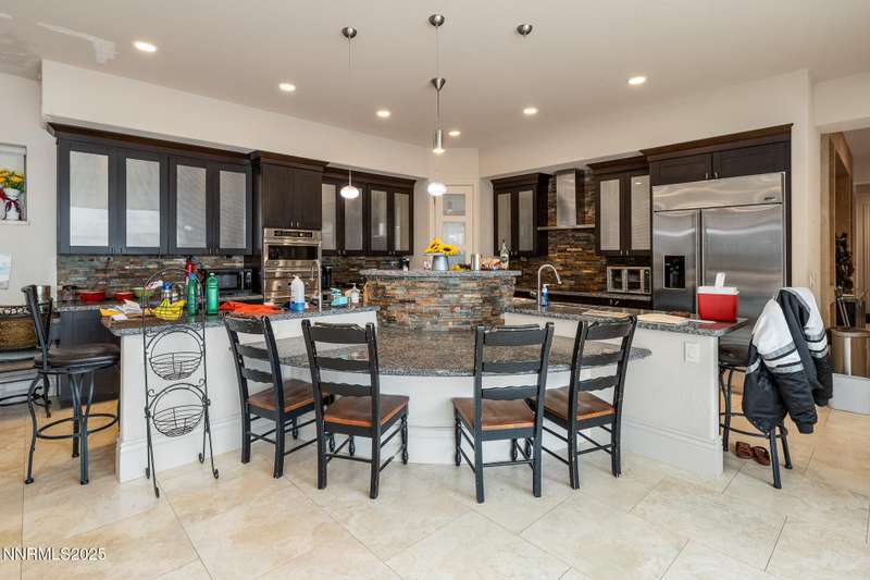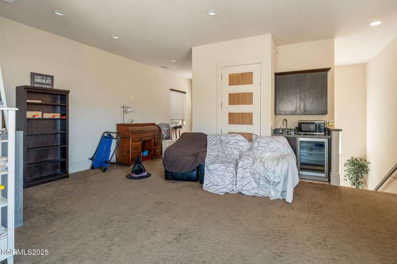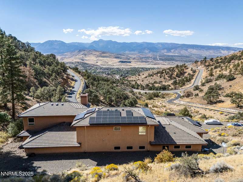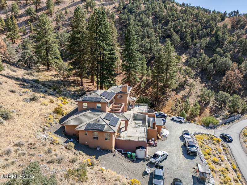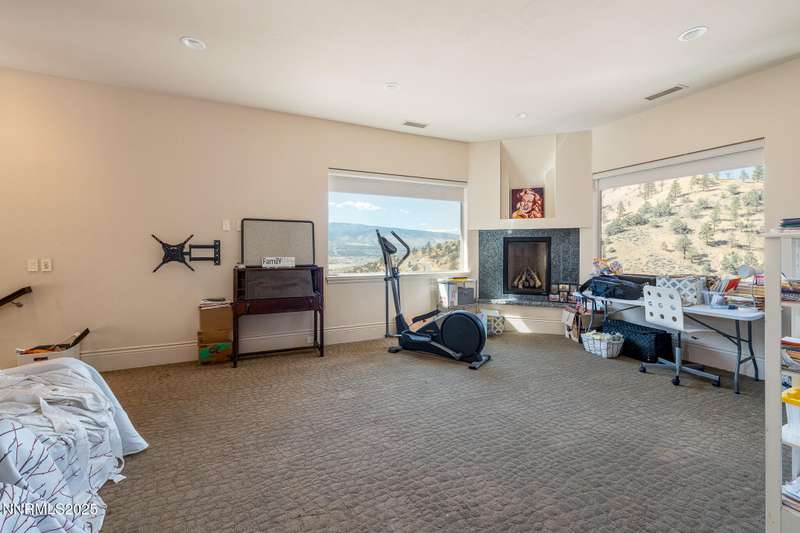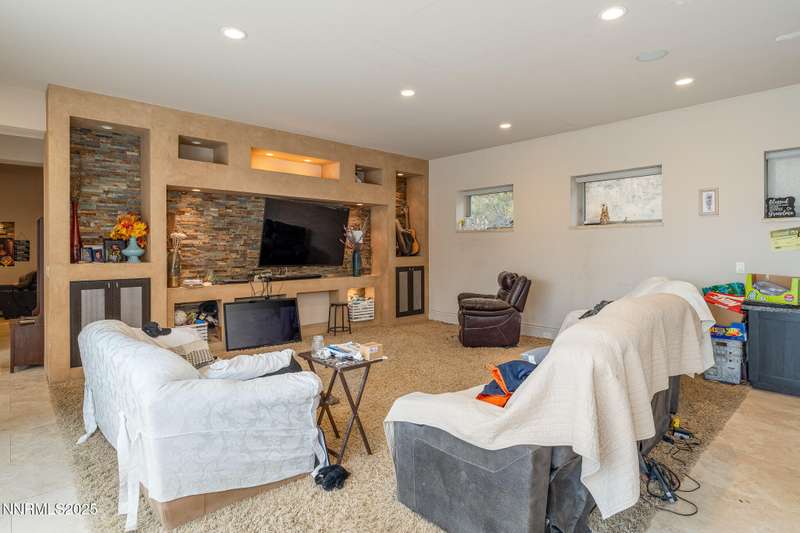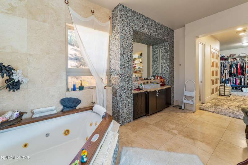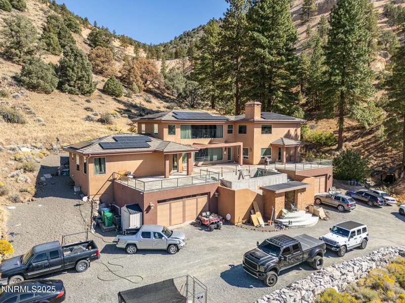 Perched on more than 11 acres with sweeping, unobstructed views, this 5,000+ sq. ft. residence is a canvas waiting to be reimagined. Designed with modern elegance and extensive upgrades, the home already offers incredible luxury features—and with some TLC, it has the potential to become one of Reno's most extraordinary dream properties. A dramatic Great Room welcomes you with floor-to-ceiling windows, flooding the space with natural light and framing jaw-dropping views. The gourmet kitchen is every chef's dream, featuring a center island, granite counters, induction cooktop, dual built-in ovens, steamer, warming drawer, two dishwashers, trash compactor, walk-in pantry, and Butler's Pantry. Perfect for entertaining, the formal Dining Room includes a built-in credenza, while a Theater Room and Bonus Room provide endless options for recreation and relaxation. The Primary Suite retreat spans its own wing, complete with a private family room, office, coffee station with mini-fridge, and a custom walk-in closet that even includes a laundry area. The spa-like bathroom boasts heated floors, dual vanities, a walk-in shower, and jetted tub. An elevator connects each level with ease. Outdoors, the full-length deck highlights an infinity-edge pool, BBQ hookup, and those breathtaking views. Two oversized 2-car garages sit below. Yes, this property requires some finishing touches and care—but for the buyer with vision, it's an unmatched opportunity to transform an already spectacular home into a world-class Reno estate.