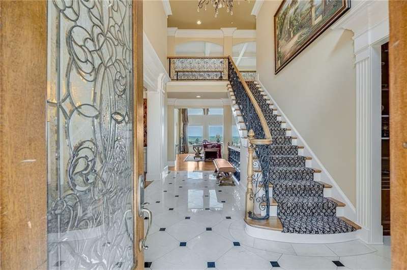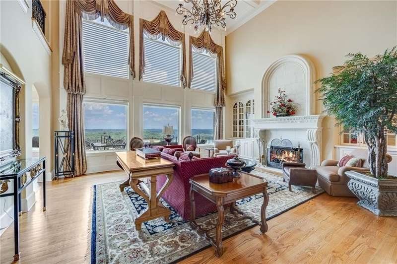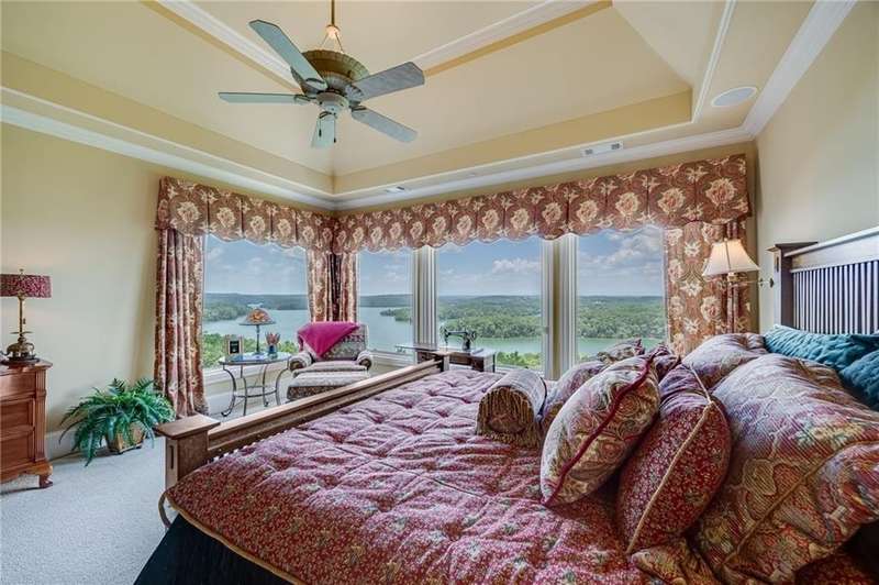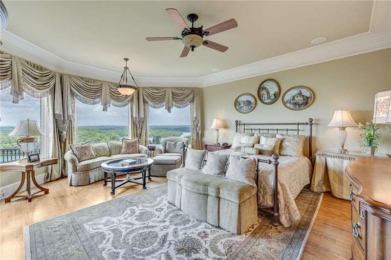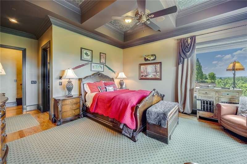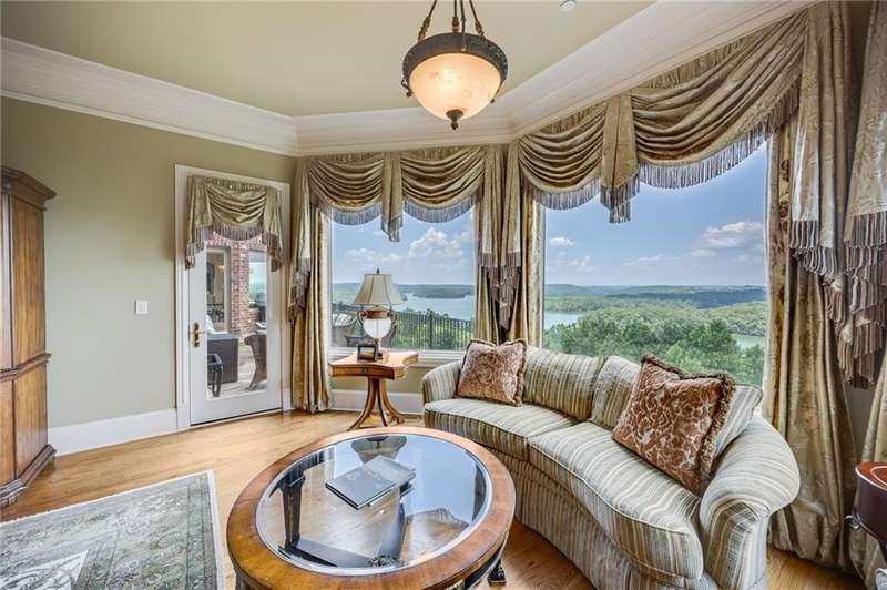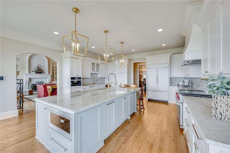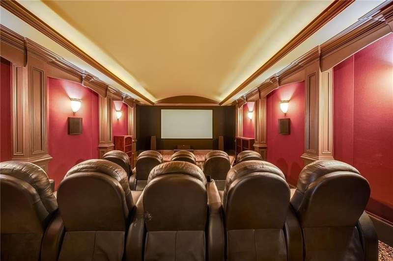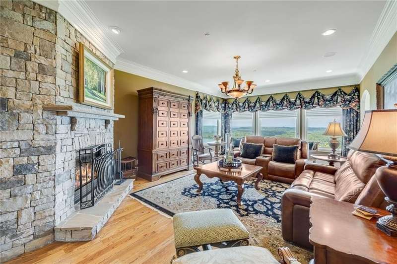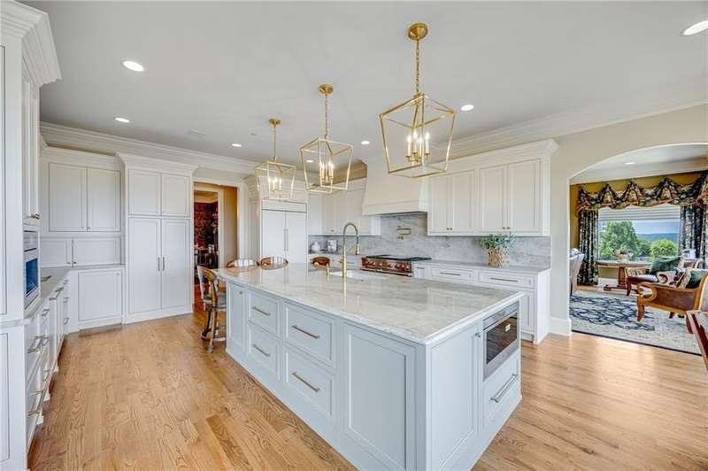 Harbour Point Yacht Club and Marina! A rare opportunity to own a truly exceptional Lake Lanier estate, offered fully furnished with elegant, high-end pieces and ideally positioned on one of the most desirable lots on the lake. Located within the prestigious, gated Harbour Point Yacht Club and Marina community, this custom-built home showcases sweeping sunset views over Lake Lanier and the Blue Ridge Mountains from three expansive verandas. Designed with both luxury and lifestyle in mind, this four-level estate features an elevator, two home offices, and a heated pool and spa. A deeded boat slip is included, offering seamless access to lakefront living. The main level welcomes you with a grand two-story foyer and living room, formal study, and refined dining room. A brand-new custom chef's kitchen is outfitted with a 60" Wolf range with double ovens, Sub-Zero refrigerator, Miele coffee station, and an oversized walk-in pantry. The cozy keeping room features a stone fireplace, and the spacious primary suite includes a spa-like bath and newly designed California Closets. The terrace level is an entertainer's dream, complete with a wine cellar and tasting room, full kitchen and bar, gathering room with fireplace, 10-seat home theater, steam shower, sauna, and private guest suite. The lower poolside level adds even more space for entertaining with a second full kitchen, additional ensuite, gathering room, game room, and fitness room-all opening to the pool and landscaped, fenced backyard. Additional features include a three-car garage plus a dedicated Harley garage, a newly resurfaced pool with cabana, and numerous recent upgrades including a Crestron Smart Home system, updated irrigation, fire sprinkler and security systems, and tankless hot water.