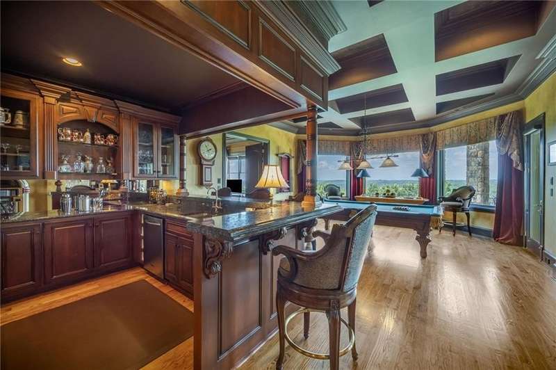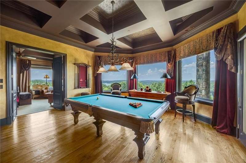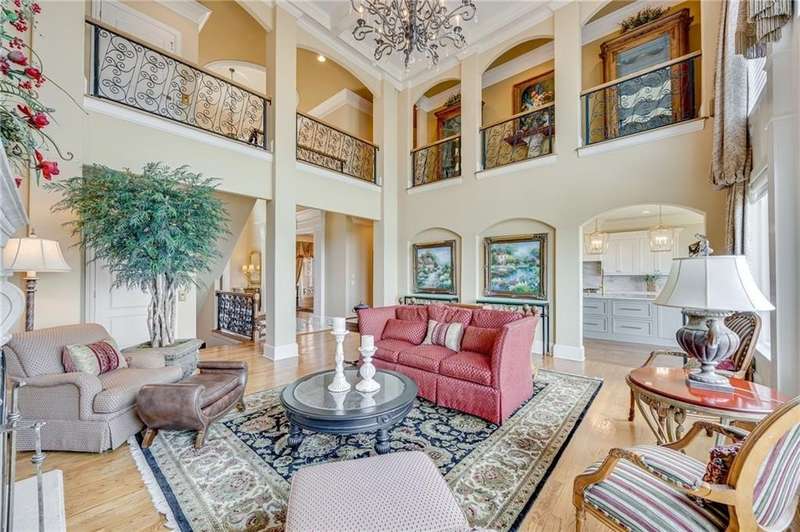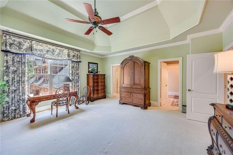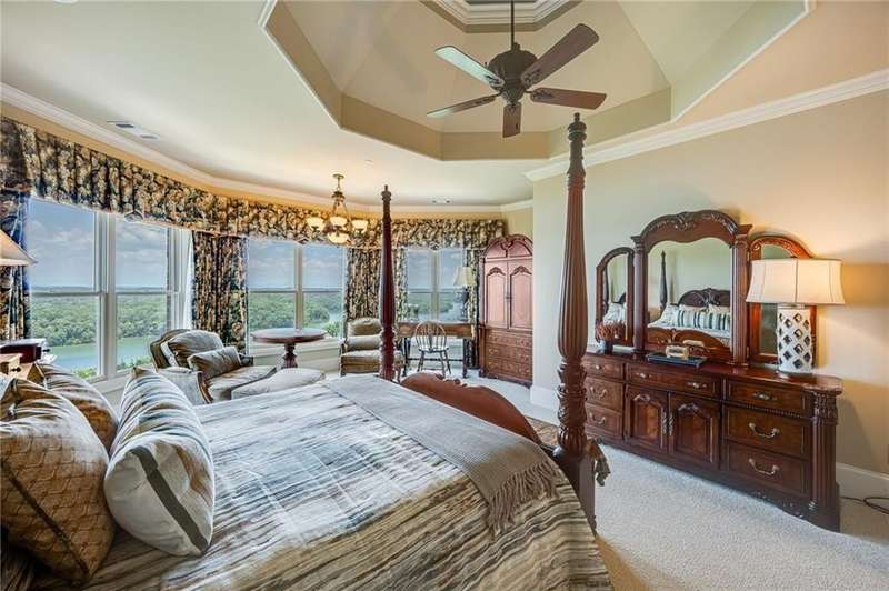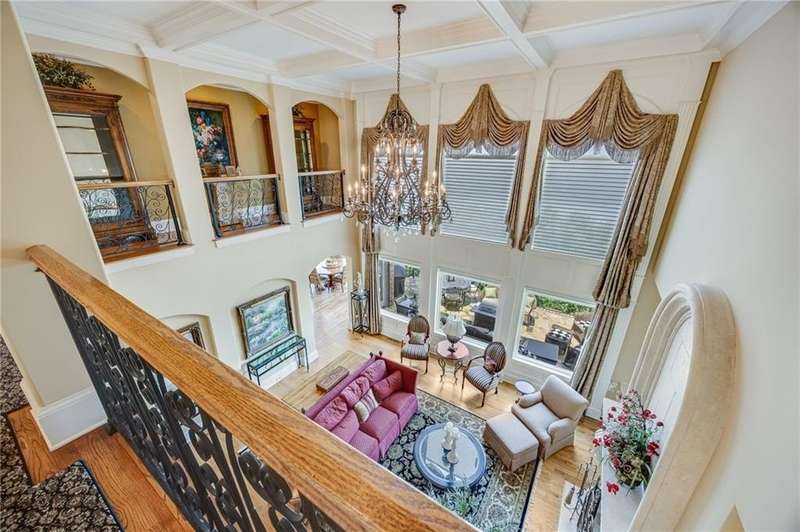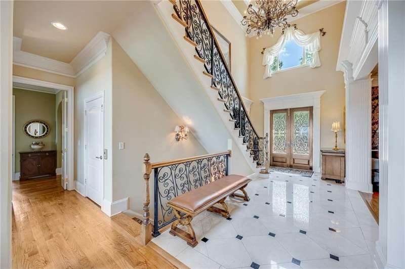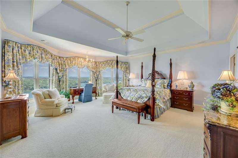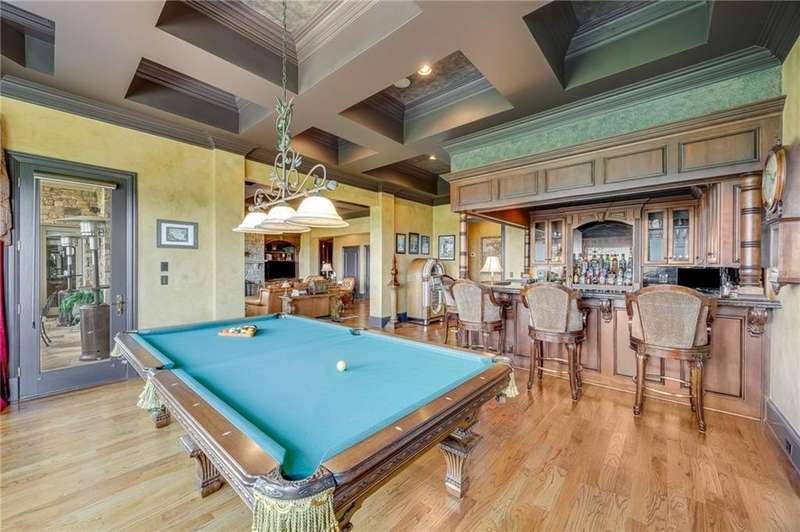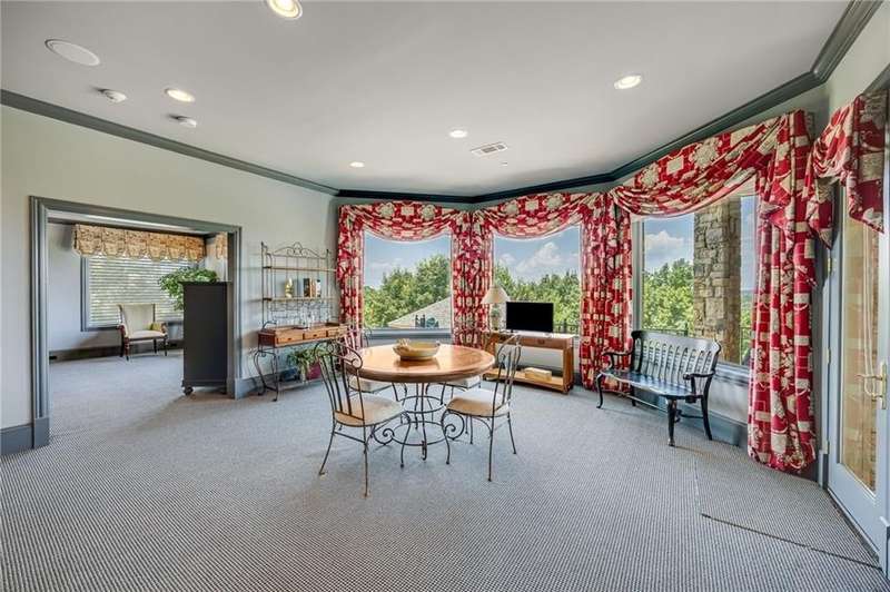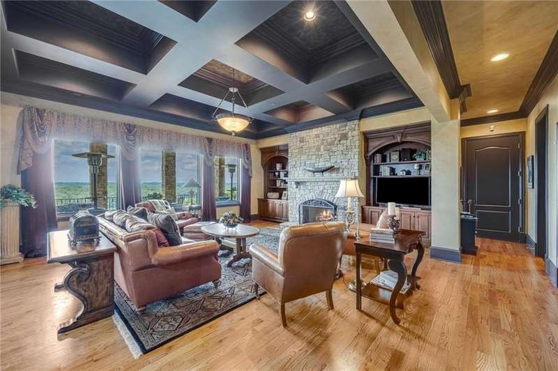Harbour Point Yacht Club and Marina! A rare opportunity to own a truly exceptional Lake Lanier estate, offered fully furnished with elegant, high-end pieces and ideally positioned on one of the most desirable lots on the lake. Located within the prestigious, gated Harbour Point Yacht Club and Marina community, this custom-built home showcases sweeping sunset views over Lake Lanier and the Blue Ridge Mountains from three expansive verandas. Designed with both luxury and lifestyle in mind, this four-level estate features an elevator, two home offices, and a heated pool and spa. A deeded boat slip is included, offering seamless access to lakefront living. The main level welcomes you with a grand two-story foyer and living room, formal study, and refined dining room. A brand-new custom chef's kitchen is outfitted with a 60" Wolf range with double ovens, Sub-Zero refrigerator, Miele coffee station, and an oversized walk-in pantry. The cozy keeping room features a stone fireplace, and the spacious primary suite includes a spa-like bath and newly designed California Closets. The terrace level is an entertainer's dream, complete with a wine cellar and tasting room, full kitchen and bar, gathering room with fireplace, 10-seat home theater, steam shower, sauna, and private guest suite. The lower poolside level adds even more space for entertaining with a second full kitchen, additional ensuite, gathering room, game room, and fitness room-all opening to the pool and landscaped, fenced backyard. Additional features include a three-car garage plus a dedicated Harley garage, a newly resurfaced pool with cabana, and numerous recent upgrades including a Crestron Smart Home system, updated irrigation, fire sprinkler and security systems, and tankless hot water.