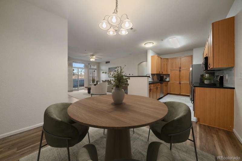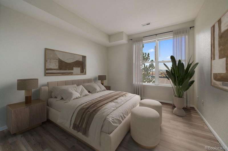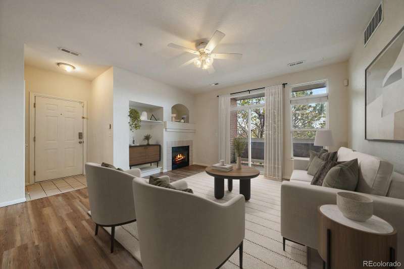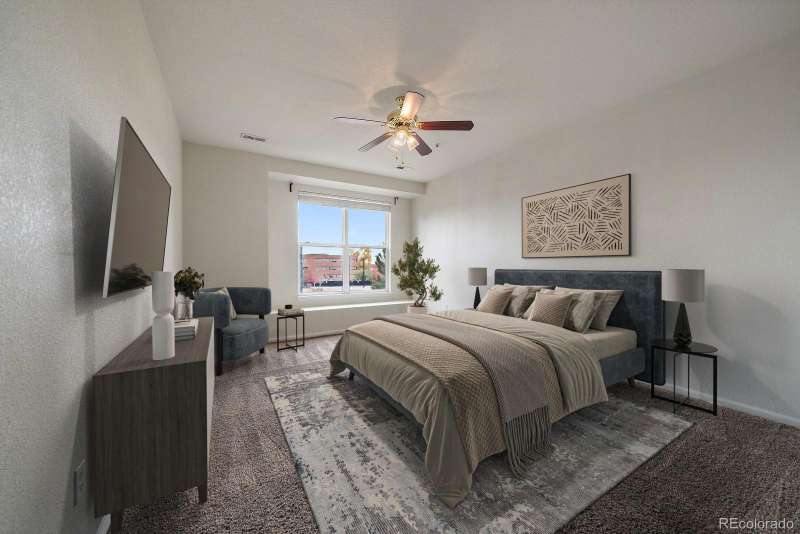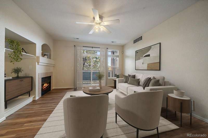 West facing balcony condo with 3-bed, 2-full baths and immediate walkable access to Light Rail right next door. Great open floor plan allows for a full kitchen with granite slab counter tops, full wall of cabinet storage and stainless steel appliances. From the kitchen you have a separate dining space and large living room with gas fireplace and opens out to a west facing balcony with large storage unit and a separate furnace/water heater room. Large primary bedroom has a full walk-in closet and an en-suite bath with double sinks, granite counters and large soaking tub. Well placed large laundry room with full sized side by side units (included) with plenty of extra room for built-in storage. Nice community amenities such as the community swimming pool, spa/hot tub and water park. Reserved parking with parking pass provided. Great access to Anshutz campus, I-225, DTC, DIA and the Highline Canal Trail which winds and travels throughout the city