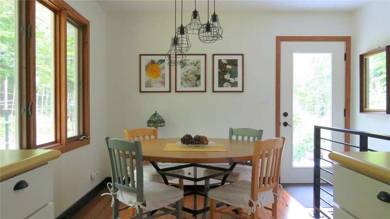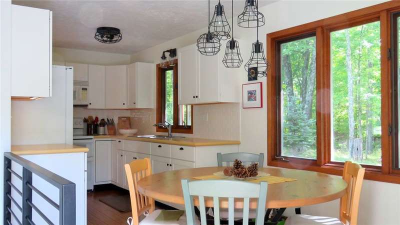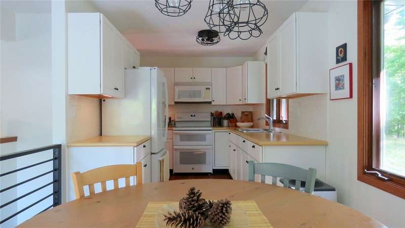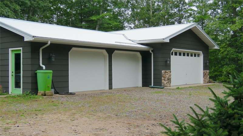 NEW PRICE! Charming 3BR/1BA home on 2.94 wooded acres just 15 minutes from Hayward. Tucked away on a private road with only six owners, this property offers exceptional peace and privacy. The lovingly maintained home features abundant natural light, a semi-open floor plan, and numerous updates: bamboo flooring, updated kitchen with newer cabinets, counters, subway tile, appliances, bath upgrades, and custom iron stair railing. A heavy-duty metal roof (2018) protects both home and oversized 4-car garage. The lower level provides flexible space with family room, laundry, workshop, storage, and a Pacific Energy woodstove alongside propane forced air. Outdoors, enjoy a spacious deck, bird-friendly landscaping, fruit trees, berries, and a 30x30 garden plot ready for next season's harvest. Nearby Grindstone and Spring Lakes offer public access for recreation and other water sports. Winding Williams Road is a beautiful setting for walking/biking. This move-in-ready home is a true gem and would be perfect for anyone looking for a lifestyle close to nature.