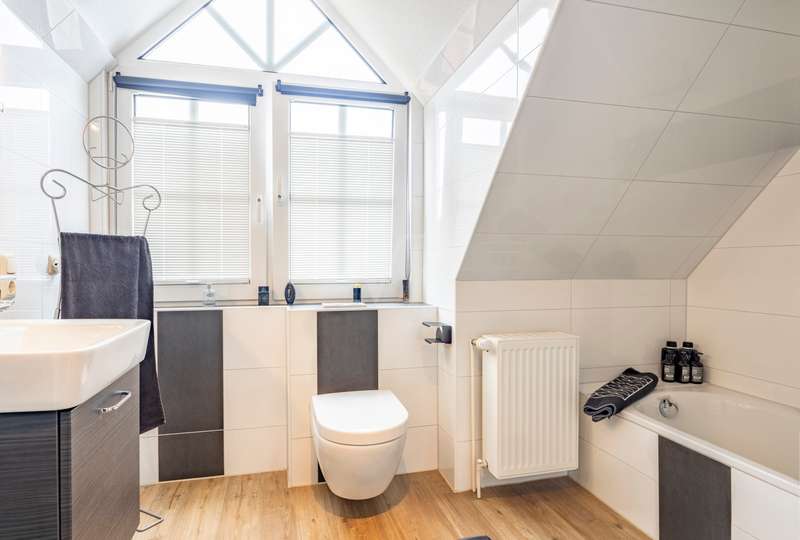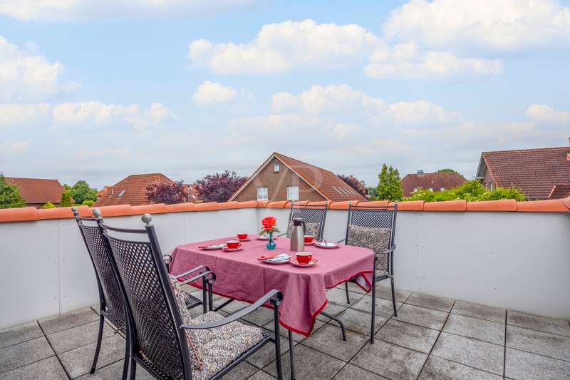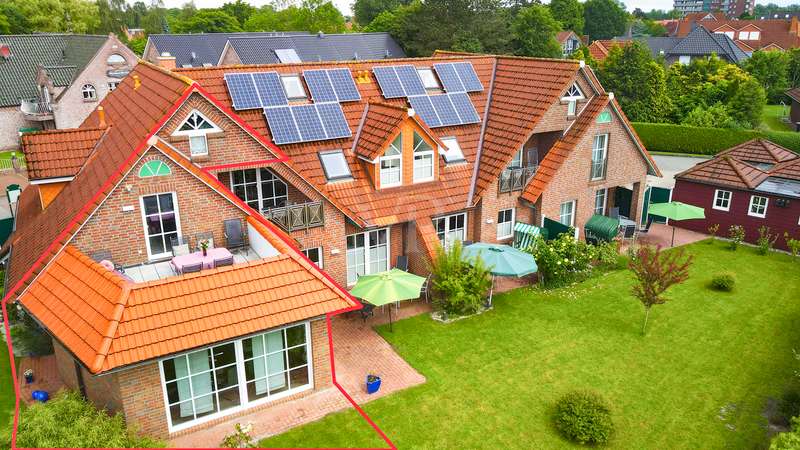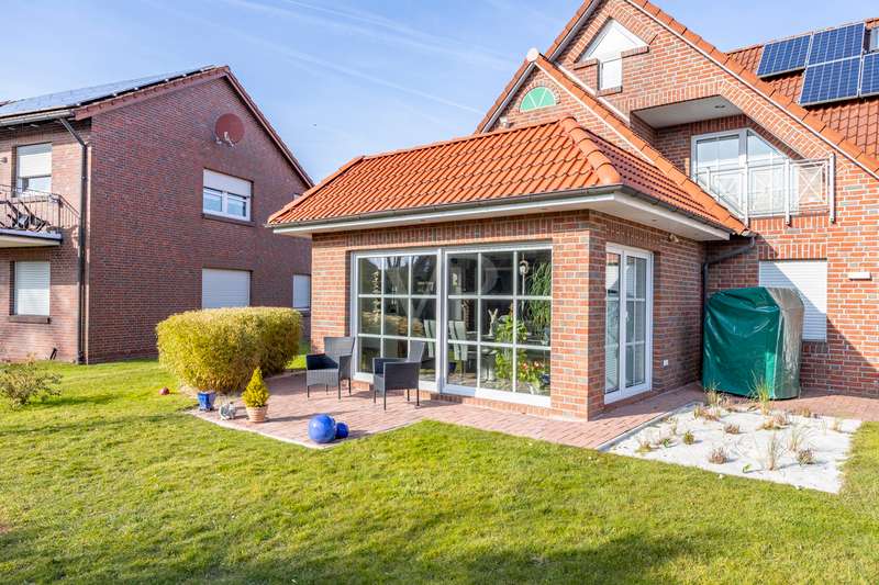 Welcome to your new dream apartment on the North Sea coast - officially approved as a vacation apartment and perfect for vacation rentals! This two-storey condominium in the style of a terraced end-terrace house with its own entrance extends over a generous approx. 133 m² of heated living and usable space and, with its 5 rooms, offers ideal conditions for vacation rentals or as a private second home. Thanks to the generous room layout, the light-flooded conservatory-style dining area (extension 2015) and the fantastic roof terrace, this property is a real gem for vacation guests or relaxing days by the sea. The open-plan living and dining area on the first floor with access to two separate garden terraces invites you to spend relaxing hours surrounded by greenery. A guest WC on this level also provides additional comfort. Another highlight on the upper floor of the corner house is a sunny roof terrace - the perfect place to end the day with a beautiful sunset. There are three spacious bedrooms and a shower and bath on the top floor - ideal for larger groups or families. The loft can be used flexibly as an additional sleeping area, home office or storage space. The plot area is 364 m² (according to the co-ownership share - MEA). The house rent is currently €253.10, of which €113.10 is allocated to the maintenance reserve. The conversion to a vacation apartment has already been officially approved: The municipality of Wangerland and the district of Friesland have approved the requested change of use. This means that nothing stands in the way of future vacation rentals. The apartment is currently still being used as a primary residence. The current owners will move out in August 2025 at the latest. It is possible to keep furnishings for the vacation rental by arrangement. This apartment is ideal for vacation rentals, as there are few comparable units that can accommodate larger groups. Especially in this sought-after location on the North Sea coast, such properties are in high demand and offer attractive rental potential with high occupancy rates. The property not only impresses with its room layout, but also with its well thought-out infrastructure. A parking space and storage rooms in the outbuilding offer practical storage space. The photovoltaic system with storage, which significantly reduces electricity consumption, belongs to the condominium, which consists of six residential units, and thus helps to reduce ancillary costs for all owners. Von Poll Immobilienverwaltung takes care of the residential complex and ensures professional management. The apartment can be handed over in August 2025 at the latest. The purchase price is €399,000.00, which includes some of the furniture. A 360° tour is also available. Take advantage of this opportunity to acquire an exclusive vacation property with high demand. We would be happy to show you this attractive apartment in a personal viewing appointment.