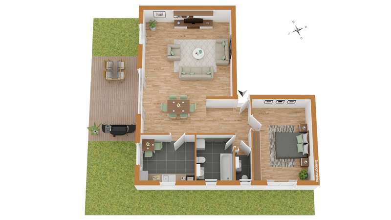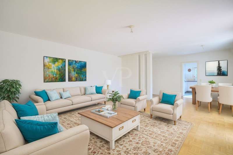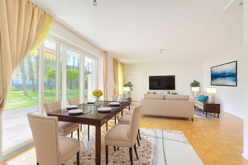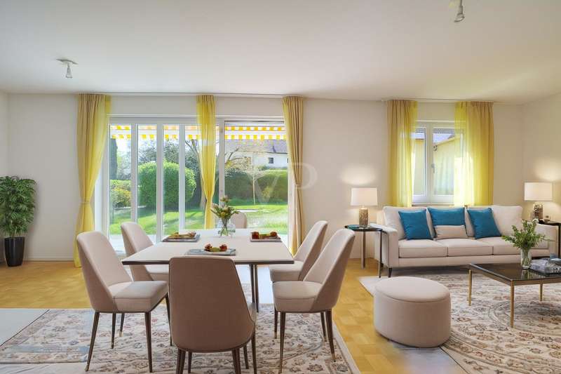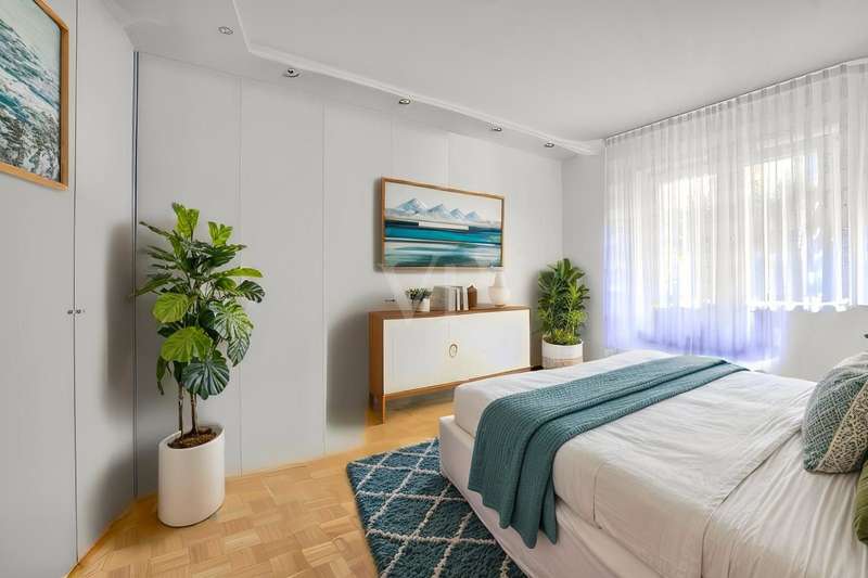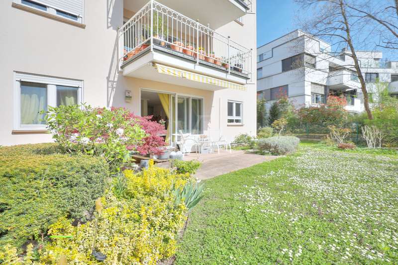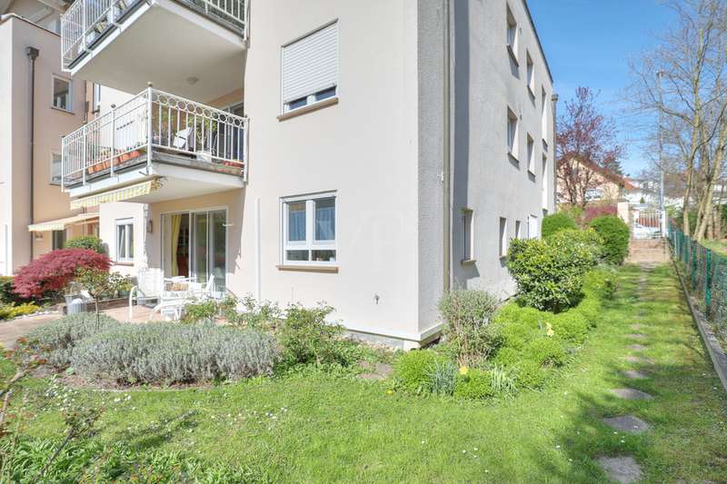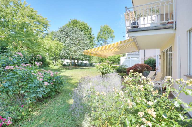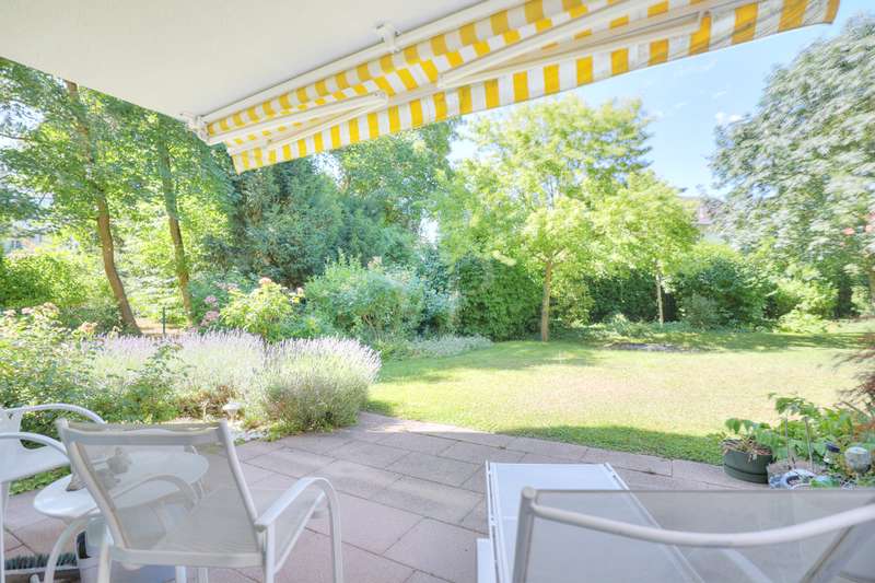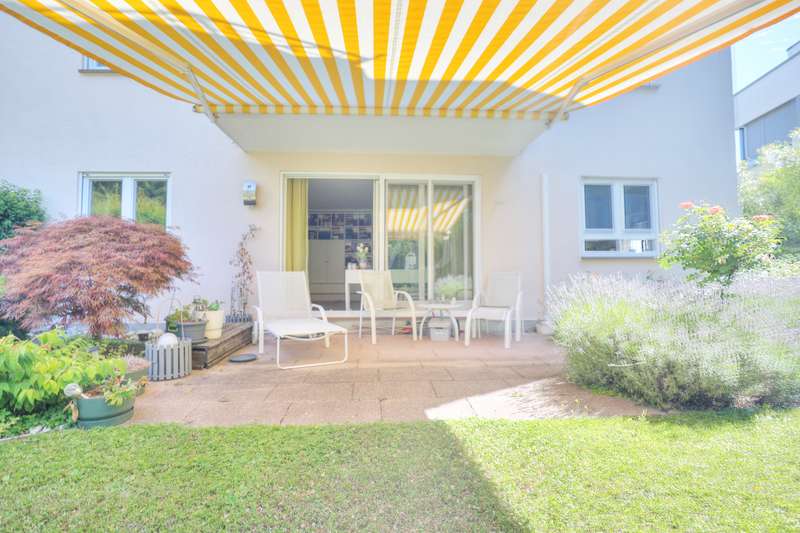 This well-kept terrace apartment offers a living space of approx. 82 m² and impresses with its well thought-out room layout and solid furnishings. Built in 1992, the building has been continuously maintained. The apartment is perfect for singles or couples looking for a comfortable and contemporary home. The apartment has a total of two rooms, including a spacious bedroom that offers plenty of storage space thanks to built-in wardrobes. The living area is open plan and features high-quality real wood parquet flooring, which creates a warm and inviting atmosphere. From the living area, you have direct access to the south-west-facing terrace, which is fitted with an awning and offers additional outdoor living space on sunny days. The fitted kitchen is functional and well-equipped. The daylight bathroom is equipped with a shower and a bathtub, offering flexibility of use. For added convenience, there is a separate WC, which makes the morning routine easier. A special highlight is the air conditioning system retrofitted in 2023, which ensures pleasant temperatures even on hot days. This modernization complements the insect screens installed on all windows in 2022, which allow undisturbed ventilation. The heating system was last modernized in 2015 and provides warmth in the cold months. The south-facing garden belonging to the building invites you to spend relaxing hours outdoors. An underground parking space is available for you to park your vehicle safely and conveniently. Additional rooms such as a bicycle storage room, a laundry room and, importantly, a cellar add to the convenience. In summary, this terrace apartment offers an ideal combination of practical room layout and good fittings. The property in a preferred location combines the advantages of pleasant living with the amenities of a modern living environment. Arrange a viewing today to experience the benefits of this special property for yourself.
