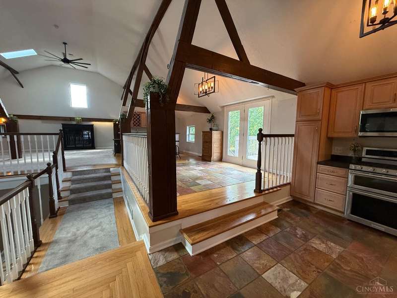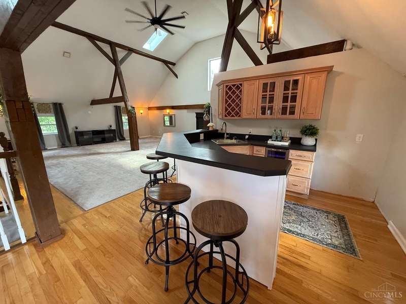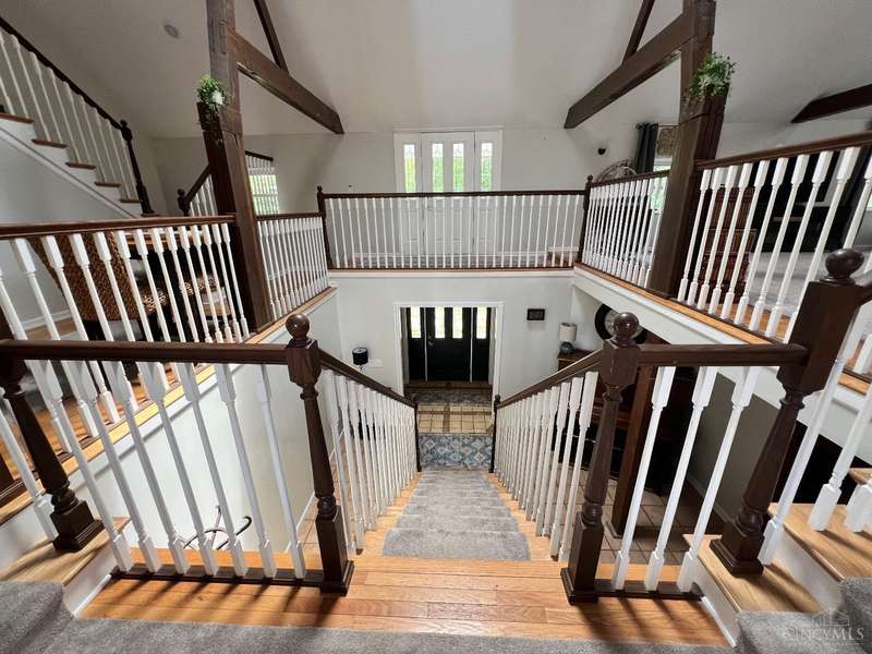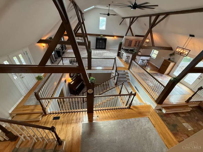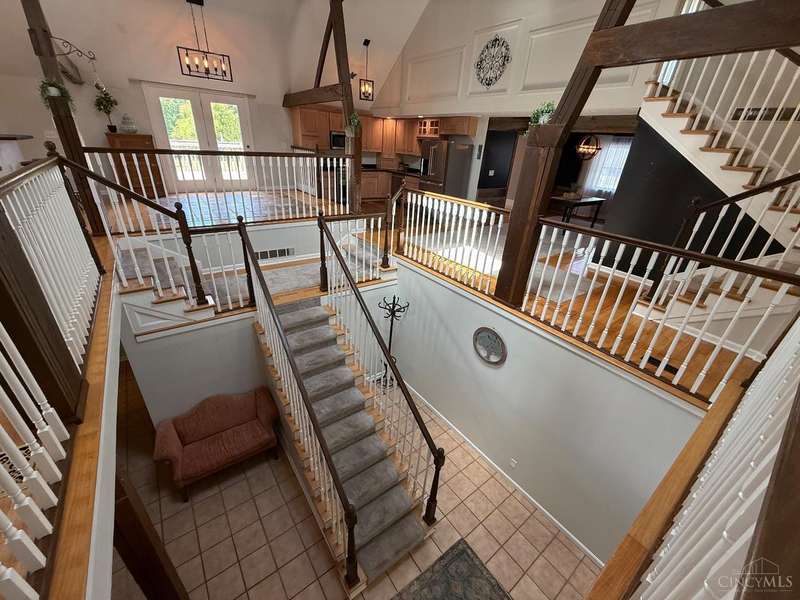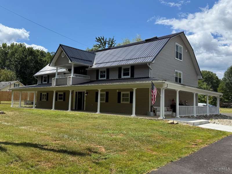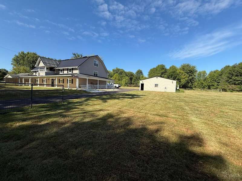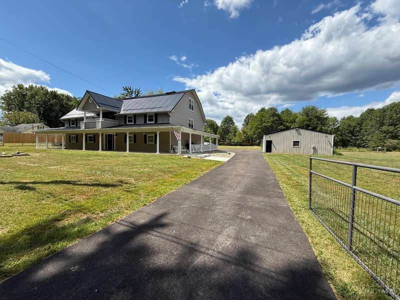 Stunning 5100+ sf Unique Barn home on 3 beautiful acres! 16 ft cathedral ceilings w/skylights & open floor plan, ceiling fans, exposed beams, huge first floor 34x18x12 master suite w/walkout, 2nd master w/adjoining bath, 3rd floor loft BR w/full bath w/jacuzzi tub, 4th BR 22x17, wet bar w/wine fridge, morning room, office off dining room that could be used as 5th BR, covered balcony, 2nd floor laundry w/4th full bath, deck overlooking large stocked pond, fenced in pasture w/small barn for goats or chickens, pole barn garage w/concrete floor and electric. Amazing wrap around porch! New metal roof 2019, brand new siding 2024, new HVAC 2025. New black topped driveway with tons of parking. This home is one of a kind! Amazing place to entertain. This home truly is a must see. Sold as-is and agent owned. Must have a pre-approval to schedule a showing.
