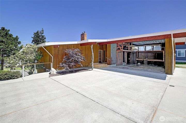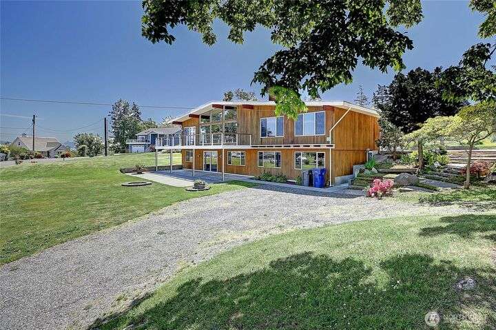 Mid-Century Modern Gem with Stunning Views! First time on the market, this classic mid-century home showcases timeless architectural design with floor-to-ceiling windows, flooding the interior with natural light and framing beautiful views of Mt. Baker and the surrounding tidelands. Brimming with original charm and ready for your modern touches! Offering Full kitchens, living spaces, and laundry on both levels—perfect for multigenerational living or guests. Situated on just over half an acre, with ample parking and a pull-through driveway for an RV, boat, or more. Nestled on a quiet dead-end street on the north end of the island, just minutes to restaurants, beaches & State Parks. Come enjoy Island Life with no ferry!