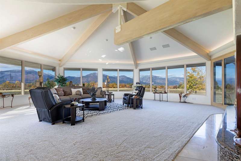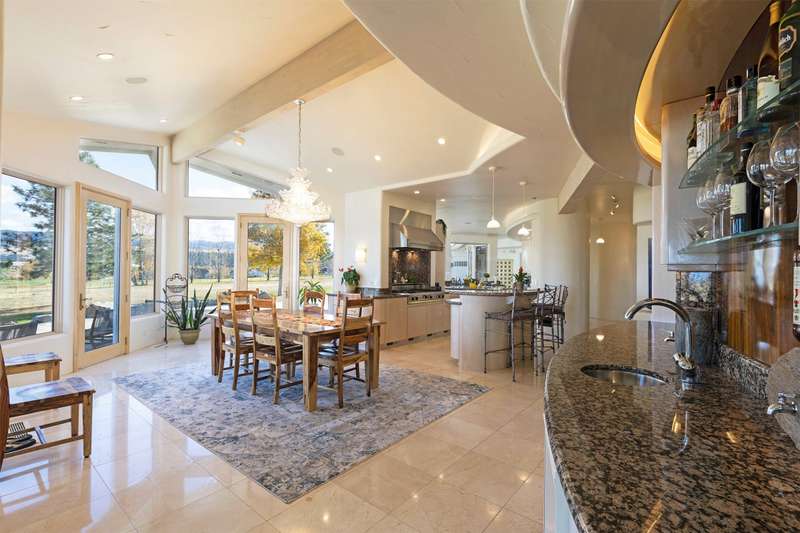 SELLER SAYS SELL!! Stunning panoramic mountain views & beautiful custom 5-bedroom home built with thoughtful craftsmanship, quality & well cared for living space on 16/-acres, near the exclusive Stock Farm Golf & Sporting Club & Public Course. The house features massive exposed beams, granite & marble, and floor-to-ceiling windows with 360-degree views. The spacious two great rooms offer custom fireplaces showcasing an exceptional atmosphere. The incredible, open floor plan provides plenty of room to comfortably entertain large gatherings or relax in front of the cozy fireplaces, enjoying the peaceful quiet and viewing the various types of wildlife, including deer, geese, ducks, and more. Private paradise and the gorgeous, enchanting Bitterroot and Sapphire mountain views. Watch the Bitterroot Valley weather dance through the massive canyons, always displaying a magnificent show. 5-car heated garage and hobby/garden room. Privacy, enchanting views, close to town! See Video Tour. Seller says priced under appraisal!! 6700 sq ft, 4 Fireplaces. Irrigation is set -up from an irrigation well. NEW UPDATES TO THE HOME: *Lighting System. Voice command or app-controlled. LED bulbs throughout. *Energy-efficient blinds with remote-controlled operation in the master bedroom and living rooms. *Updated bathroom fixtures in master bathroom *New exterior paint on entire home ~ 2023 *Driveway black top oiled ~ 2024 *Energy efficient commercial water heater and recirculating pump ~ 2024 *Energy efficient Geothermal heating/cooling system ~ 2025 *Complete remodel on upstairs guest bathroom ~ 2024 *Added upstairs laundry room ~ 2024 *New carpet in guest bedrooms ~ 2023 *2 garage door openers ~ 2024 *New well irrigation system designed to optimize water distribution, enhance efficiency. User friendly programmable controller~ 2024 *Newly established grass pasture ~2024 In the Montana valley where Yellowstone is filmed. Welcome home to your exquisitely built custom home. *End of the road privacy on 16+ acres *1200 ft of golf course frontage *360 degree views *Incredible architecture *Marble flooring *Granite countertops *Fully tiled showers with glass doors *5 car heated garage *2 large wood burning fireplaces *2 Gas fireplaces *Work out room with large sauna and complete shower, vanity sink and toilet area *2 kitchen pantries *Large wet bar perfect for entertaining *Home audio system throughout house, outdoor patios and garage area *Large patio areas for entertaining *Swarovski crystal chandeliers *Built in dressers drawers in master closets, his and hers. Sit down vanity in her closet This home has well appointed walls, lighting and space to showcase art & sculptures. Must see to appreciate the beautifully crafted and carefully engineered staircase. 5 Bedrooms and 5 bathrooms. The home offers spacious bedroom/office space with fireplace on main level, a luxurious sauna, & workout room. Upper level private primary bedroom suite with fireplace & office, two private designer closets with built in wardrobe care station. This elegant home offers a large, airy gourmet kitchen with a chef's cooking and prep station. The stunning custom bar is exceptionally crafted for entertaining. Two lovely living rooms offer fabulous, stunning fireplaces. Formal dining room and kitchen seating areas. The property features numerous outdoor spaces, including an attractive patio ideal for entertaining. Appliances: Jenn Aire. Chef Station has a Viking gas cook top, griddle and grill. The home includes a new lighting & maintenance system that can be maintained on-site or remotely. Private end of the road property on 15+ acres. Horses & cows are allowed.
