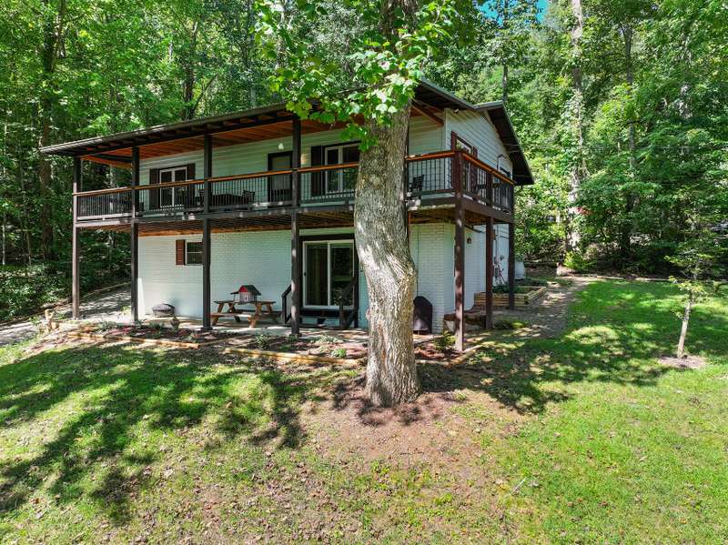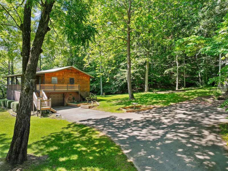 New fiber optic fiber!!Nestled in the serene Potts Branch community of Franklin, NC, this charming two-bedroom, two-bathroom,w/bonus rm home sits on a lush, park-like lot with a gentle, slow-flowing stream, offering tranquility and natural beauty. Spanning 1,800 finished square feet, the home boasts an inviting open floor plan, seamlesslyblending the spacious living, dining, and kitchen areas, perfect for gatherings or quiet evenings. Thefamily room provides additional space for relaxation or entertainment. A standout feature is the expansive8'x36' wraparound covered deck( w/storage underneath ), ideal for enjoying the peaceful surroundings and scenic views. The home includes a single-car garage conveniently located in the basement, accessible via a paved driveway(will park many cars). A private well and septic system ensure self-sufficiency, while a durable metal roof offers longevity and low maintenance. An outbuilding provides ample storage for tools or outdoor equipment.