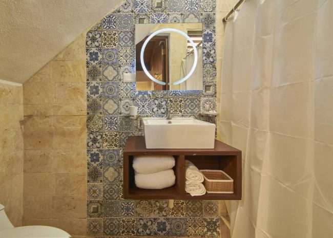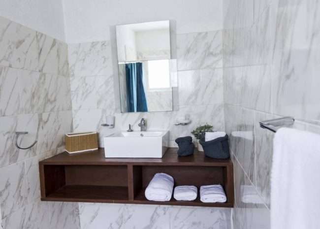 In the renovation of this loft style house in the Colonial Zone in Santo Domingo, the owner used modern building techniques and employed a range of materials. Steel was added for structural strength. Semi-suspended stairs and wood railings complement wood doors and tile bathroom flooring. Coral stone floors complete the picture.
