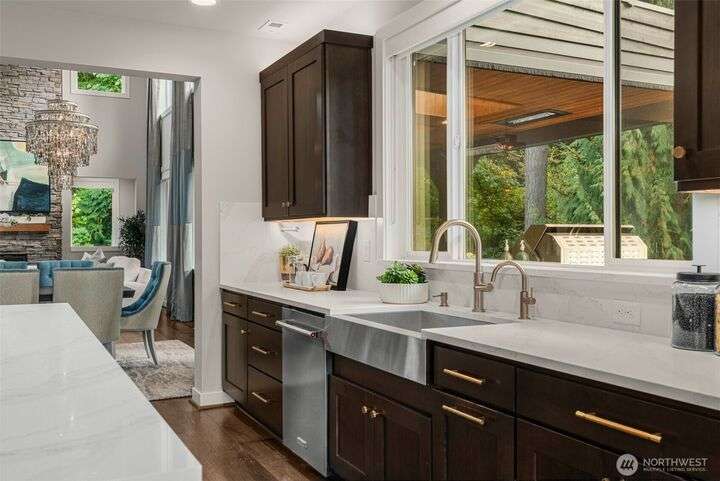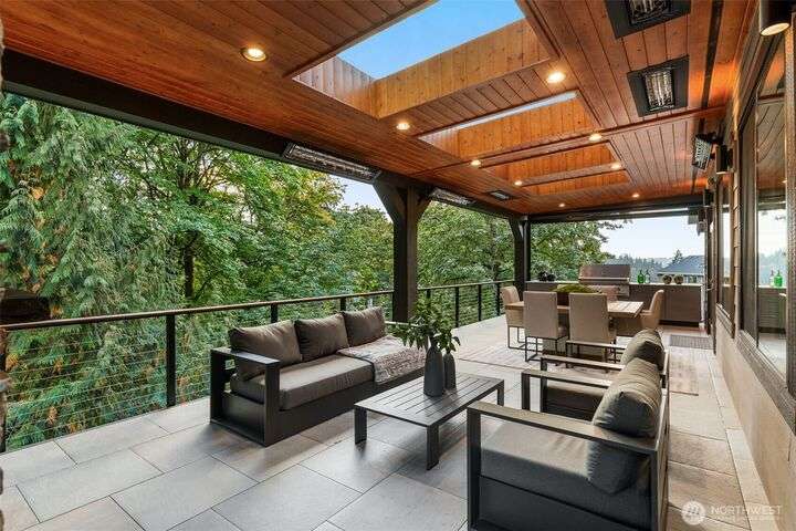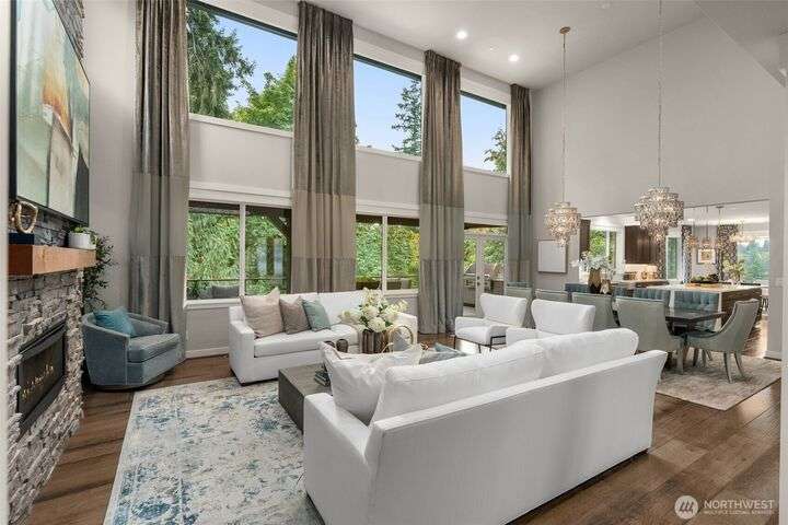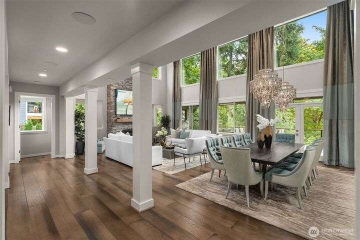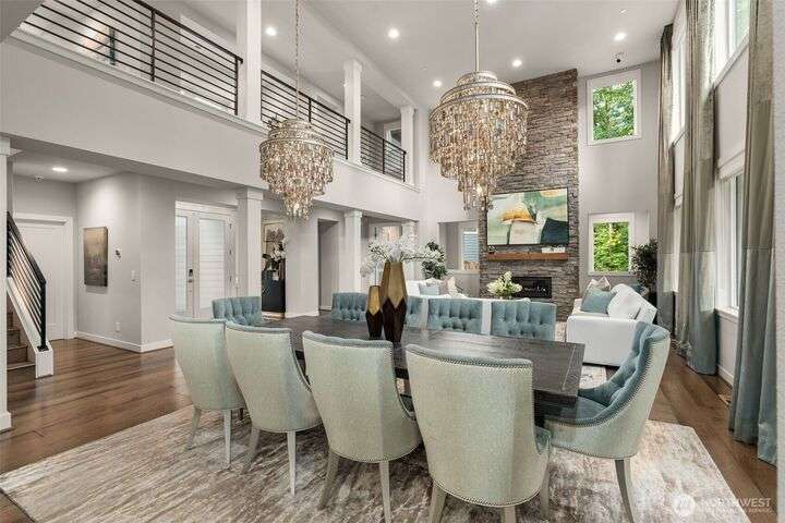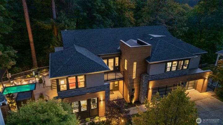Welcome to Pipers Glen, one of Bothell's most coveted neighborhoods. This custom home offers 5050 sq ft of 'wow factor' living space with top of the line updates. The primary bedroom is a private sanctuary sitting atop the tree line, while the bathroom is adorned with crystal hardware, heated floors, backlit white onyx counters, blue marble walls, and a standalone tub. The backyard exceeds all expectations and can can be enjoyed year-round with a heated ModPool, 10 person hot tub, sauna, cold plunge, and a pergola by Struxure. Generac generator with 1mo cap. Custom lighting, automatic blinds, and built in speakers throughout. Plus Control 4 home automation. Where coziness and opulence merge to offer an unparalleled space for entertaining.