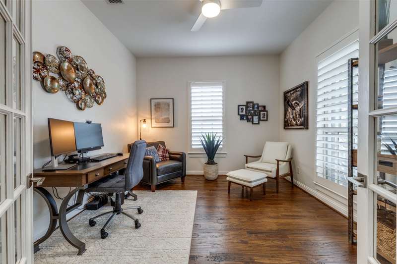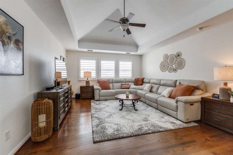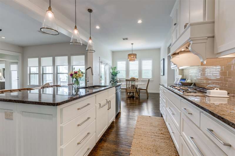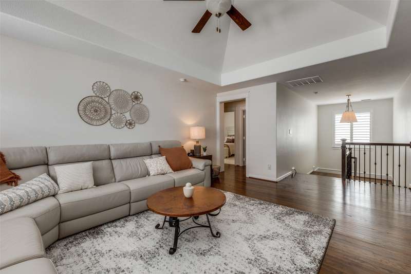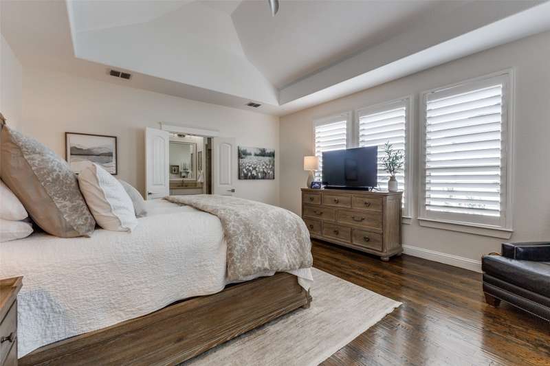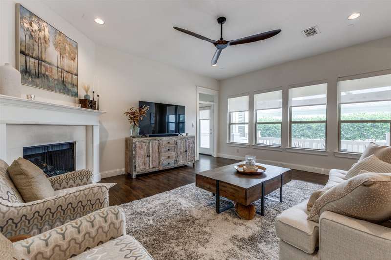 Nestled in Tucker Hill, a Charleston-inspired enclave in McKinney, Texas, this impeccable Southern Colonial home blends timeless elegance with contemporary sophistication truly where Southern charm meets modern living. Lovingly maintained, it boasts a serene soft white palette, enhancing its airy allure. Thoughtfully renovated, this 4-bedroom, 3-bath residence features complete automation, including interior mood lighting, thermostat controls, sprinkler system, and garage door controls for effortless living. Enjoy hardwood floors both upstairs and down, custom cabinetry, updated lighting, self-closing drawers, plantation shutters and remote controlled electric shades. The open-concept kitchen with an eat-in island flows into the living area, perfect for gatherings. The downstairs Primary Suite and additional first-floor bedroom on provide convenience, while upstairs, two spacious bedrooms, a comfortable living area, and oversized media-flex room await. The garage has a workshop area which could be used to accommodate a larger vehicle. Set in the esteemed Prosper ISD with Walnut Grove High School, Tucker Hill features tree-lined streets and historic charm. Residents enjoy a resort-style pool, a 4,000-sq-ft Residents Club, a fitness center, parks, playgrounds, a dog park, and trails leading to Founders Squares iconic fountain. Harvard Parks dining and services, like Petra Bistro, enrich the live-work-play lifestyle. With a vibrant events calendar, this front-porch community fosters connection. Pristine and elegant, this home offers a refined Southern lifestyle.