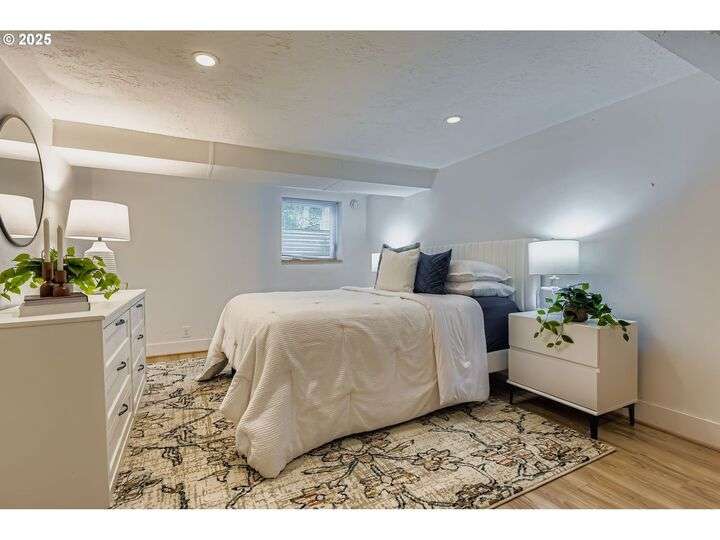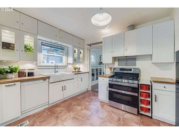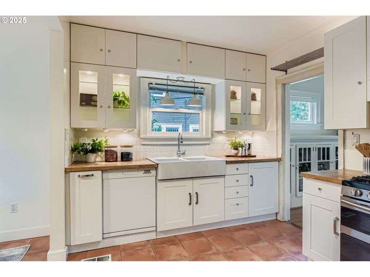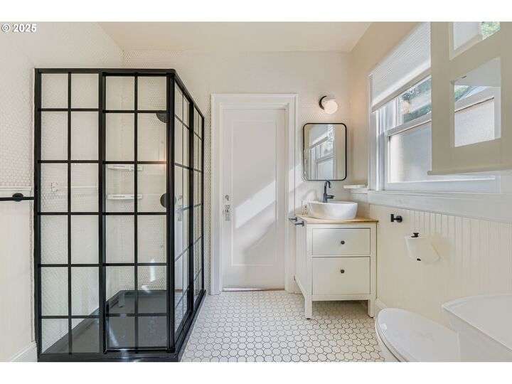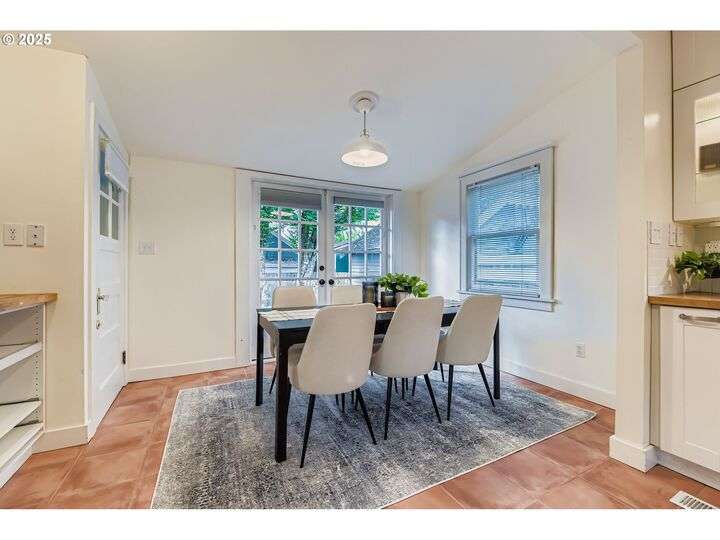 Tucked into one of Northeast Portland’s most picturesque neighborhoods, this 1925 Bungalow captures the best of Portland charm and community. The tree-lined streets, top-rated schools, and proximity to local favorite hotspots make everyday living feel effortlessly connected.Inside, the home is warm and inviting, with sun-filled rooms, original hardwood floors, and a classic brick fireplace surrounded by built-ins. The kitchen blends modern functionality with vintage character, featuring butcher-block counters, open shelving, and a farmhouse sink that anchors the space. A cheerful dining nook opens through French doors to a private courtyard—perfect for morning coffee or intimate outdoor dinners.Each of the three bedrooms is thoughtfully placed on its own level, offering comfort and separation of space. The upper floor provides a cozy hideaway under vaulted ceilings, while the main level bedroom sits adjacent to a tastefully remodeled bath with designer tile and black-framed shower glass. The finished lower level includes a spacious bedroom, sitting area, kitchenette, and full bath—ideal for guests, multi-generational living, or creative use.A detached studio with vaulted ceilings and skylights completes the picture, offering endless flexibility for a home office, art space, or gym. Just minutes to Beaumont Village, Grant Park, and local schools, this home combines timeless design with the heart of Portland’s beloved eastside lifestyle.