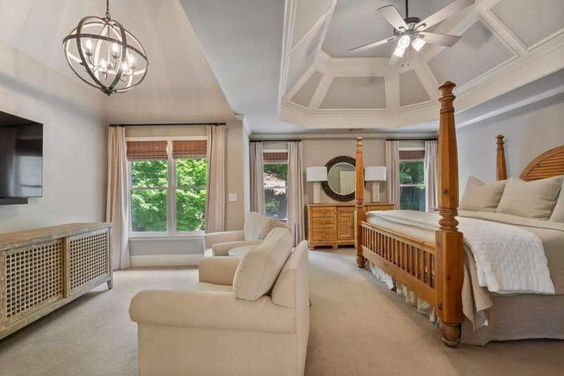 Experience refined living in this stunning John Willis-built home, perfectly nestled in the highly sought-after Three Chimneys Farm community in South Forsyth. This expansive residence combines elegant design, luxurious upgrades, and thoughtfully crafted indoor and outdoor spaces all in an unbeatable location with top-tier amenities.As you enter the home, you are welcomed by a breathtaking two-story foyer and an open floor plan that exudes sophistication. On your left is a formal dining room with custom trim and designer finishes; to your right, a spacious executive office. The heart of the home is the light-filled great room with soaring coffered ceilings, a dramatic stone fireplace, floor-to-ceiling windows, and built-in surround sound.The chef's kitchen is a dream: updated with sleek stone countertops, a gas range, double ovens, stainless steel appliances, a wine cooler, and a spacious island which acts as a central gathering place. A cozy informal dining area and custom coffee bar make this space ideal for both mornings and evening entertaining. Also on the main level is a beautifully appointed guest suite with a remodeled full bath perfect for visitors.Upstairs, you'll find five more spacious bedrooms, including the luxurious primary suite with vaulted ceilings, a private sitting area, and a newly renovated spa-like bath featuring a soaking tub, dual vanities, a frameless glass shower, and an oversized custom closet. A versatile bonus room offers space for a media room, playroom, or sixth bedroom.Head to the finished terrace level to find the ultimate entertainment zone. Enjoy a full custom bar with built-in refrigeration and stone finishes, a billiards/game area, and a home theater with wood-accented coffered ceilings and surround sound. There's also a full home gym with rubber flooring and a walk-in shower.Out back, enjoy your private outdoor oasis with a built-in gas grill, outdoor fireplace, and professionally landscaped yard ideal for year-round gatherings.Three Chimneys Farm offers resort-style amenities: a junior Olympic pool, water slide, tennis and pickleball courts, volleyball, basketball, and miles of nature trails. This home truly has it all luxury, location, and lifestyle.