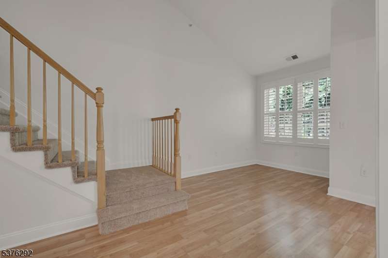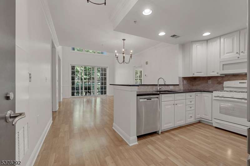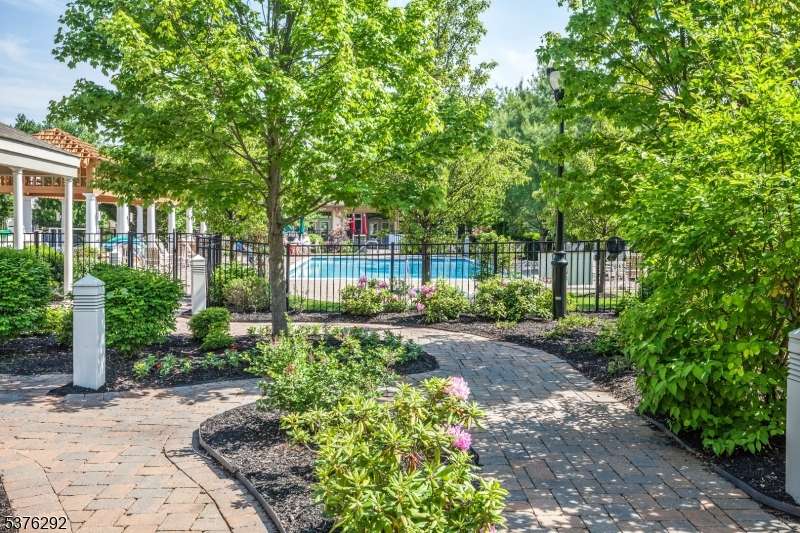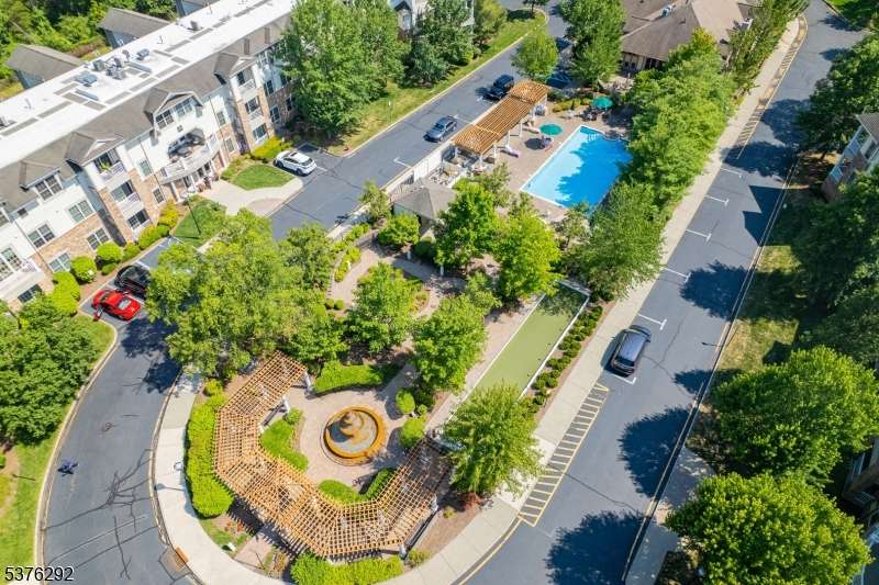 Welcome to your dream home in Four Season community! This rarely available den model impresses with a bright, open floor plan, soaring cathedral ceilings, and a dramatic wall of windows that flood the space with natural light. Freshly painted interior and brand-new carpet give the home a modern, move-in ready feel. The spacious primary bedroom is conveniently located on the main floor with a large ensuite bathroom and walk-in closet, while a second, private upstairs suite offers flexibility as a guest room, office, den, or loft. Featuring three full bathrooms and an in-unit laundry on the main level.Start your day with a peaceful cup of coffee or unwind in the evening with a cocktail on your covered porch, where serene views of your private nature haven where the occasional deer create the perfect backdrop. Active community amenities truly elevate your lifestyle! Enjoy a gorgeous clubhouse with a cozy bar/lounge and inviting fireplace, card room, gym, library, and pool table; sparkling outdoor pool, bocce court, patio, serene zen flower garden, and a beautifully lit fountain. Includes a designated garage space #42 and elevator access directly to your floor, plus extra storage in the garage for added convenience. Perfectly situated near highways, airport, trains, Bridgewater Mall and fantastic restaurants. Experience turn-key luxury and effortless living in this vibrant, friendly Four Season community where every day feels like a getaway.