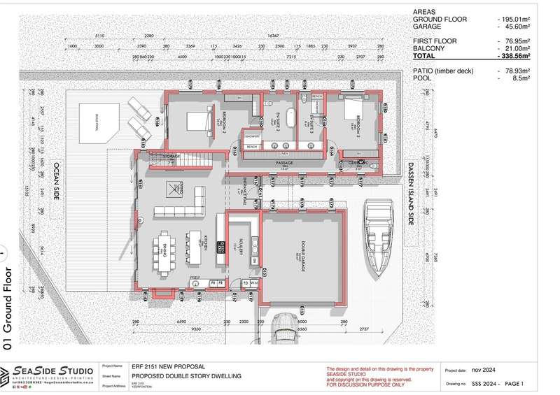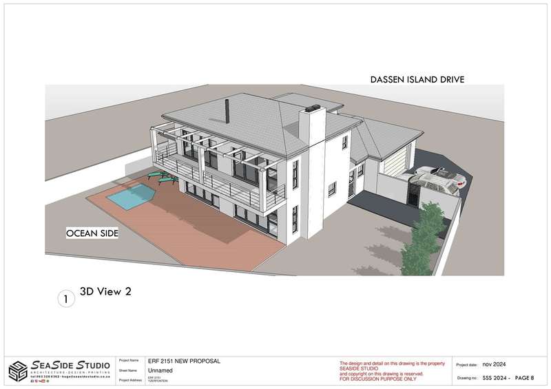 Situated within the prestigious Ocean Villas Development, this exclusive plot-and-plan opportunity offers a luxurious coastal lifestyle tailored to your vision. Spanning 338 sqm, the proposed design emphasises open-plan living with three elegantly appointed en-suite bedrooms. The master suite, complete with a private PJ lounge, is positioned on the upper level, where a sea-facing balcony invites you to take in breathtaking ocean views. Downstairs, the thoughtfully designed living spaces flow effortlessly, creating an inviting atmosphere ideal for both relaxation and entertaining. A spacious kitchen, featuring a central island and an expansive scullery, ensures both style and functionality, making everyday living a pleasure. Seamlessly blending indoor and outdoor living, this home is designed to make the most of its stunning surroundings. Large sliding doors open onto a generous veranda, where you can soak in the beauty of Yzerfontein's renowned sunsets. A sparkling pool enhances the outdoor experience, offering the perfect space to unwind or entertain guests. With the flexibility to customise the current plan to suit your unique preferences, this exceptional home presents an unrivaled opportunity to craft your dream coastal retreat within the sought-after Ocean Villas Development.