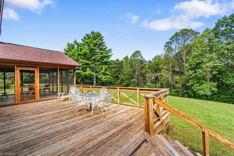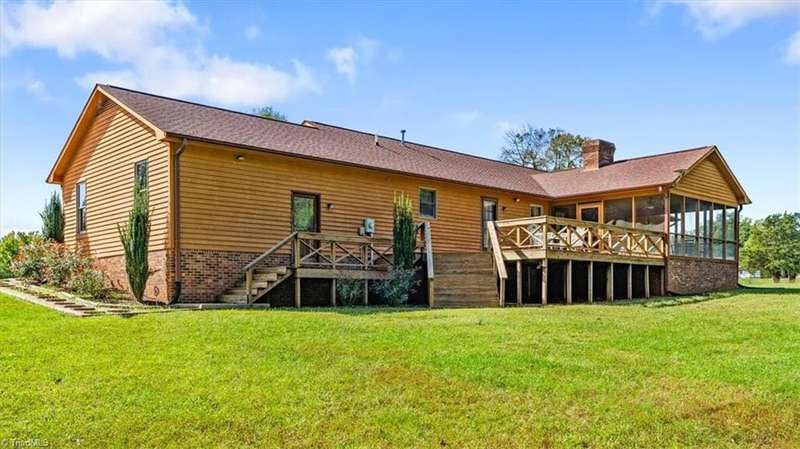 Scenic 30-acre homesite in Reidsville with over 950 feet of road frontage. This unique property offers a beautiful blend of cleared and wooded land, providing endless opportunities for outdoor enjoyment. The traditional 3-bedroom, 2-bath ranch is ready for its next chapter. Highlights include a cozy den with brick fireplace and double doors that open to a screened porch and deck overlooking the private backyard. The spacious kitchen boastsabundant cabinet space, a center island, and flows to the formal dining room. The primary suite includes deck access with a large walk-in closet and bathroom with garden tub and separate shower. Outside, youll find all of the extras needed for a property like this. A 28x40 outbuilding with concrete floor and electricity is the perfect space for a workshop and an attached covered shelter for storing equipment, plus a HUGE pole barn for all yourtoys.