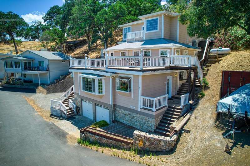 Amazing Views! Waterfront! 2 Lots! This delightful 5 bed, 3 bath, 3,300 square foot home located in Clearlake's Private Lilly Cove! This home boasts beautiful hardwood flooring throughout. A separate formal dining room provides an elegant space for entertaining. the stainless-steel appliances in the kitchen add to the space's elegant atmosphere. This home offers air conditioning to make you comfortable on the hottest days of summer. This home features a beautiful refinished deck where you can relax and unwind, after the lake enjoy the relaxing spa/hot tub. Enjoy time with family and friends by cooking spectacular meals in this home's outdoor barbecue area and enjoy the incredible views from the home's deck. Home has been used as Airbnb, summer / holidays and weekends! 2nd lot included in the purchase APN# 037-101-150-000, used as additional parking and tiered sun and relaxation area. 2nd level deck being re-done!