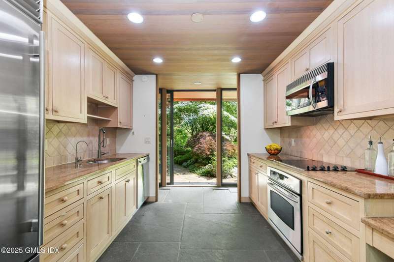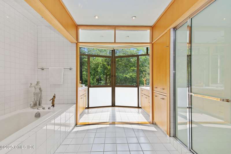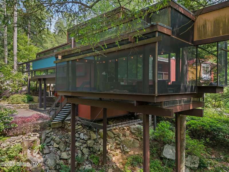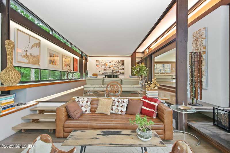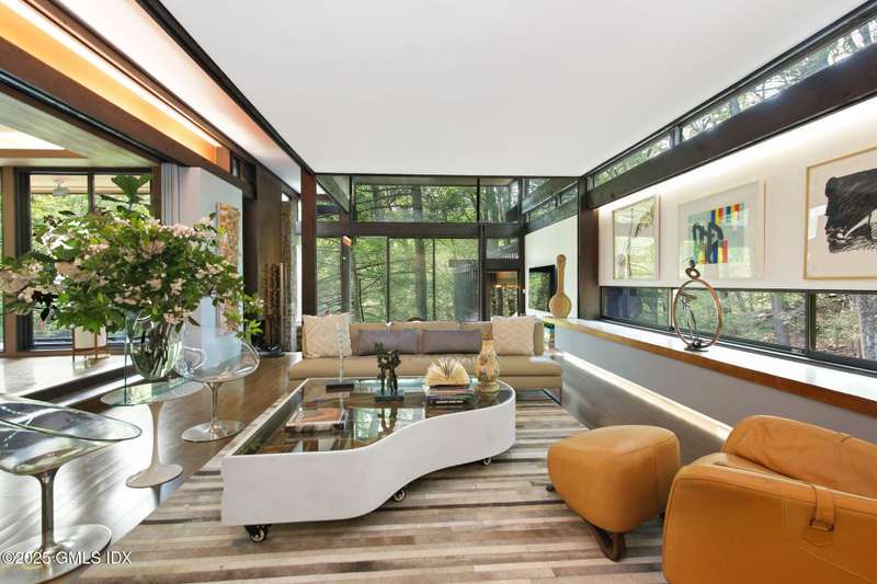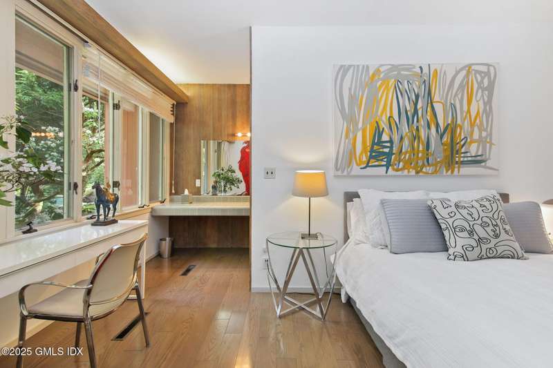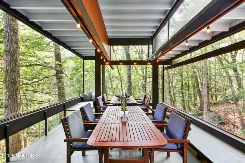 Amazing rental with pool! Serenity awaits you on coveted back-country cul-de-sac in this private, park-like setting rich with mature plantings and natural beauty. A unique, idyllic entrance leads you to the peaceful banks of the Byram River. This architecturally significant home features a dramatic expansion by mid-century modern architect Paul Rudolph. The open layout offers a stunning living room and screened porch with breathtaking views. Primary suite with large dressing room and bathroom. Two additional bedrooms with en-suite bathrooms complete the home.