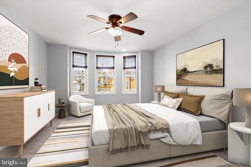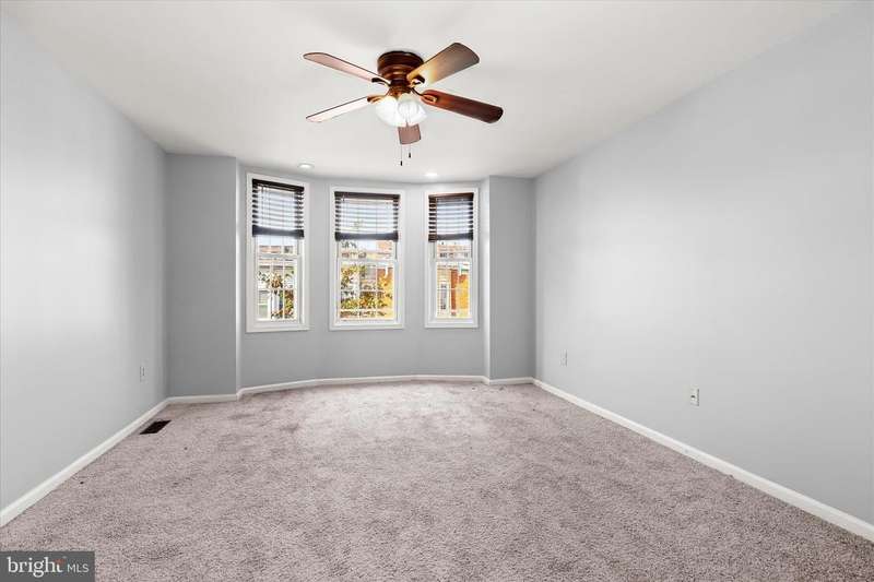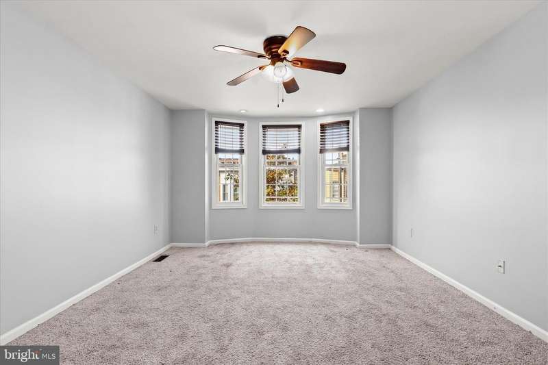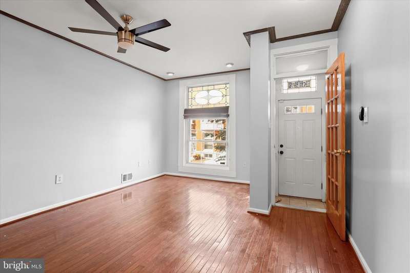 Discover the charm of this 2-bedroom, 3-bath home nestled in the heart of Greektown, a neighborhood rich in history and renewed with a modern vibe. The inviting ceramic tile vestibule leads into an open-concept living and dining area, highlighted by a beautiful stained-glass transom window, warm hardwood floors, and a soft, neutral color palette. The well-designed kitchen offers stainless steel appliances, including a gas range, recessed lighting, and a ceiling fan, with direct access to the private courtyard patio, an ideal space for outdoor dining, container gardening, or a pet-friendly retreat. Upstairs, the spacious primary suite is filled with natural light from the bow window and features two closets and an updated en suite bath with both a soaking tub and a walk-in shower. The second bedroom, a full bath with a tub-shower combination, and plush carpeting complete this level. The finished lower level expands the living area with a versatile recreation room, a space easily adaptable as a third bedroom if desired, with wood-inspired laminate flooring, a full bath, and a laundry room with a full-size washer and dryer. With its proximity to Johns Hopkins Bayview, Brewers Hill, Canton, and major routes I-895 and I-95, this home offers a wonderful blend of convenience, community, and city living. Note: Select interior photos have been virtually staged.