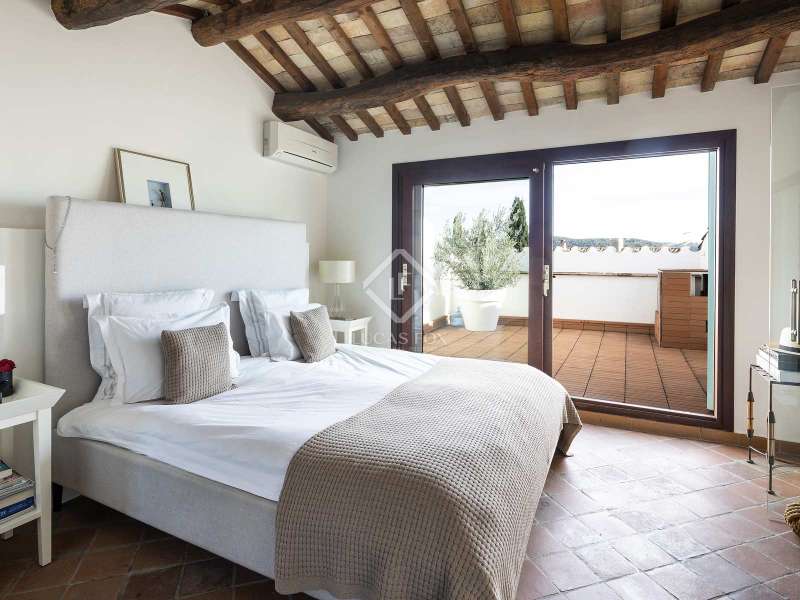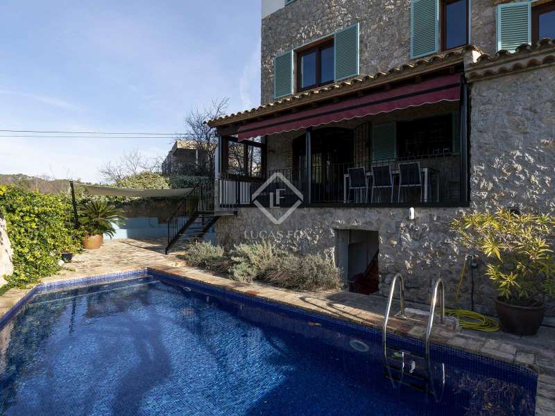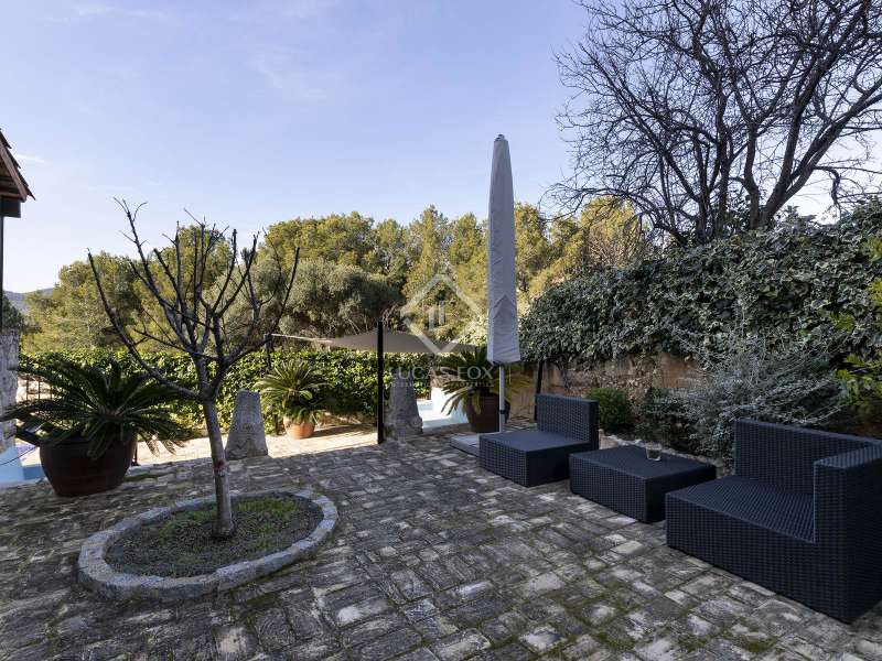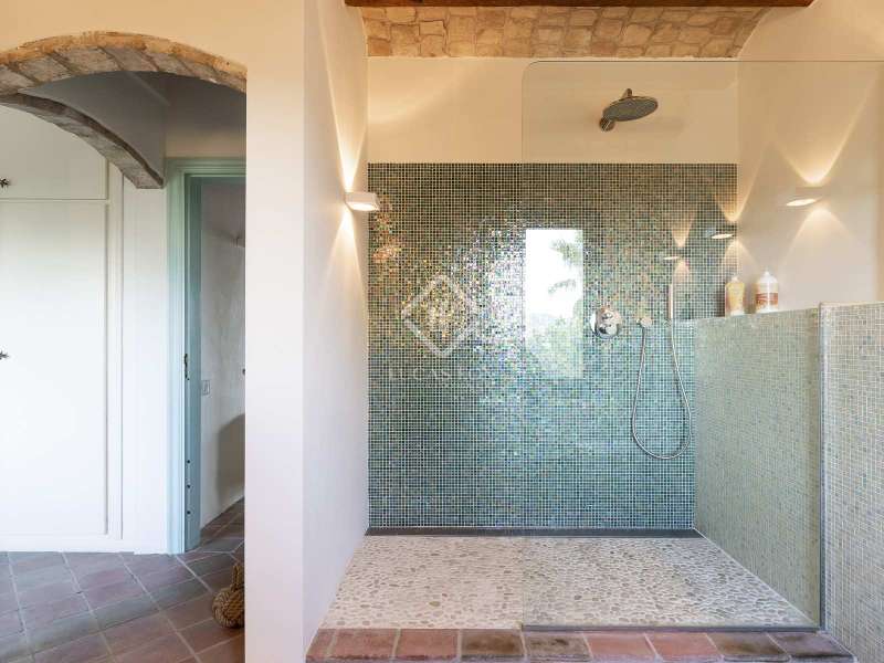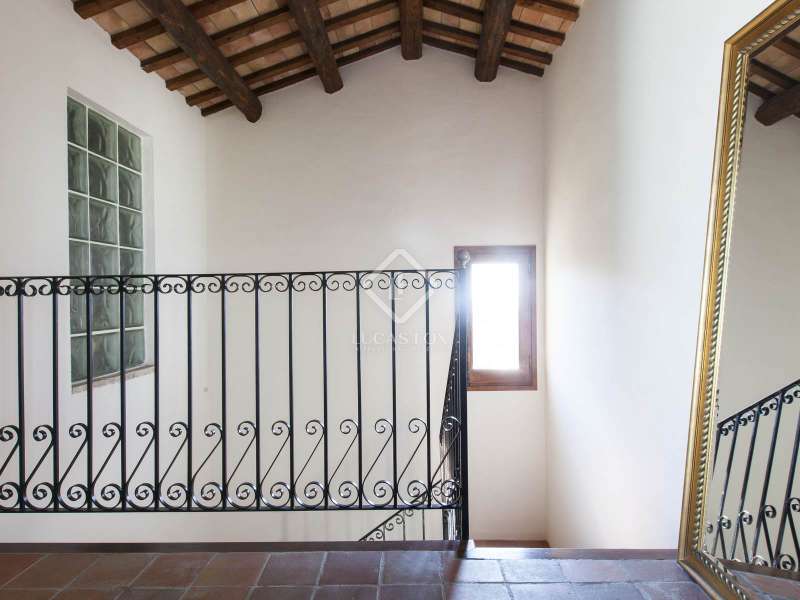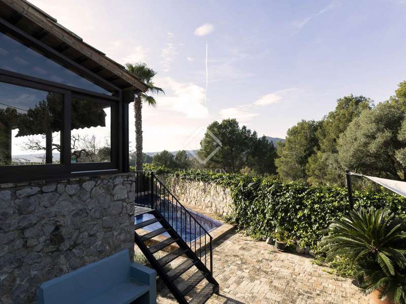 This large Catalan country style house was built in 1998 and is located in Palou Alt, just on the border of the town of Sant Pere de Ribes, a short walk to the shops and only a 5-minute drive to the centre of Sitges. The property has been recently renovated to improve its comfort and style using only the finest quality materials: a combination of terracotta clay tiles throughout the house, hard wood double glazed windows imported from Germany, under floor heating and exposed wooden beams with Catalan vaulted ceilings. South facing, the house enjoys natural light and country views. The rooms are distributed across 3 main floors plus a basement. An entrance hall on the ground floor leads to the living-dining room and the kitchen which includes designer appliances, including a stainless-steel worktop, the kitchen has access to a terrace overlooking the pool. A guest toilet completes this floor. To the left of the entrance we access the laundry room and garage. Half a floor up from the living space there is a bedroom with its own terrace (currently being used as a TV room), then a total of 3 bedrooms on the first floor: 1 double bedroom with en-suite bathroom plus 2 double bedrooms which share a bathroom, whilst the second floor is composed of the impressive master bedroom with private bathroom, walk-in wardrobe and private terrace from which the lovely sea views can be enjoyed. Heading down to the basement, here we find several practical areas including a pantry and a large wine cellar. There is also a 143m² open space, currently used as an office, which would make an ideal gym or large playroom. The house boasts attractive outdoor space; stairs lead from the kitchen/dining area to the swimming pool. There is a shaded chill-out area and side access to the garden through wrought iron gates. The property has a particularly high level of security: cameras, exterior and interior motion detectors, iron shutters, etc. for total peace of mind.