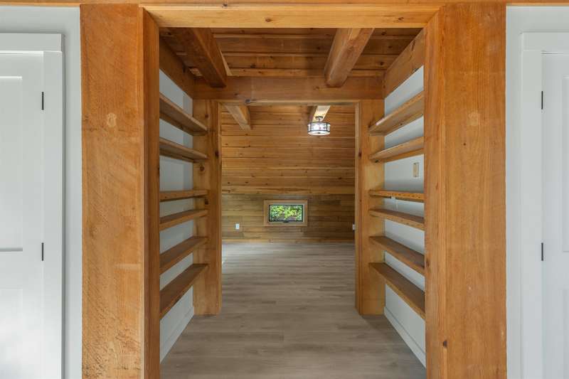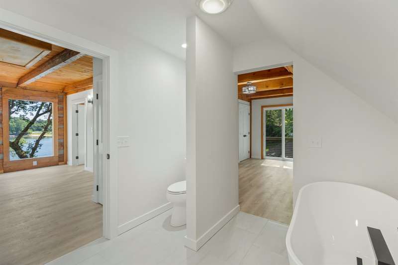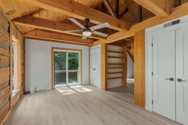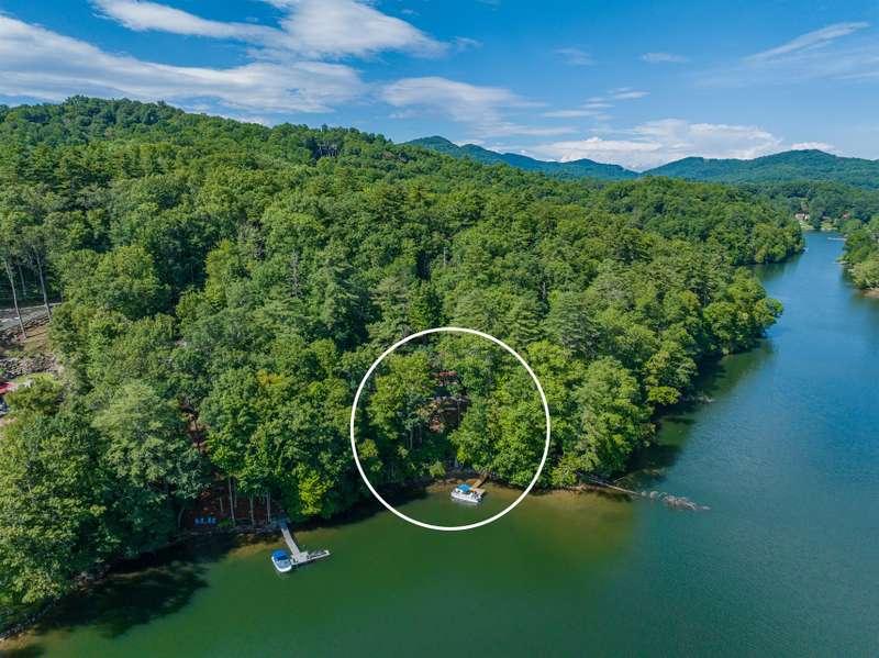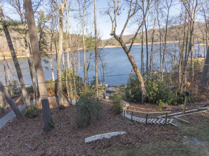 A secluded lakefront retreat nestled on the tranquil shores of Lake Glenville, this reclaimed Chestnut log cabin offers breathtaking views, unmatched serenity, and uncommon privacy. The park-like parcel has both cartpath and step access to the private dock and beach. The spacious living room is anchored by a large wood-burning stone fireplace, creating a warm and inviting atmosphere. The newly updated eat-in kitchen has custom-quality cabinetry and abundant quartz counters, ideal for cooking and entertaining. The primary bedroom is a true sanctuary, with its own private balcony overlooking the lake, a sitting room, ample closet space, and vaulted cathedral ceilings. Downstairs, you'll find a large den with fireplace, and a garage that could be transformed into more living space. The wraparound partially covered deck and a stone fire pit area are perfect for lakeside evenings/dining. Whether a residence or vacation property, this home provides the ultimate lakefront experience.
