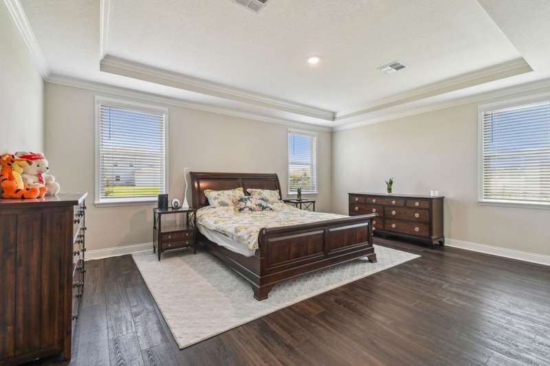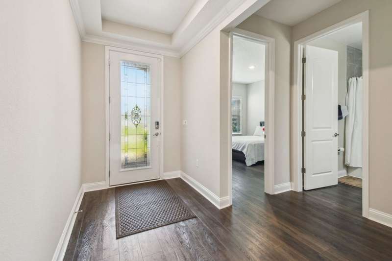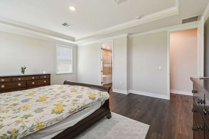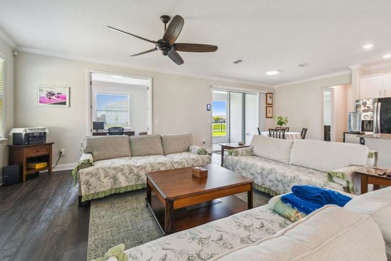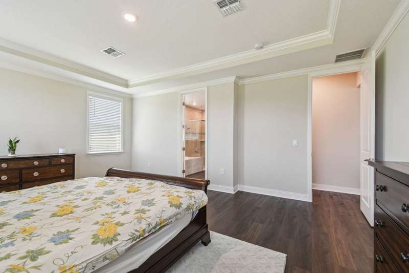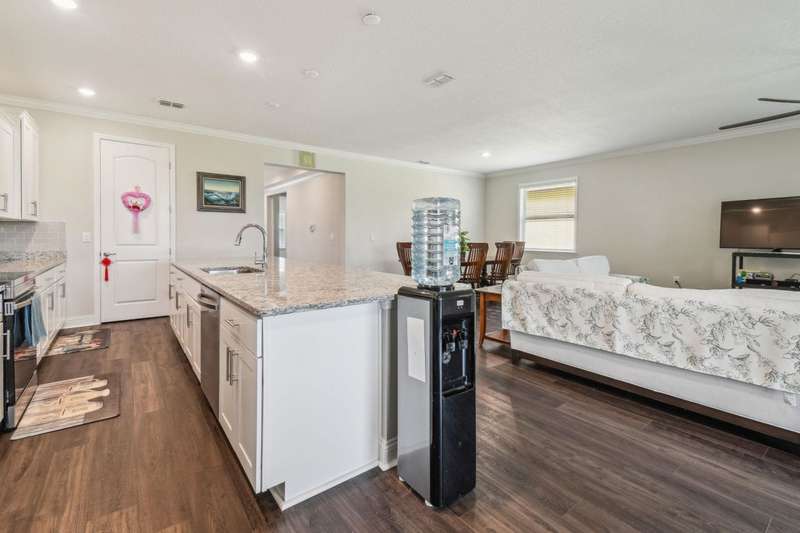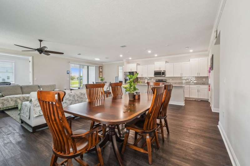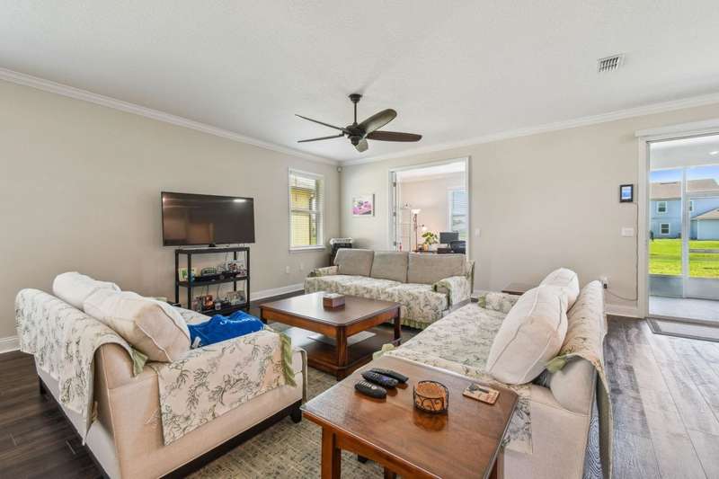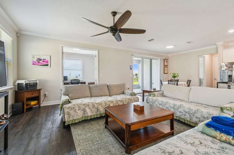 Welcome to this stunning 4-bedroom, 3 bath home with two primary suites in beautiful St Augustine, just minutes from downtown and I-95. This spacious residence features all vinyl plank flooring throughout and includes a versatile flex space perfect for a home office. The gourmet kitchen boasts a massive island, ideal for entertaining, and opens to a living space with serene water views. Enjoy your mornings and evenings on the screened lanai overlooking the water and nature. The main primary suite offers a luxurious retreat with a soaking tub, separate shower and large walk in closets. A 3-car garage includes an electric car charger for your convenience.The home is equipped with keyless entry, water filtration system, high speed fiber internet and whole house surge protector. Located in a community with low HOA that includes access to a pool and park. Dont miss this move-in ready home combining comfort, technology and a prime location.