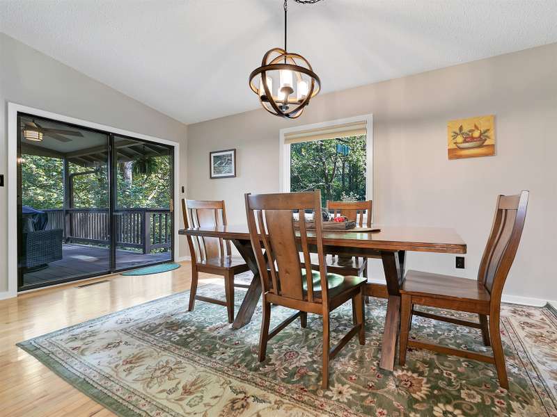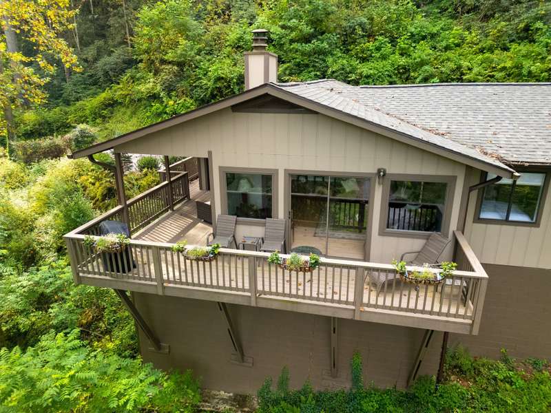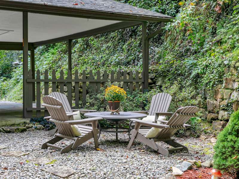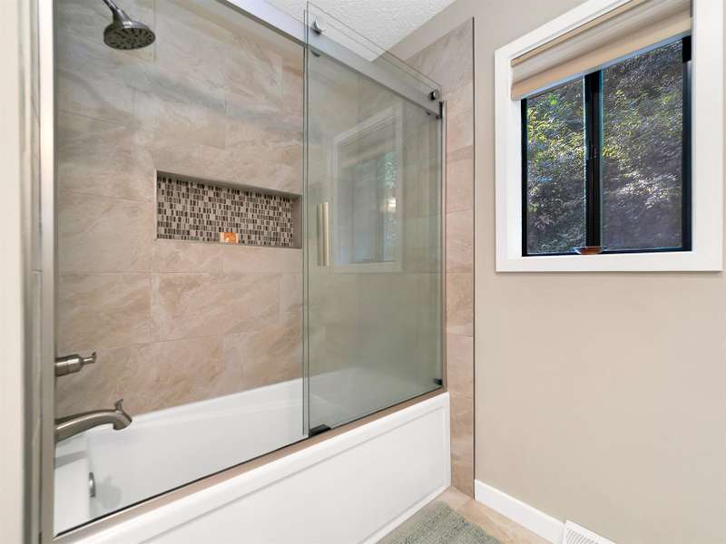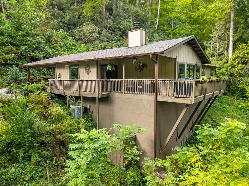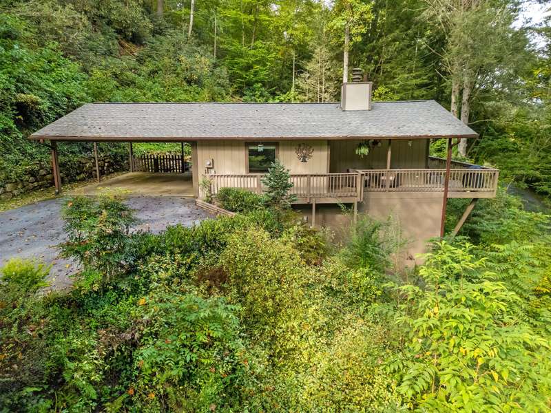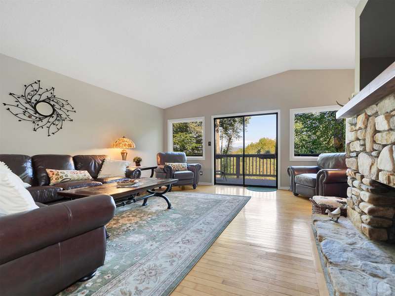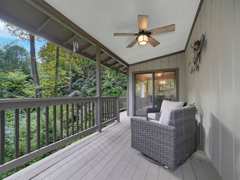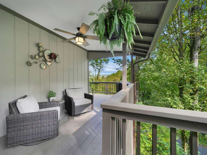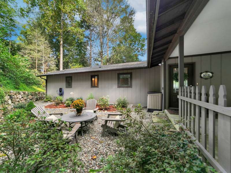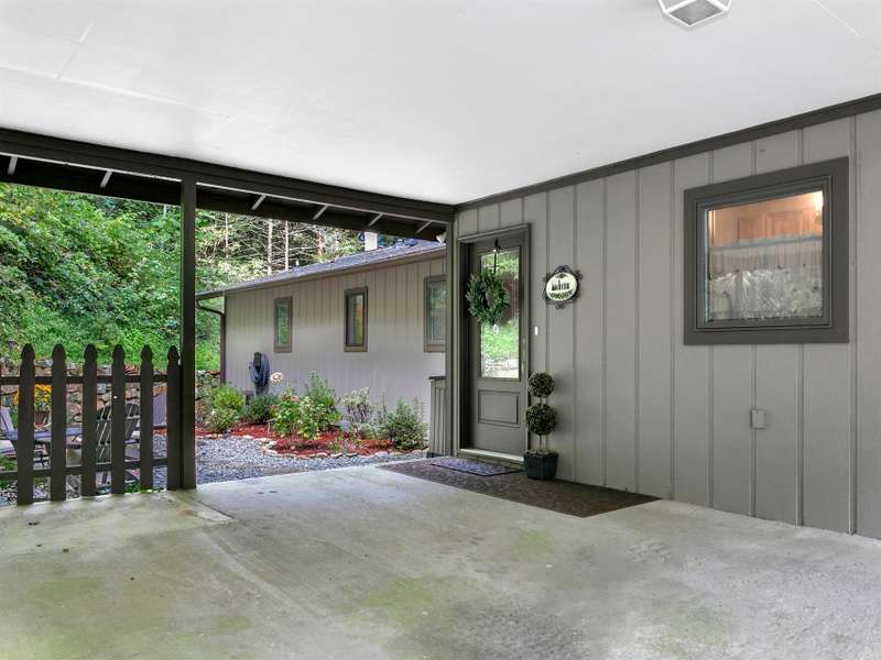 This VIEW in a beautifully renovated home close to town? You bet! Move in ready. One level living with an open floor plan. Perfect for entertaining with great flow. Expand out to covered and open deck and porch, or gather in the courtyard and enjoy the low maintenance landscaping. The kitchen features hickory cabinets and tile floor. Both full baths have been upgraded with quality finishes and fine tile work. The guest bath has a soaker tub and the primary bath features a spacious walk-in shower. One of the bedrooms has an office nook, built in, that can be hidden when guests visit. Stone fireplace with gas logs. (Could be converted back to a wood burning one if desired). Large laundry room with plenty of cabinet storage and counter tops for crafting. Courtyard could have a small fence for a dog.