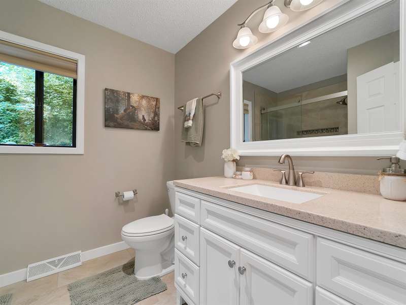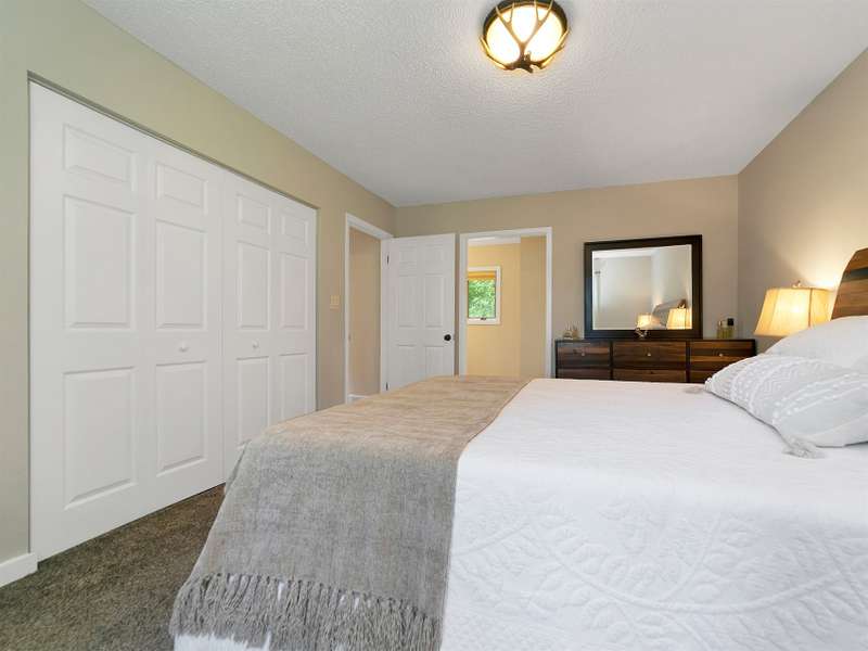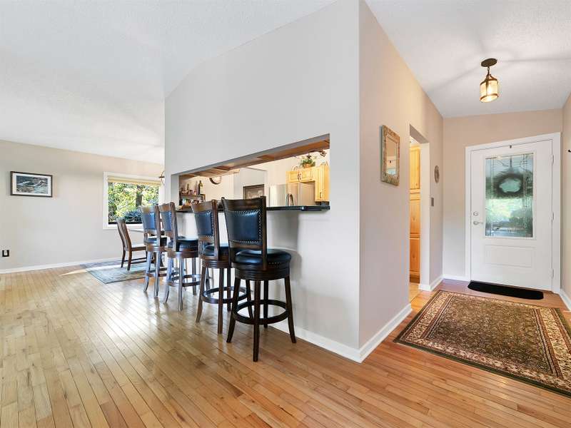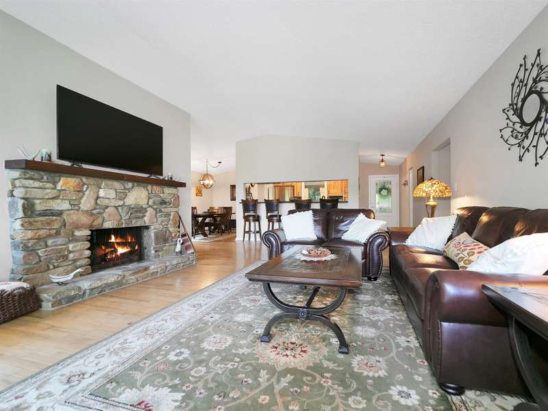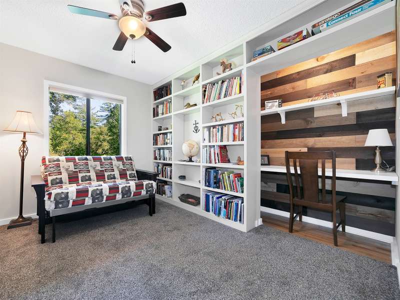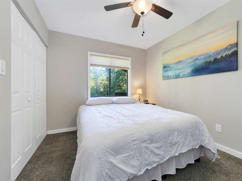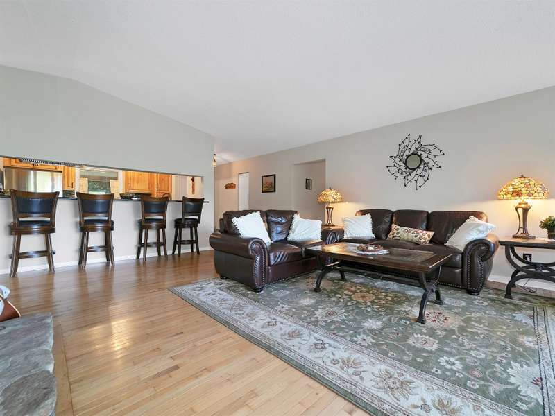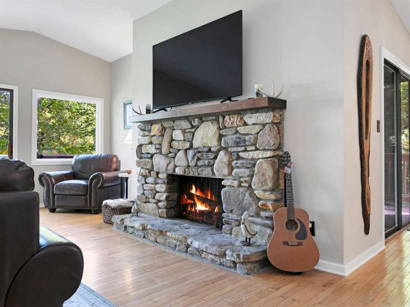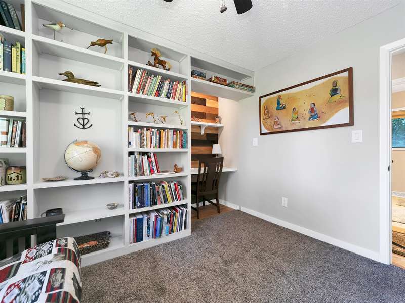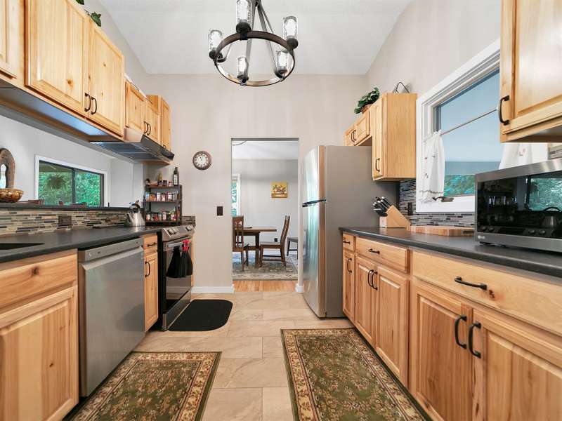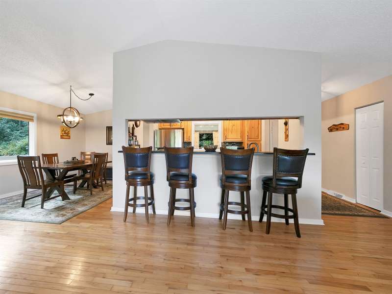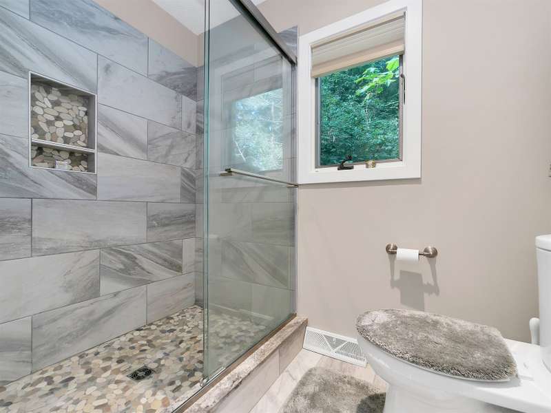 This VIEW in a beautifully renovated home close to town? You bet! Move in ready. One level living with an open floor plan. Perfect for entertaining with great flow. Expand out to covered and open deck and porch, or gather in the courtyard and enjoy the low maintenance landscaping. The kitchen features hickory cabinets and tile floor. Both full baths have been upgraded with quality finishes and fine tile work. The guest bath has a soaker tub and the primary bath features a spacious walk-in shower. One of the bedrooms has an office nook, built in, that can be hidden when guests visit. Stone fireplace with gas logs. (Could be converted back to a wood burning one if desired). Large laundry room with plenty of cabinet storage and counter tops for crafting. Courtyard could have a small fence for a dog.